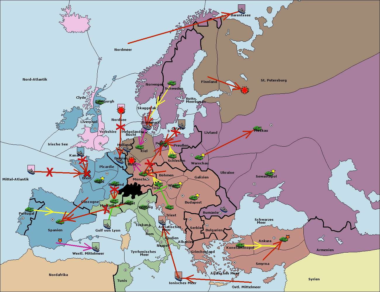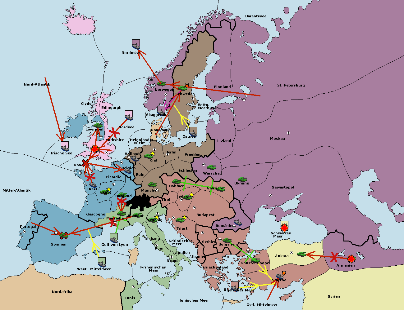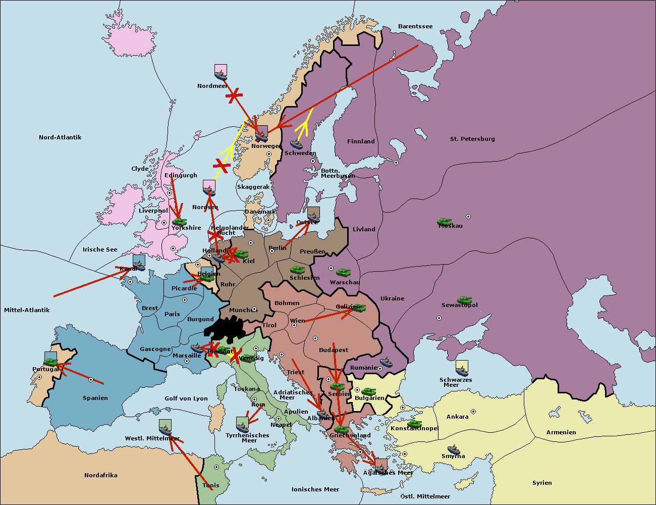 • Die Flotte in St. Petersburg (Nordküste) move nach Norwegen.