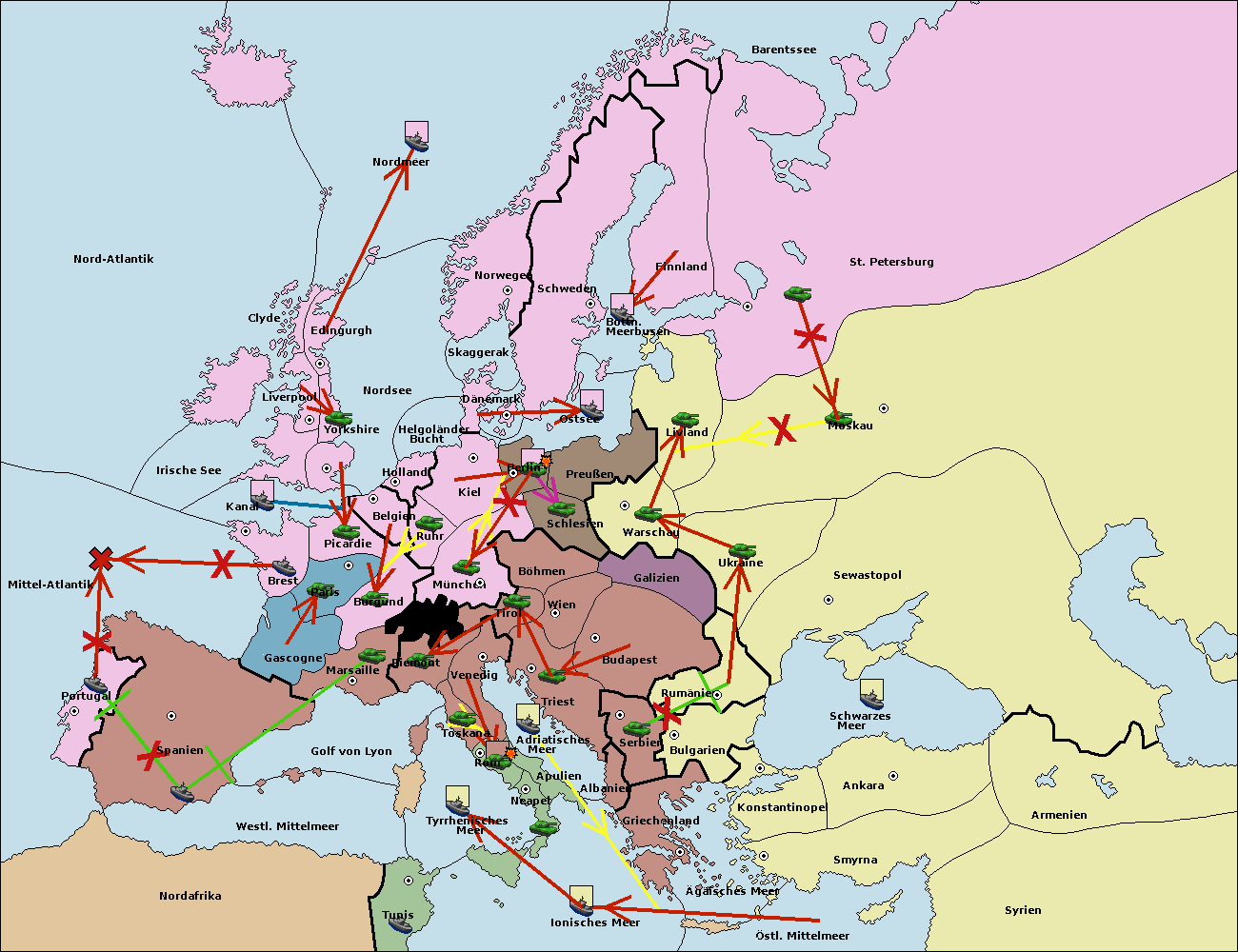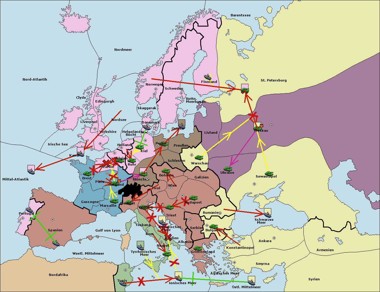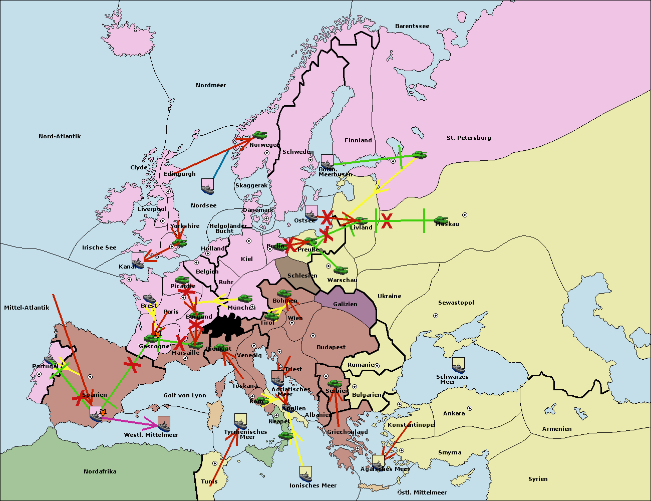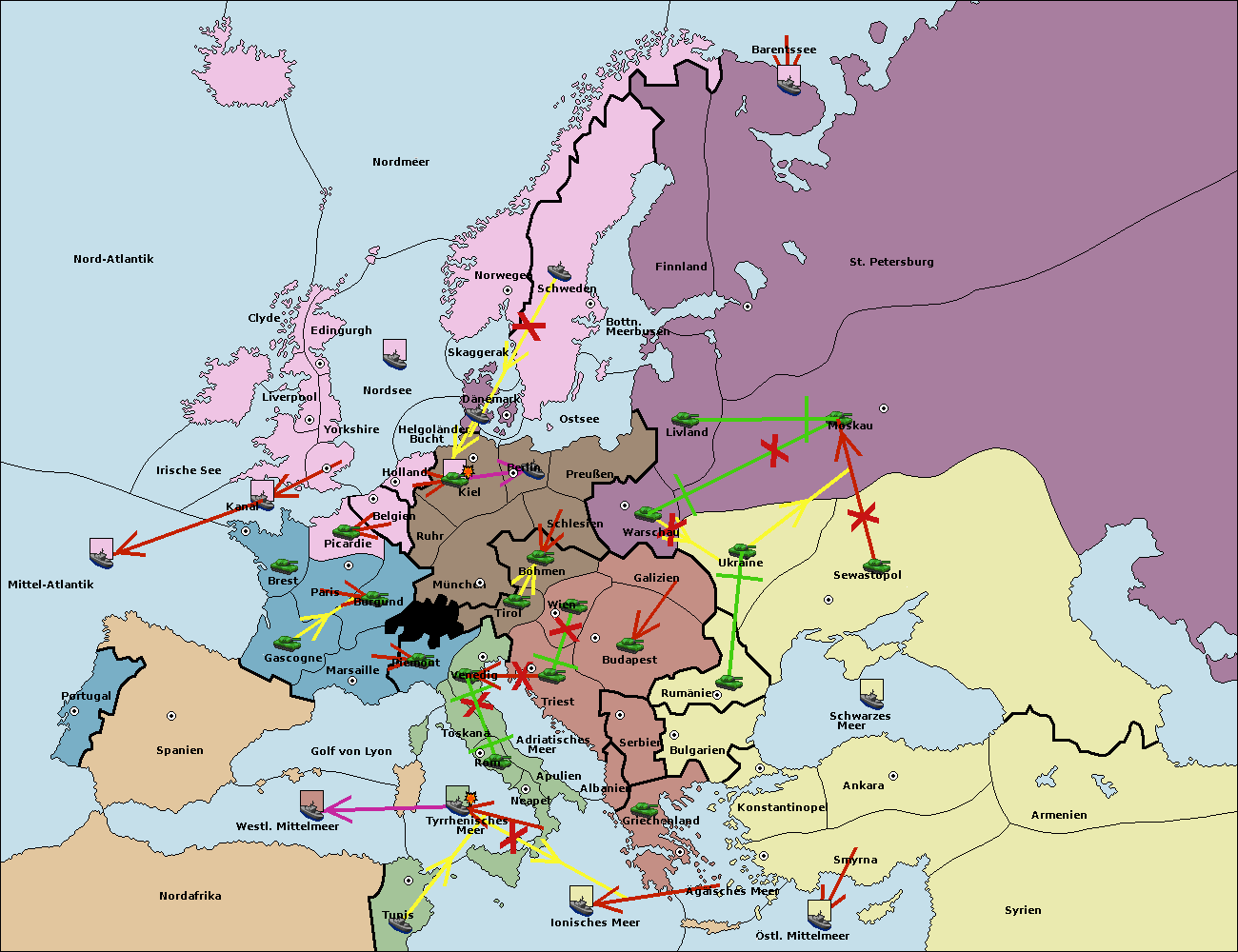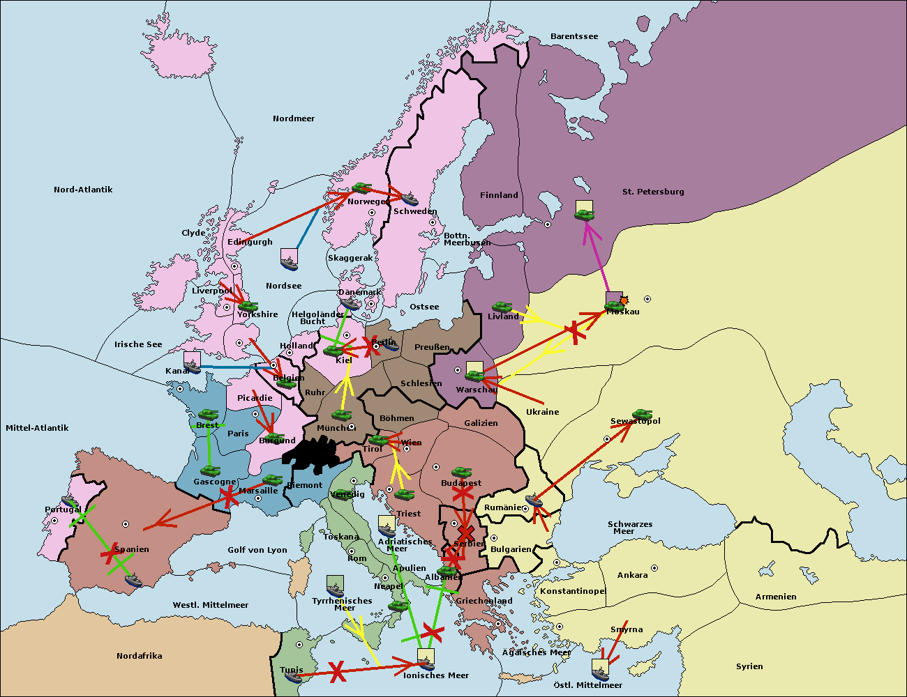 • Die Armee in Warschau support move nach Moskau von Sewastopol. (gescheitert)
