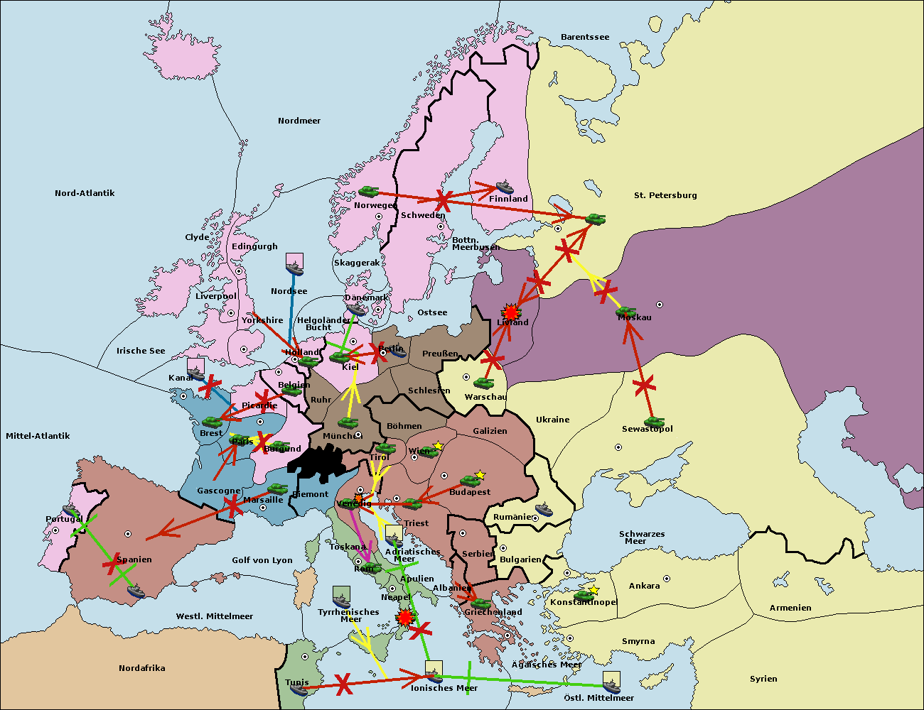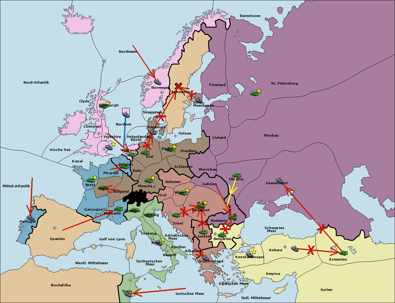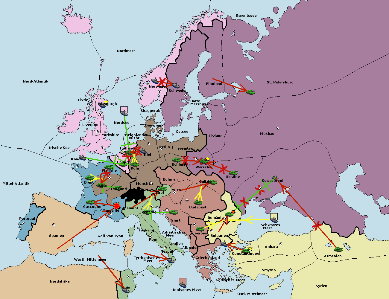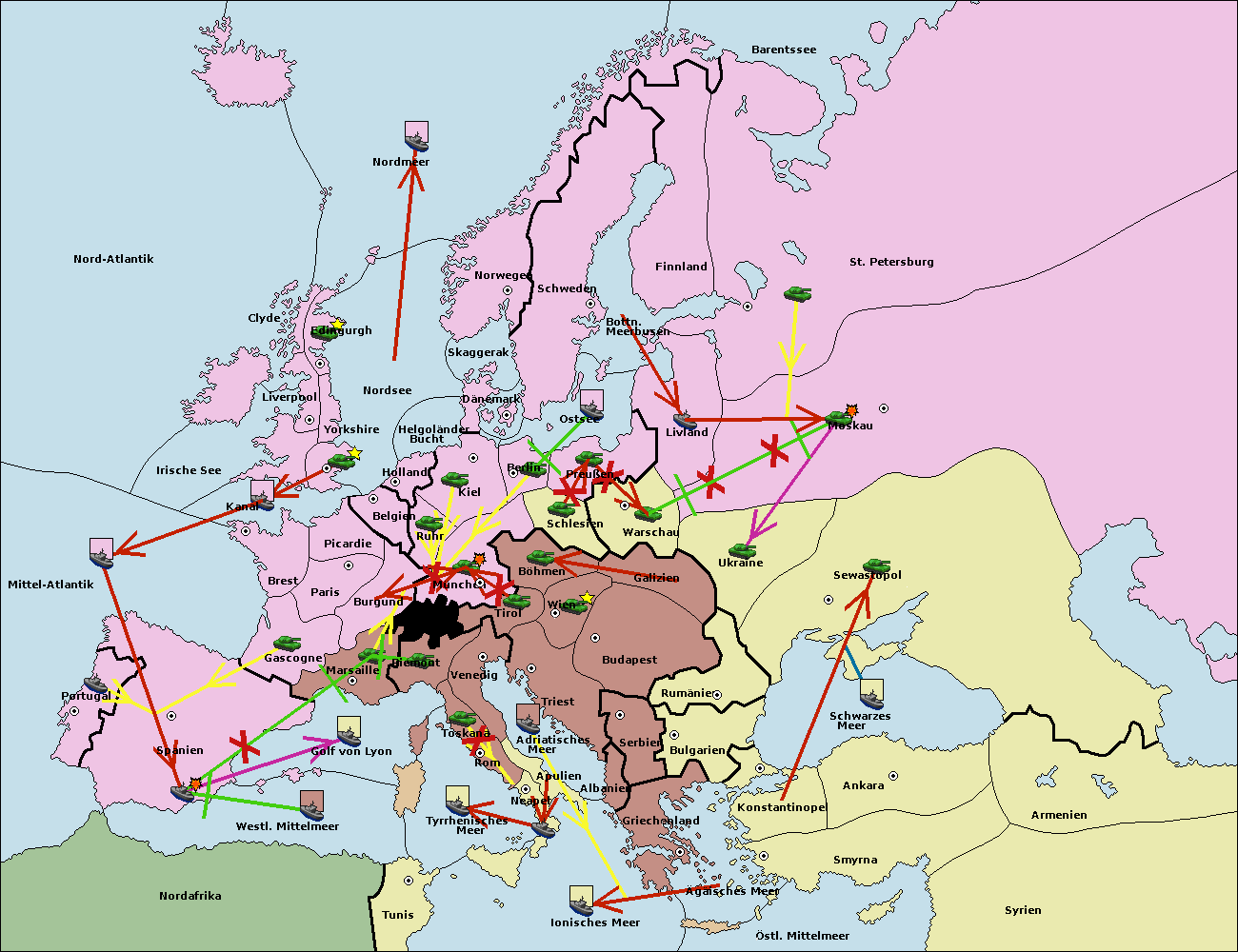 • Die Armee in Warschau support move nach Moskau von Sewastopol. (gescheitert)