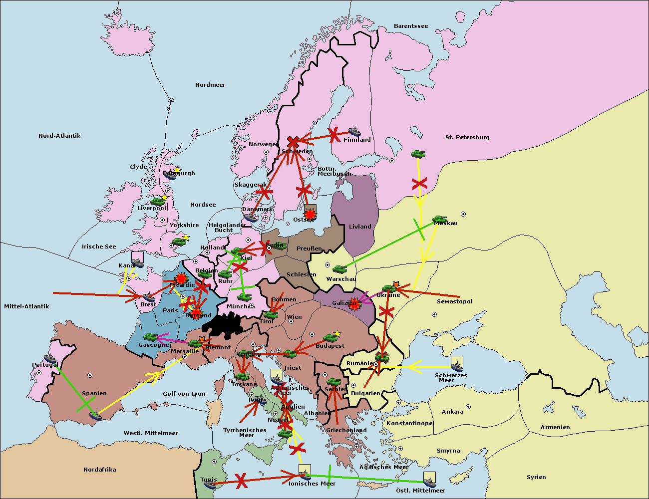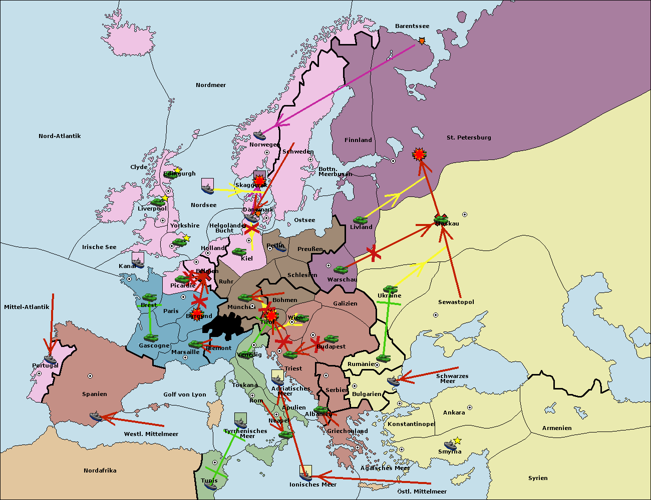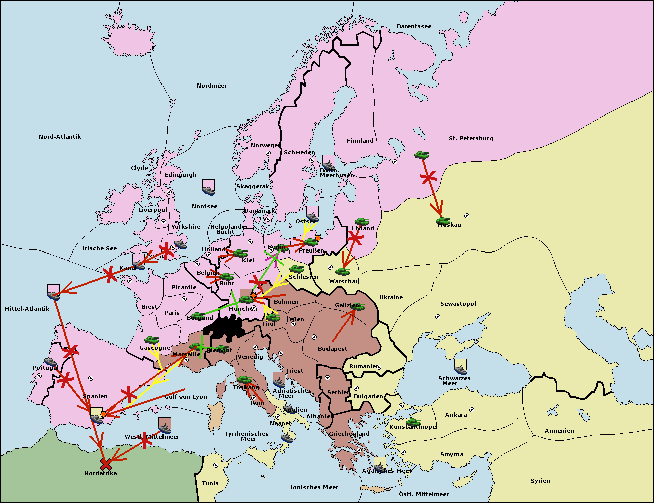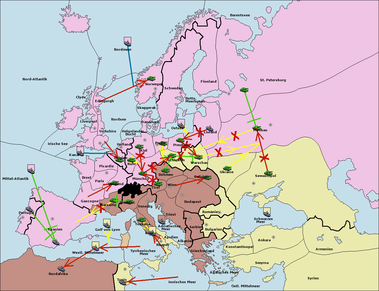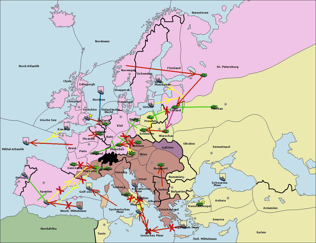• Die Armee in Warschau support move nach Moskau von Sewastopol. (gescheitert)