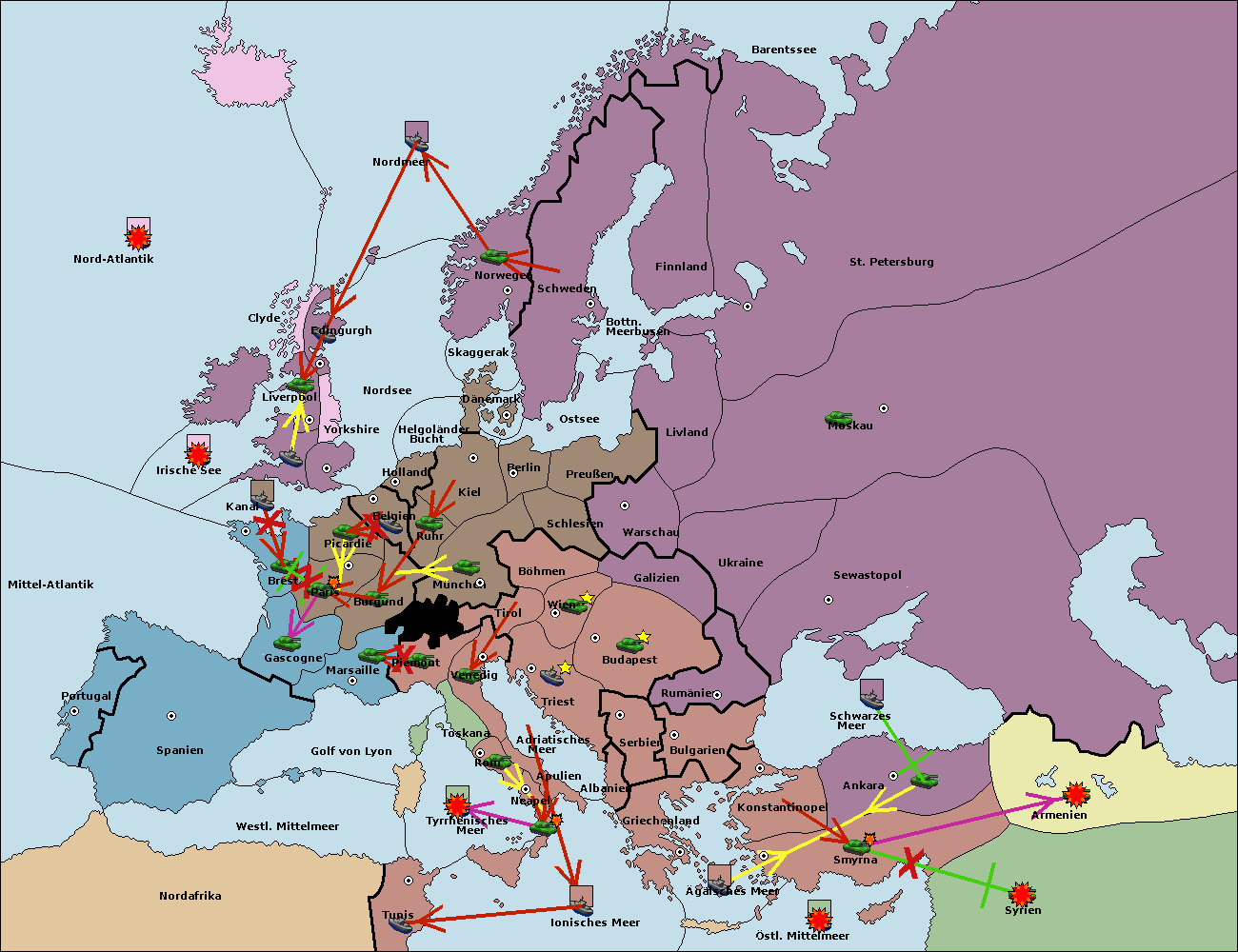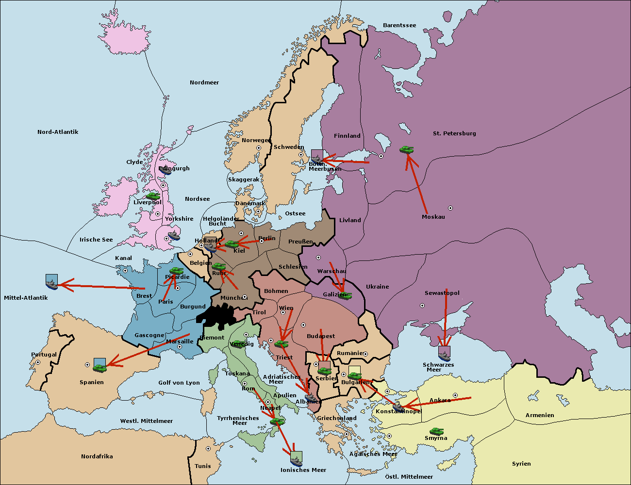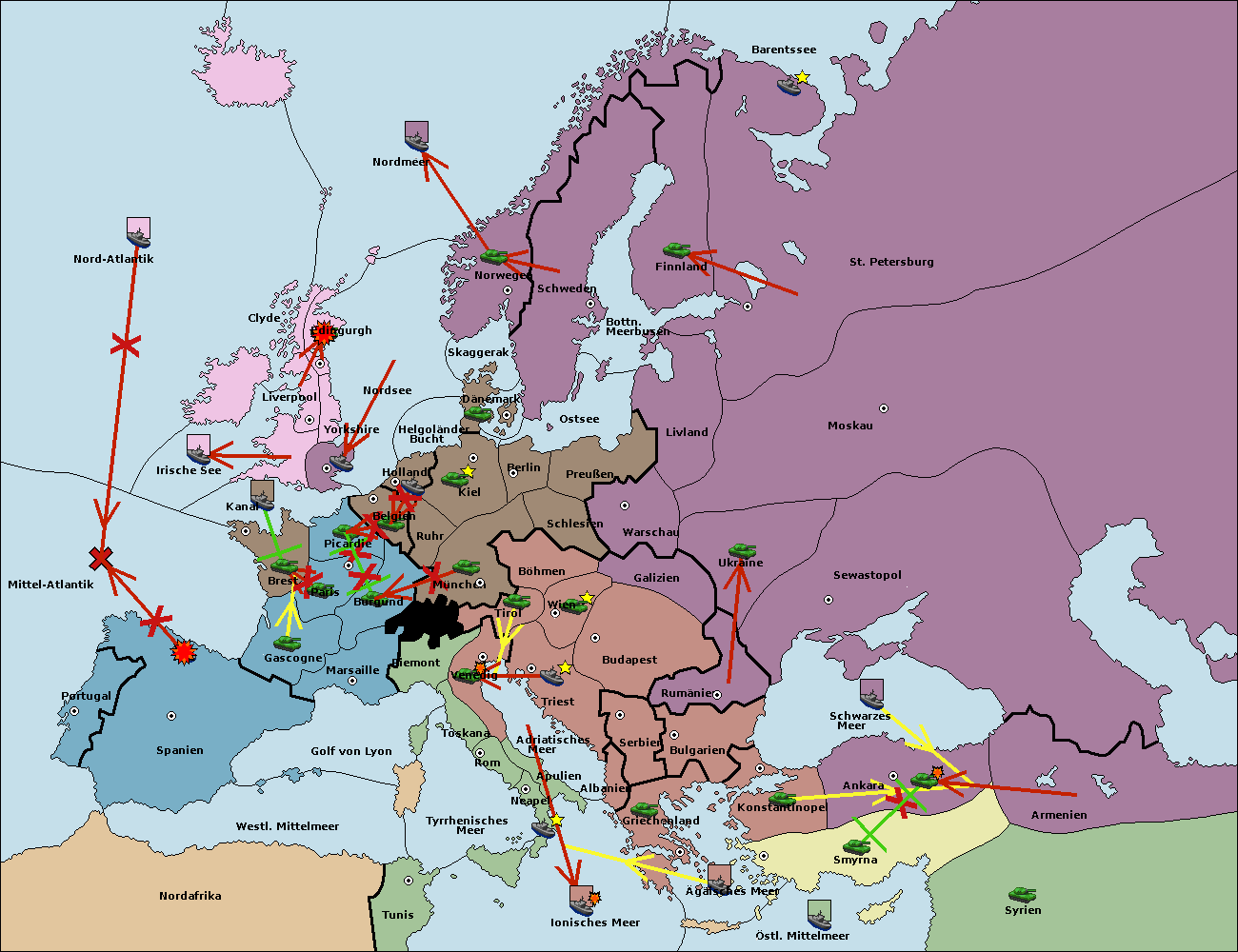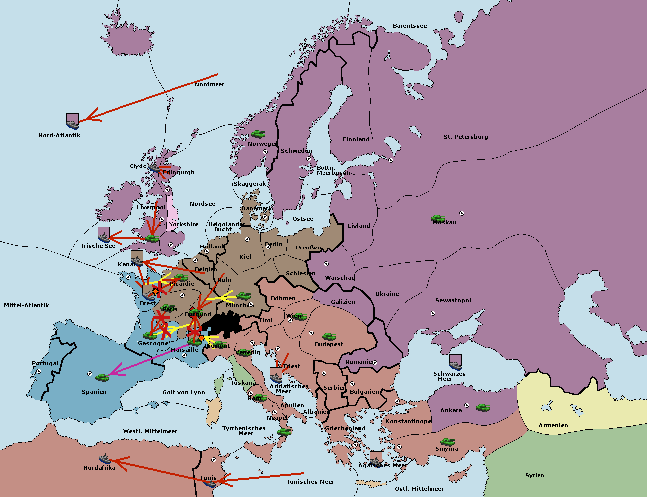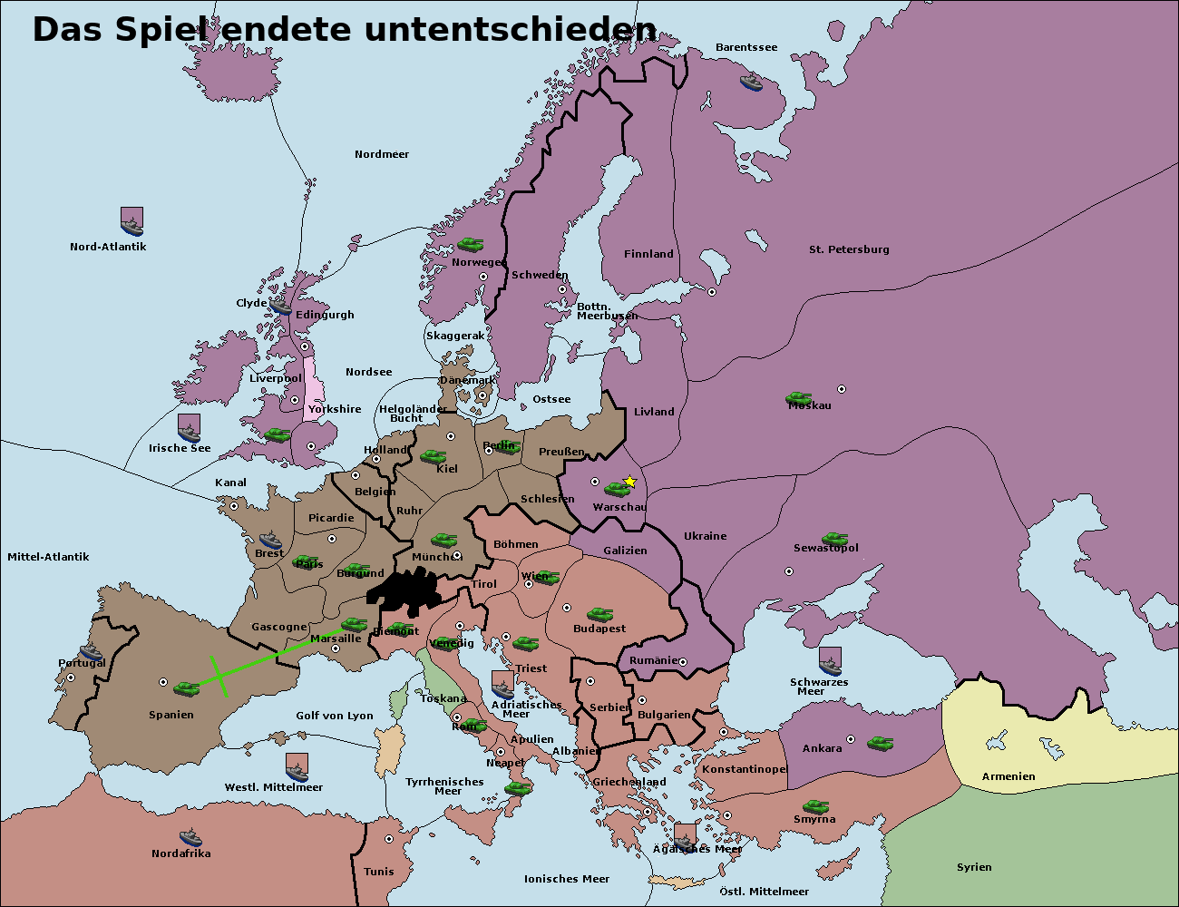 • Die Armee in Bulgarien wird zerstörtFlotte in Bulgarien gebaut.