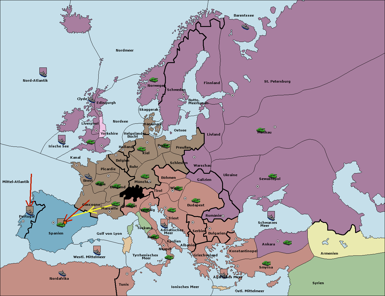 • Die Armee in Marseille support hold nach Spanien.