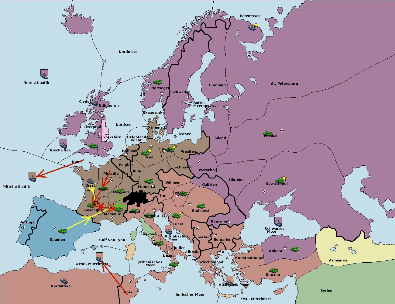 • Die Flotte in Brest support move nach Gascogne von Paris.