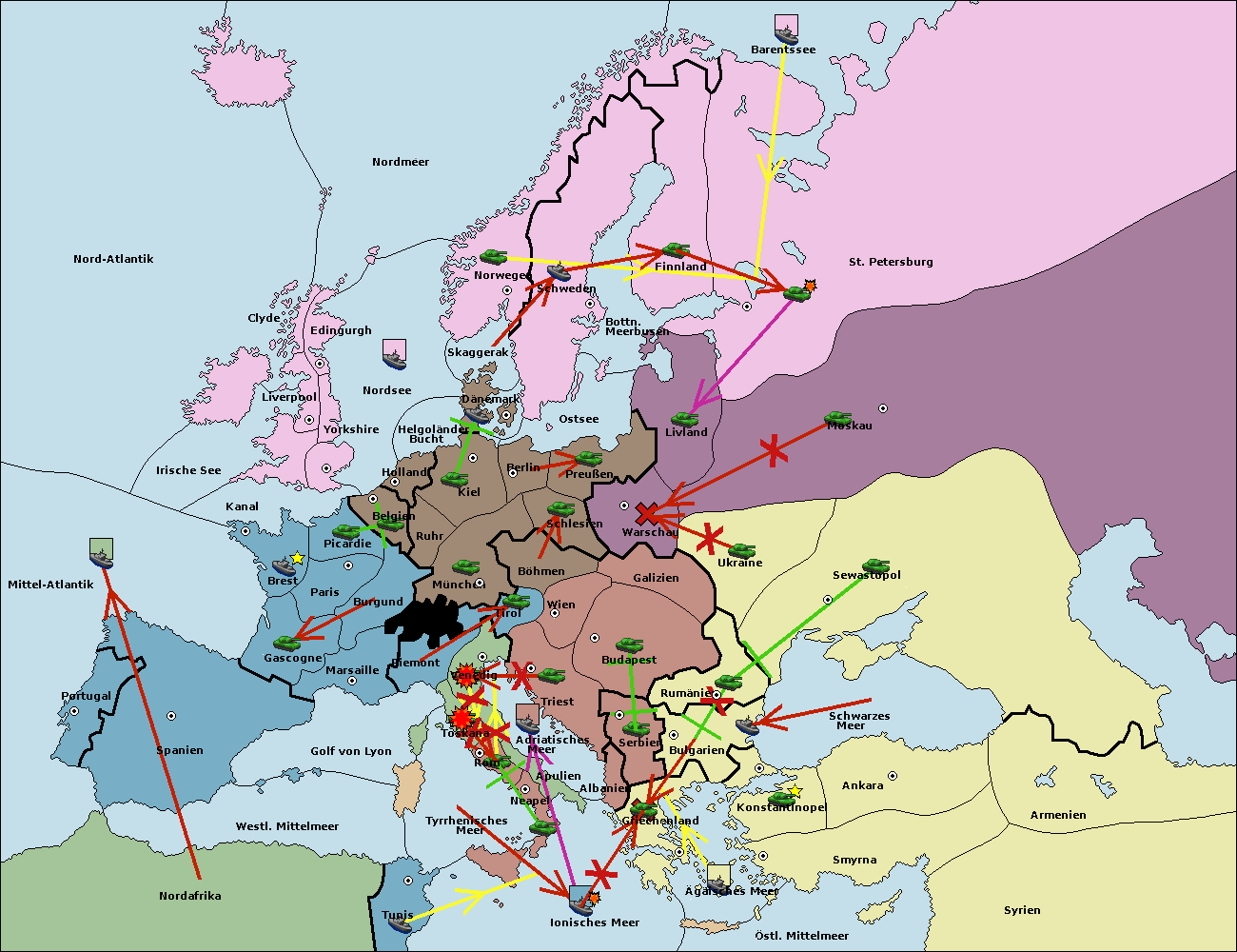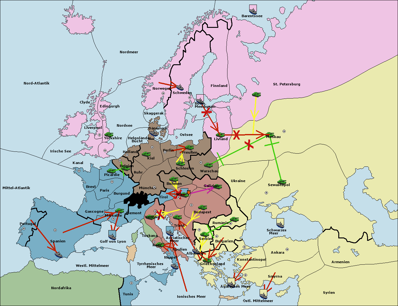 • Die Armee in Moskau support move nach Warschau von Livland.