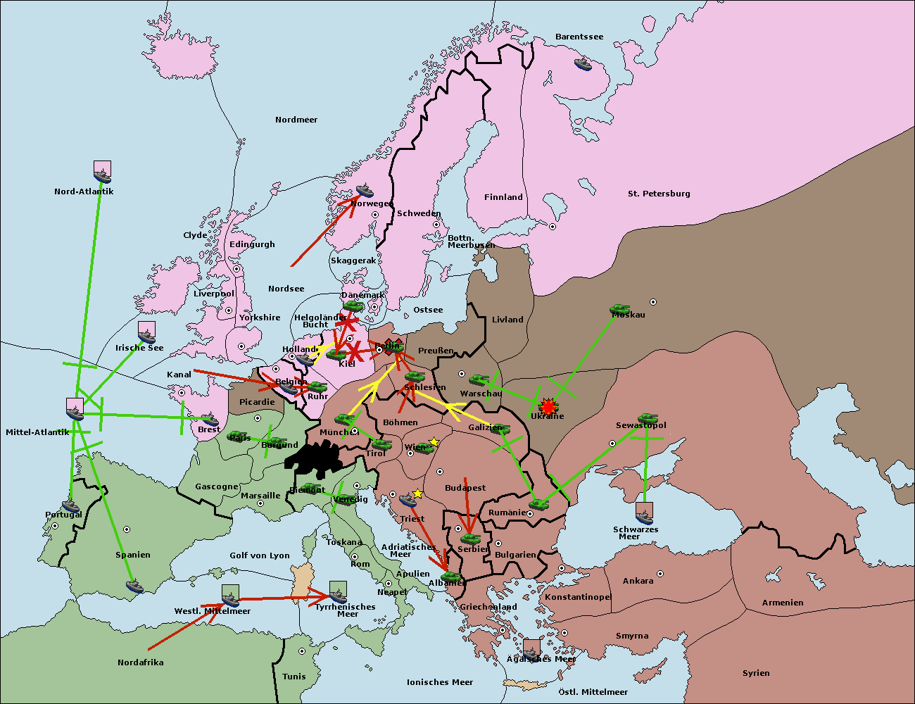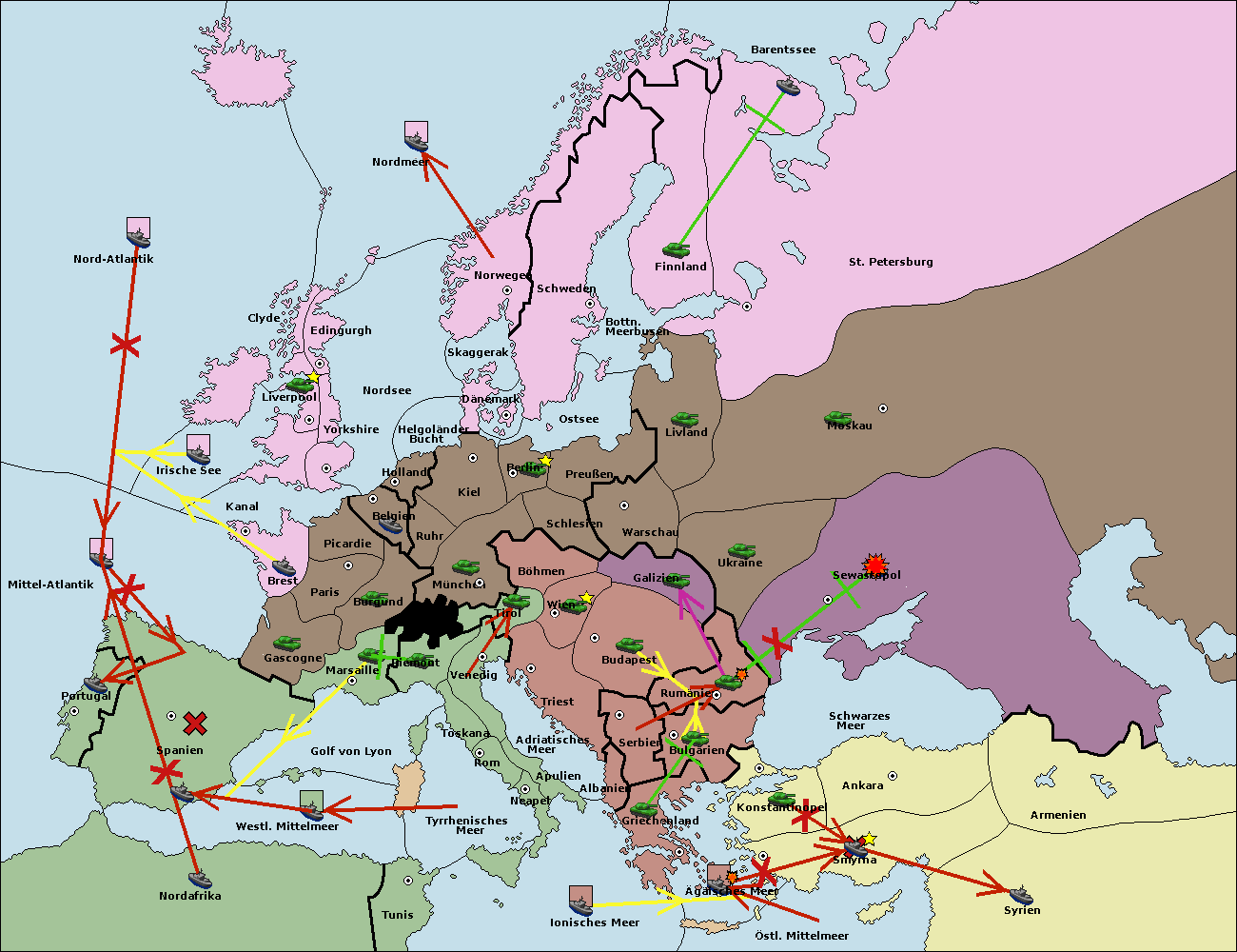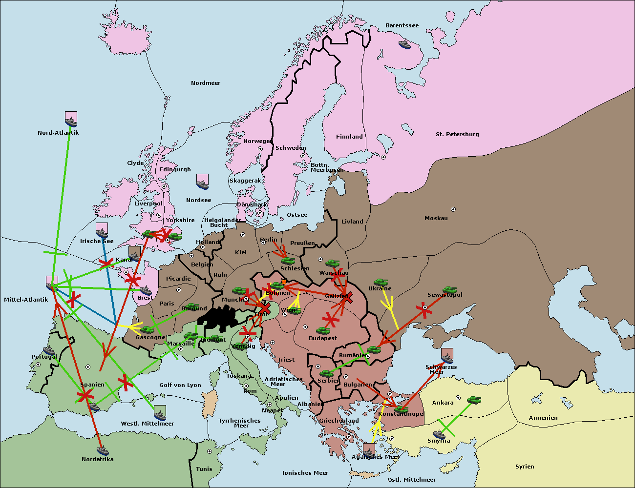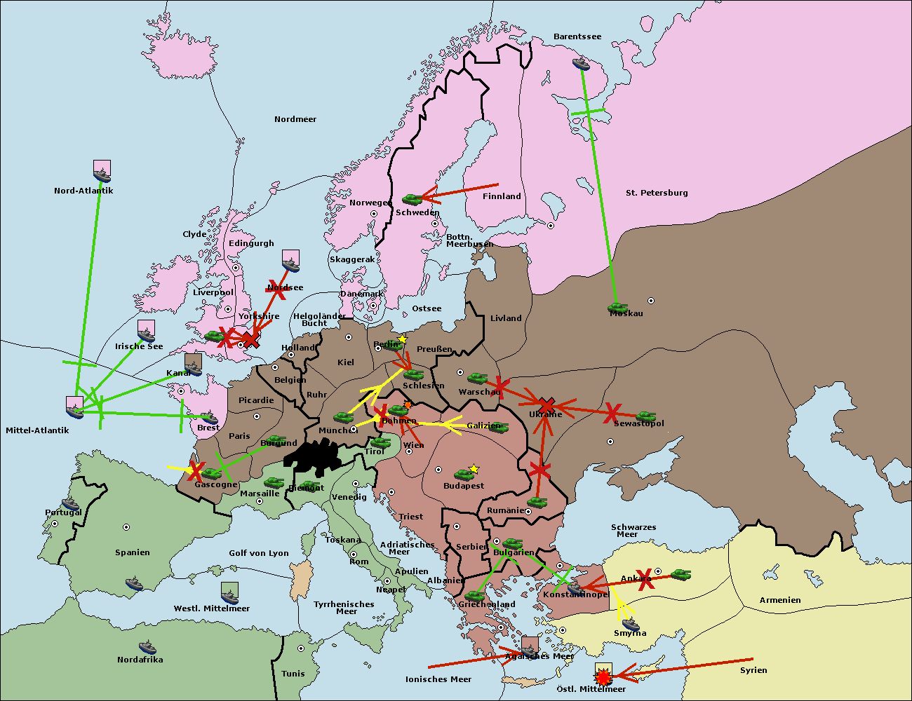 • Die Armee in Bulgarien wird zerstörtFlotte in Bulgarien gebaut.