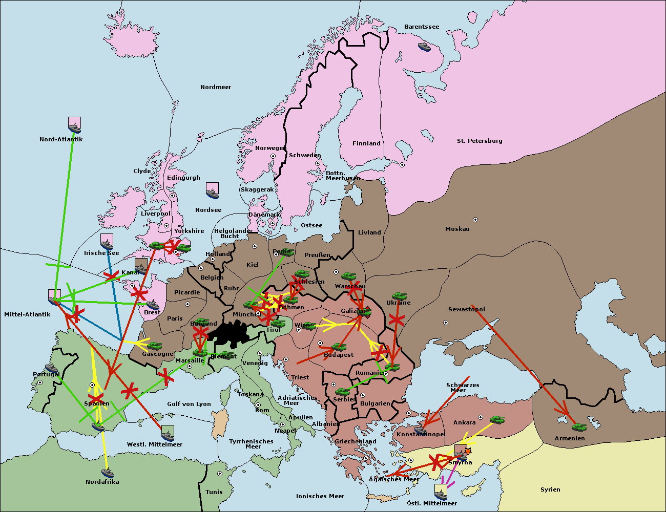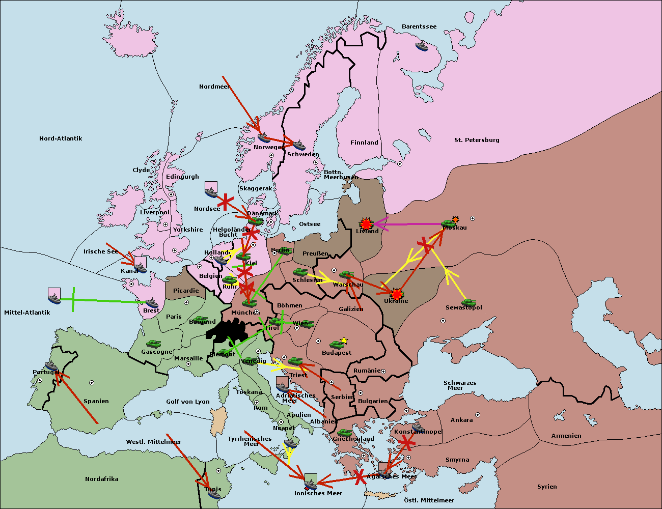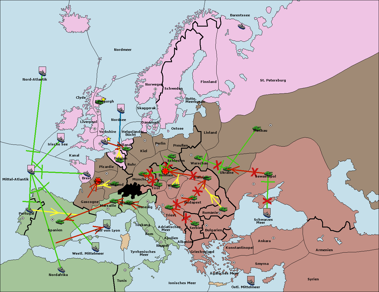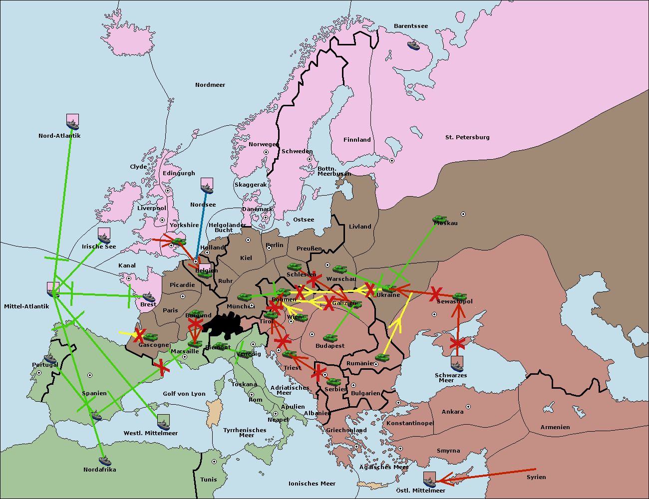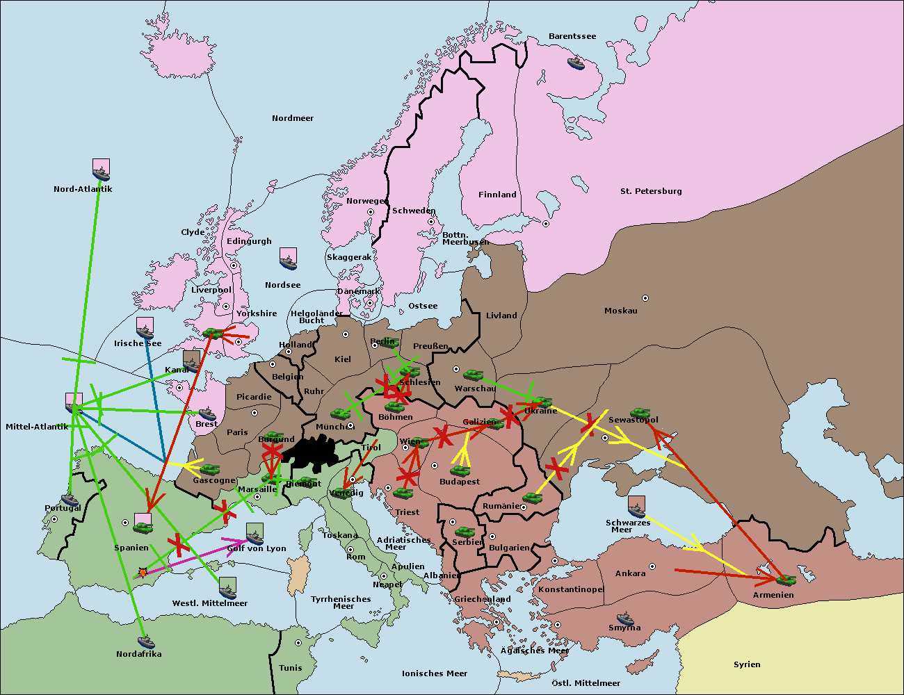 • Die Armee in Bulgarien wird zerstörtFlotte in Bulgarien gebaut.