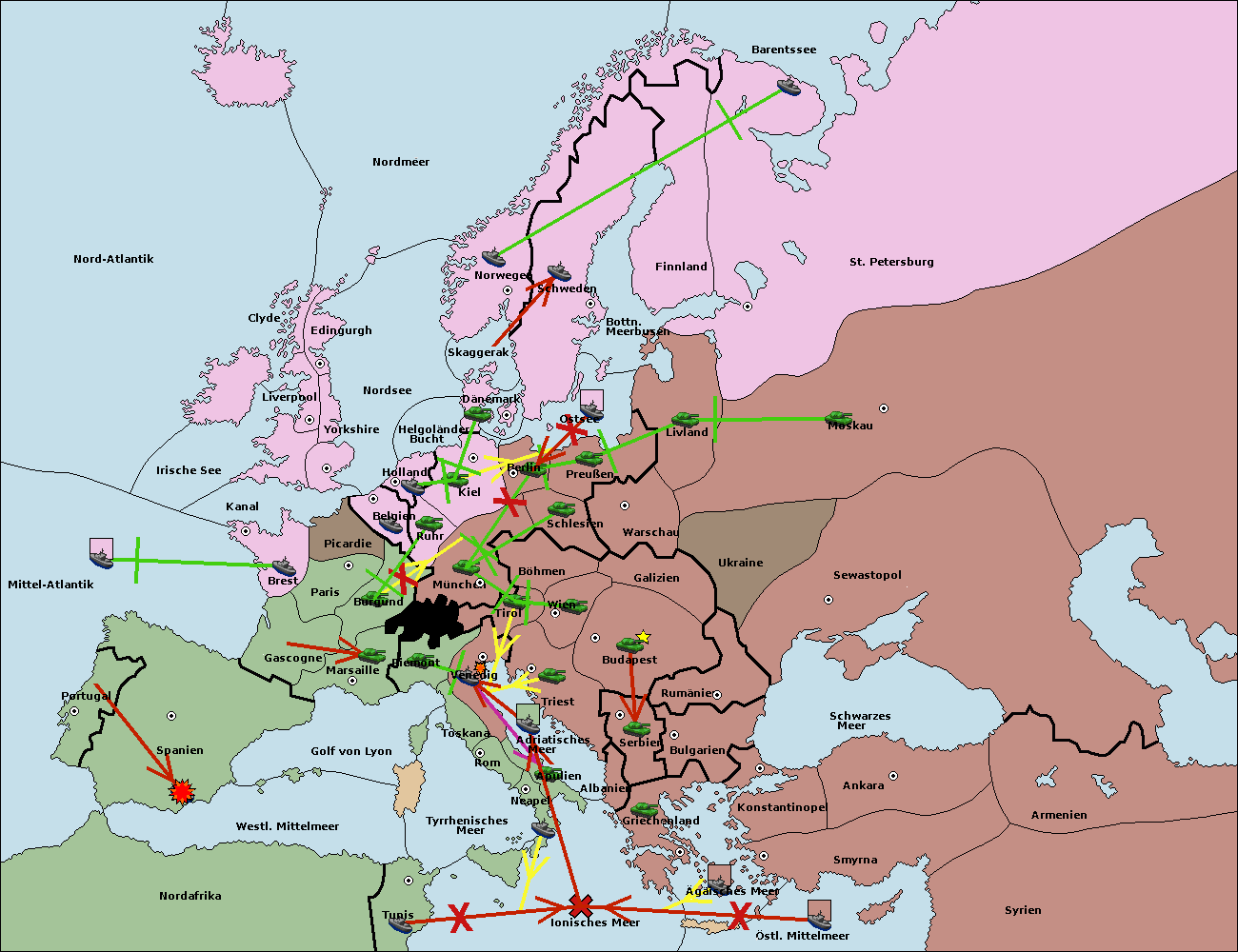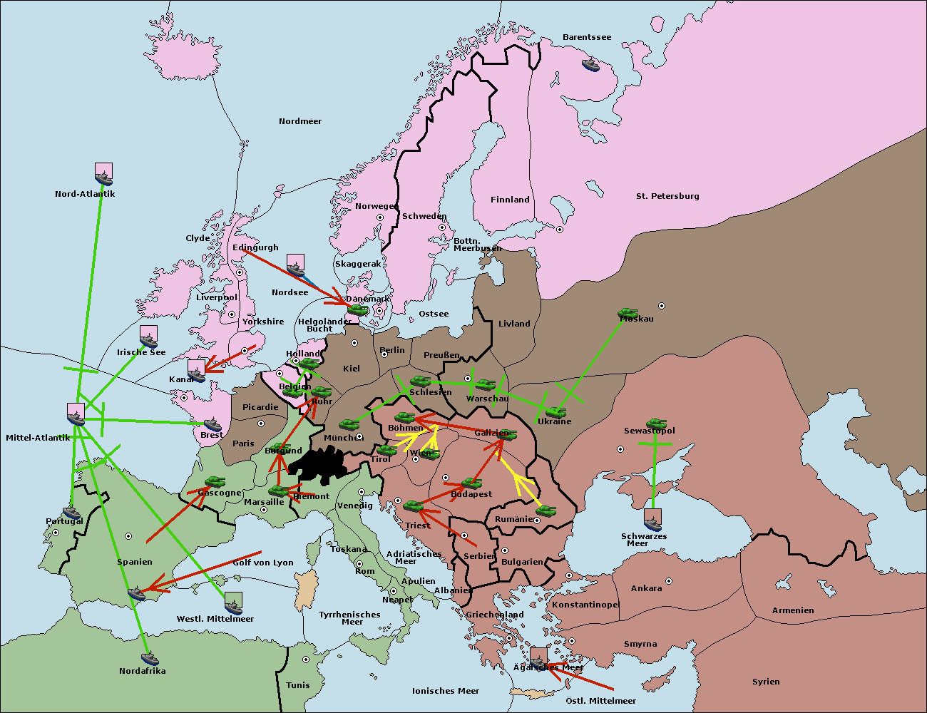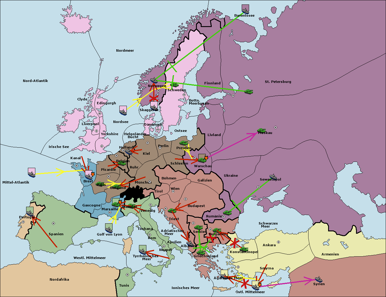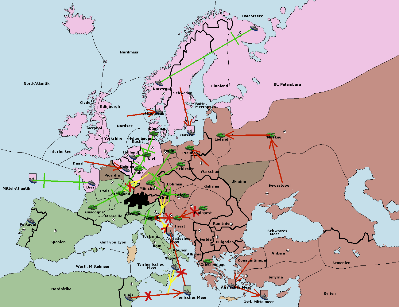 • Die Armee in Bulgarien wird zerstörtFlotte in Bulgarien gebaut.