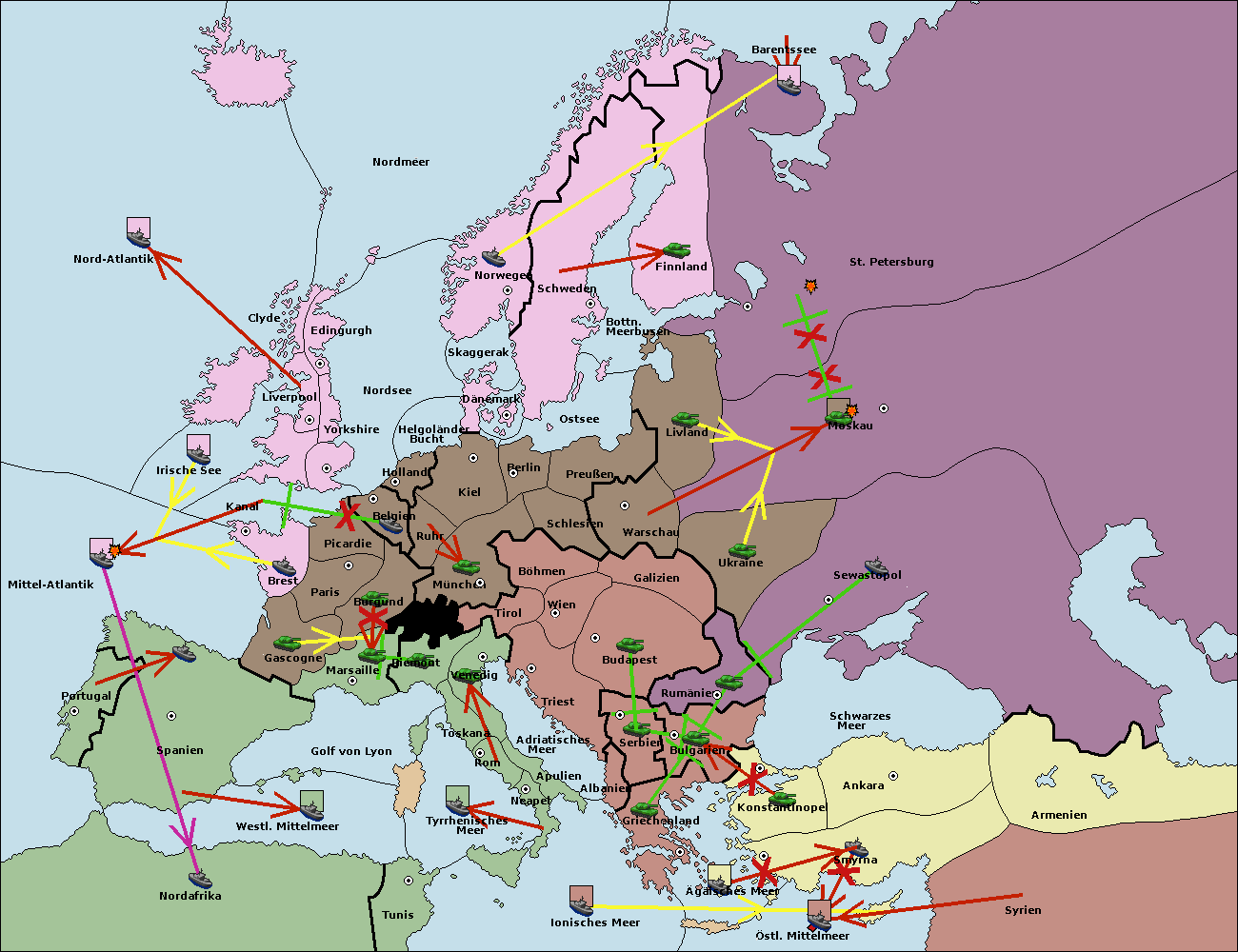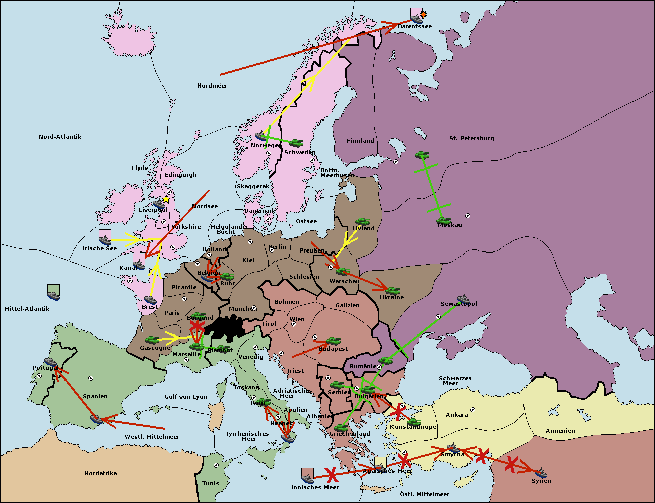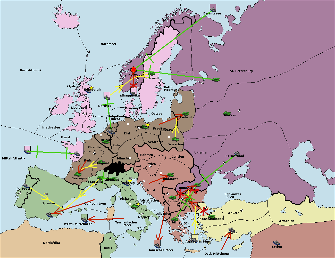 • Die Flotte in St. Petersburg (Nordküste) move nach Barentssee.