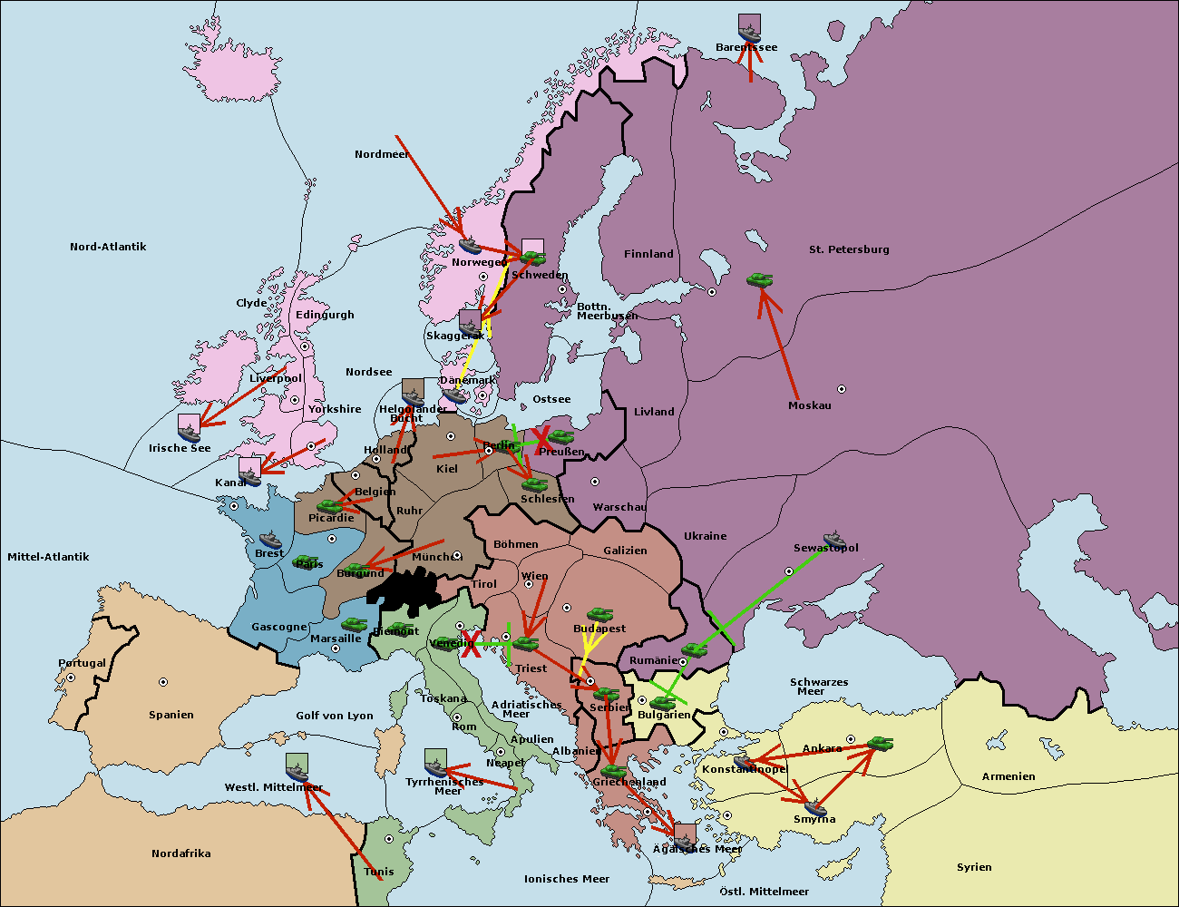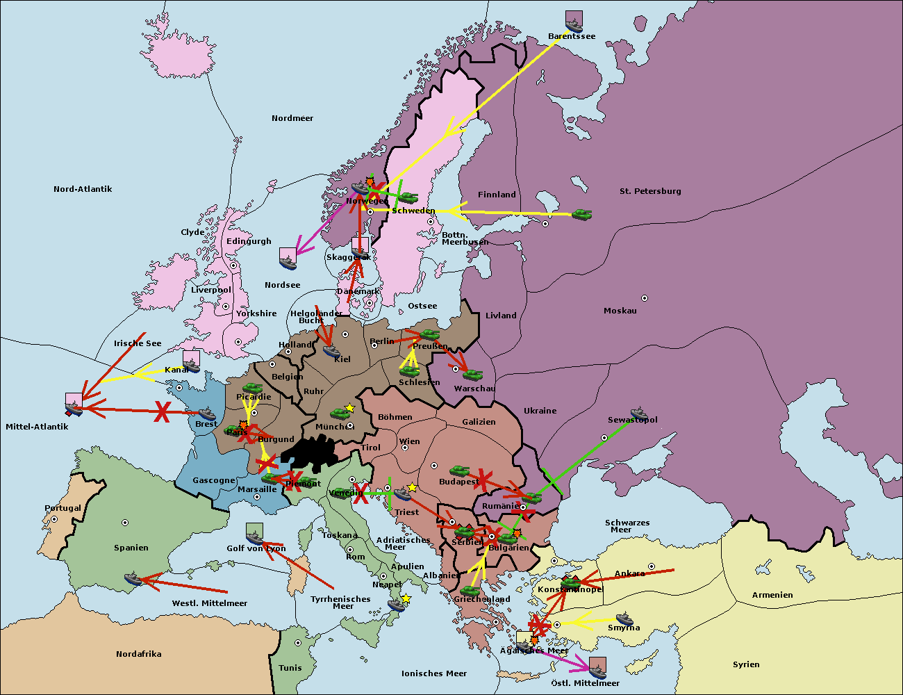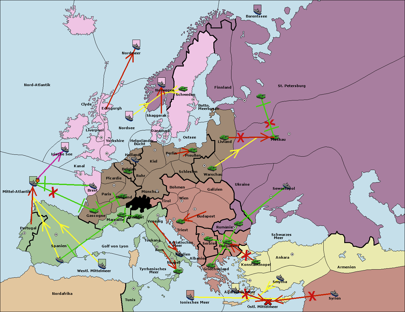 • Die Flotte in St. Petersburg (Nordküste) move nach Barentssee.