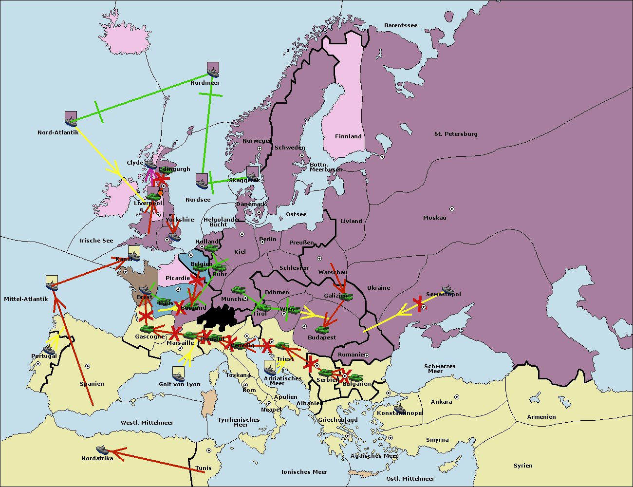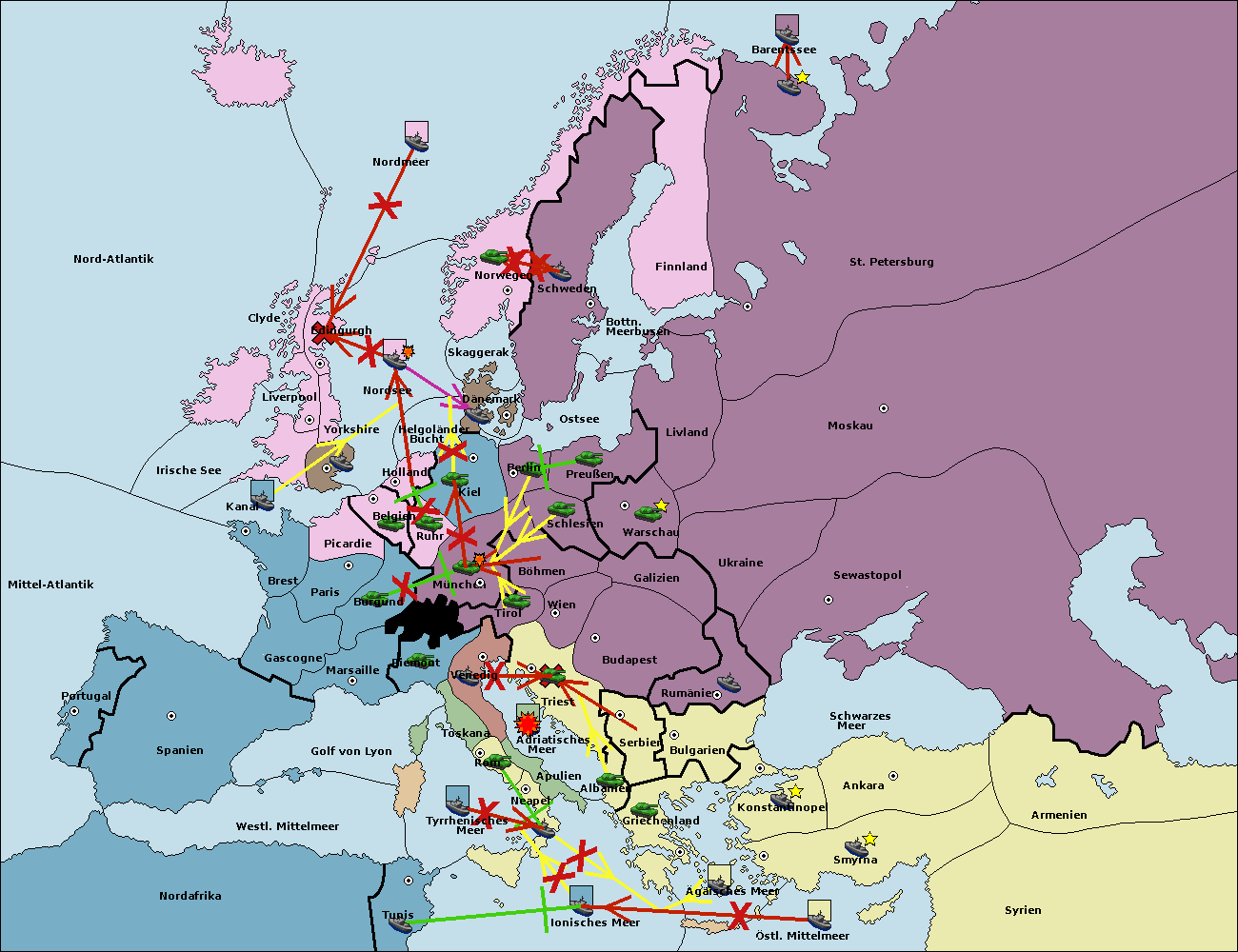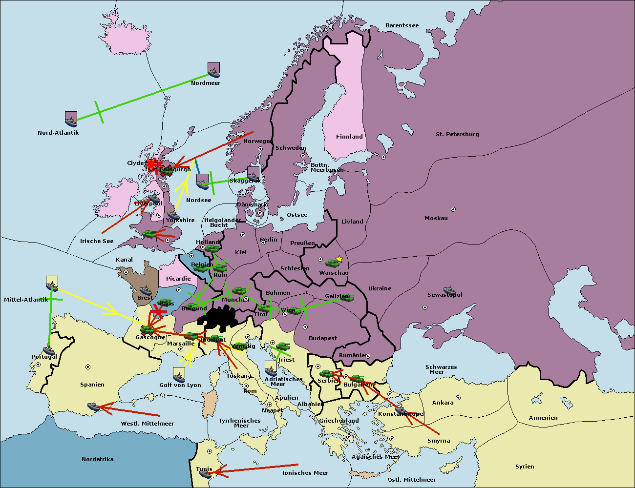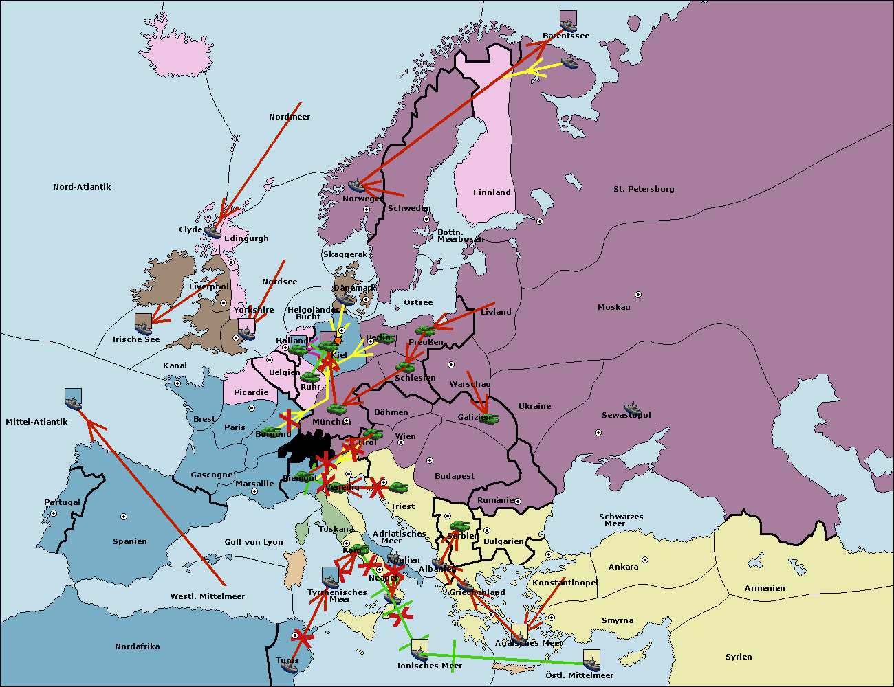 • Die Armee in Triest support move nach Serbien von Bulgarien.