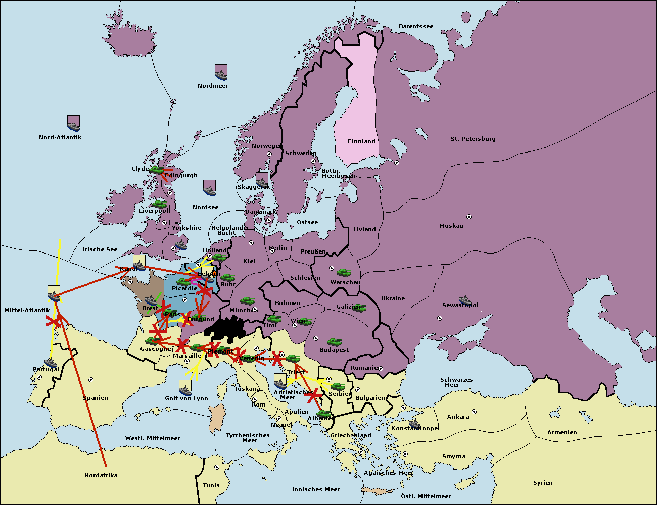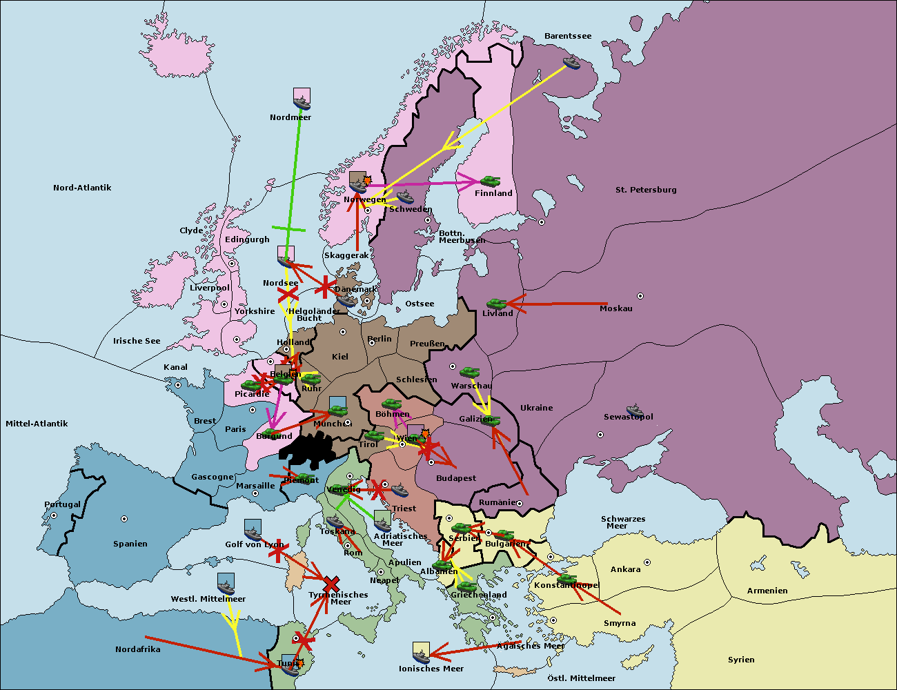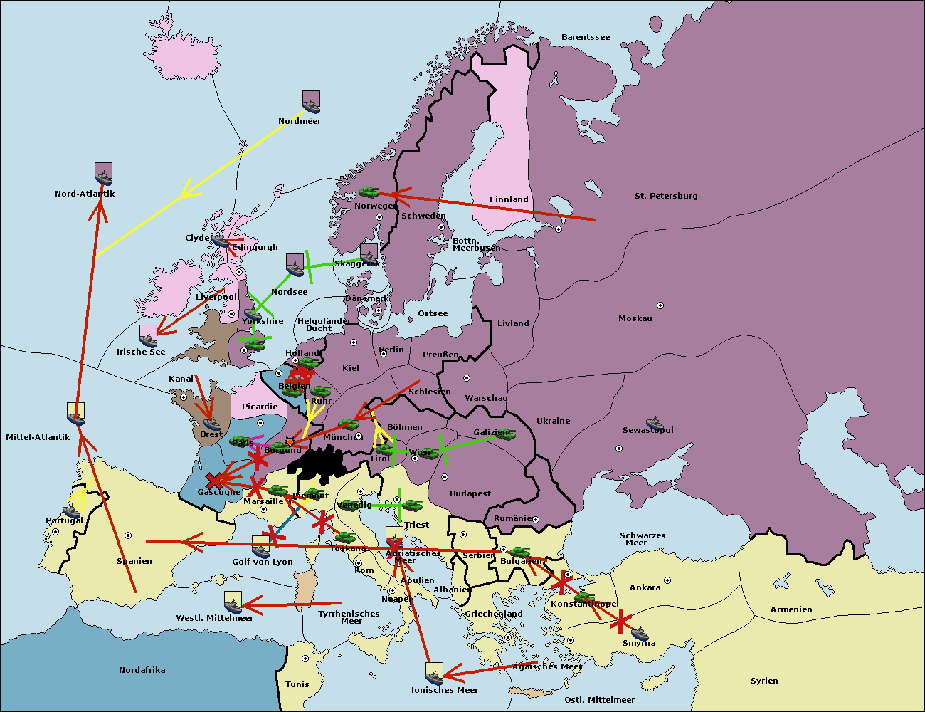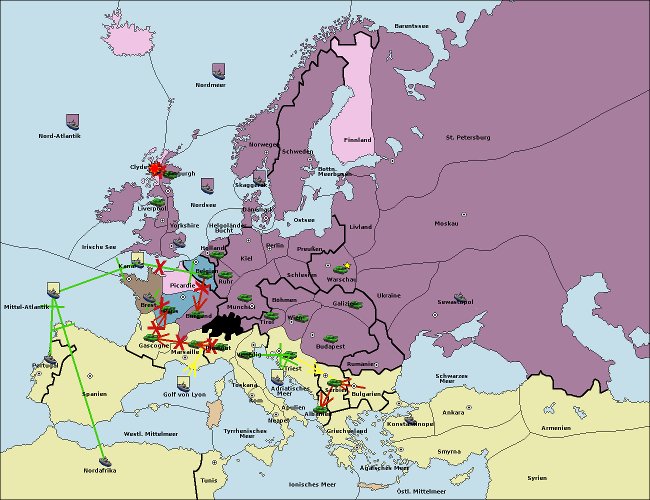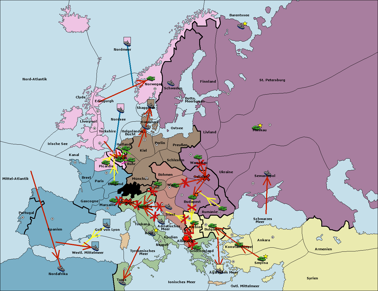 • Die Armee in Triest support move nach Serbien von Bulgarien.