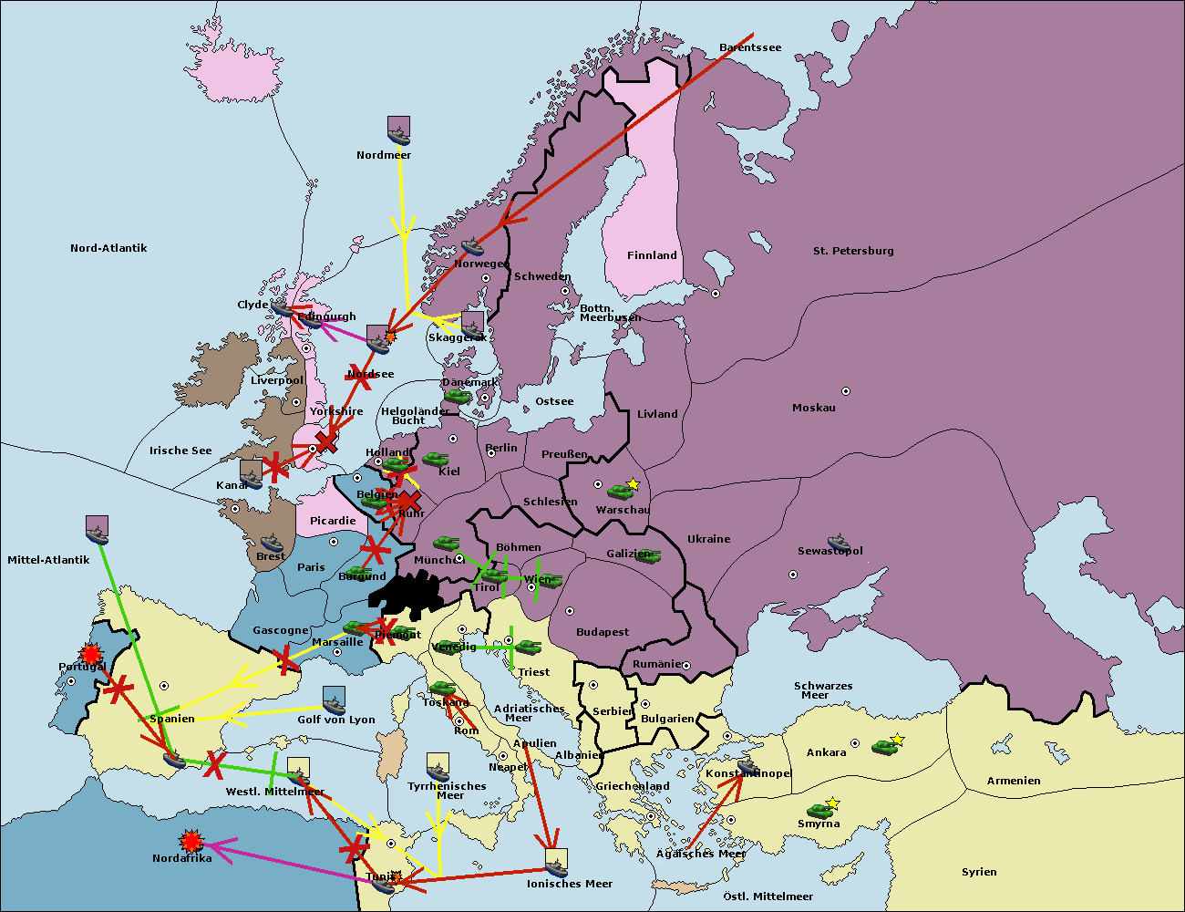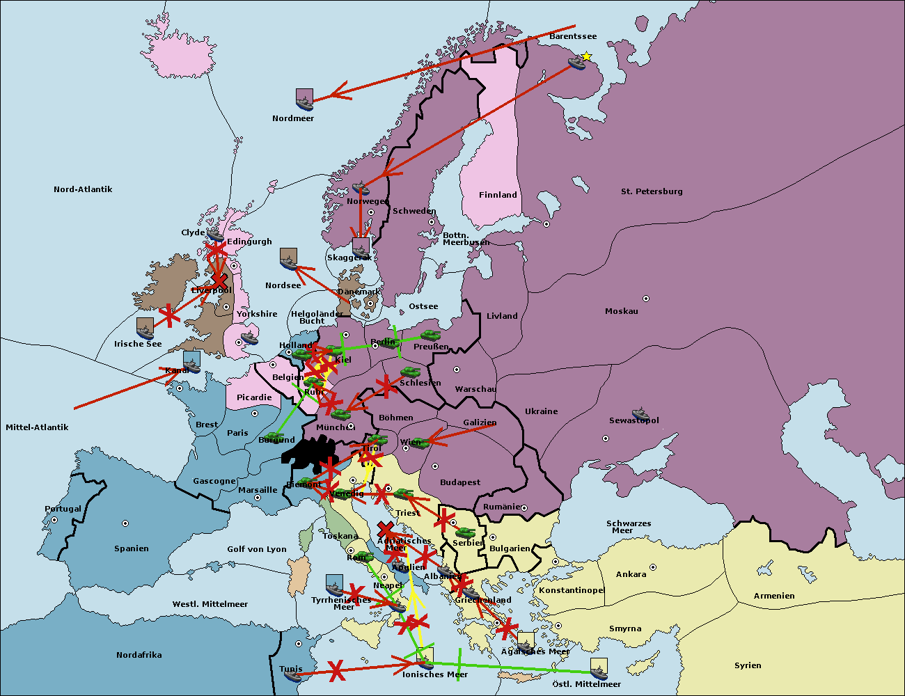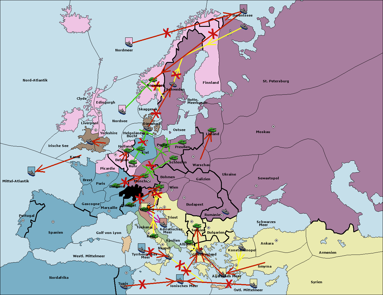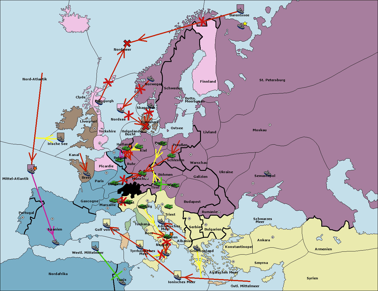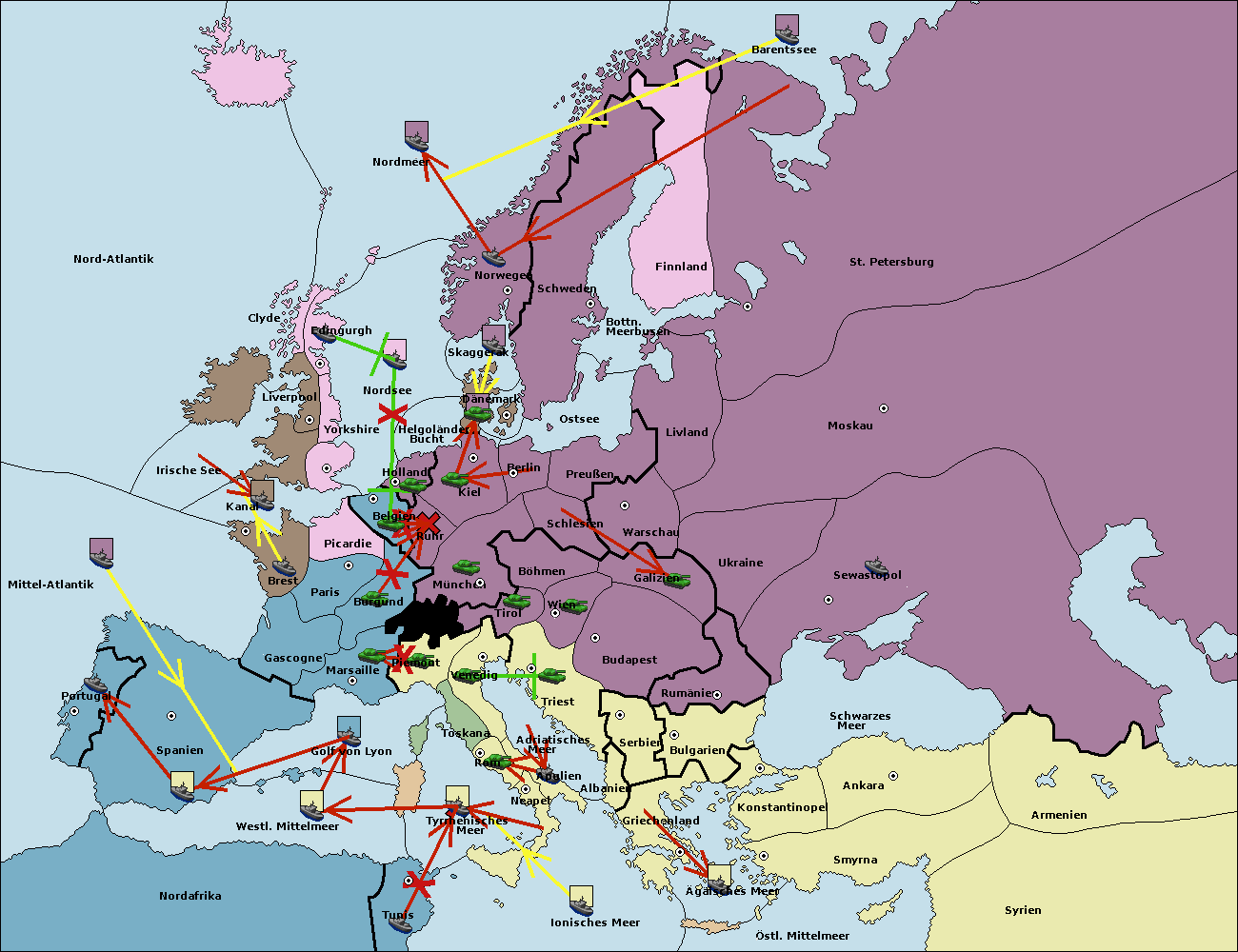 • Die Flotte in Spanien (Südküste) move nach westl. Mittelmeer.