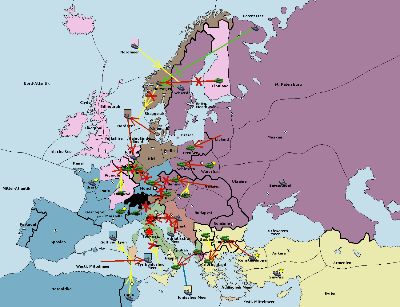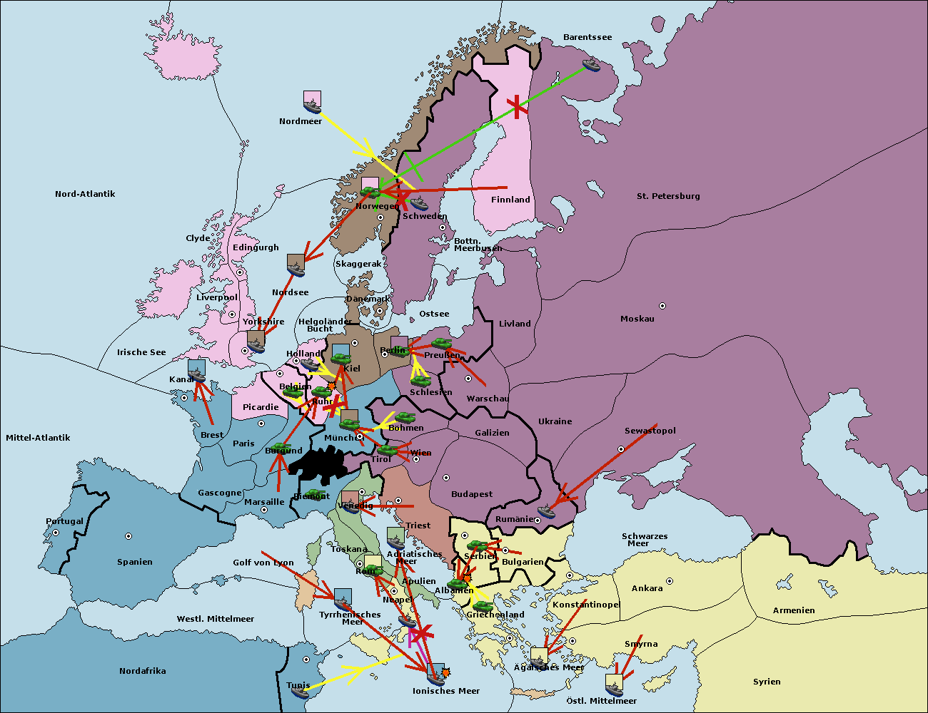 • Die Flotte in St. Petersburg (Nordküste) support move nach Norwegen von Skagerak.