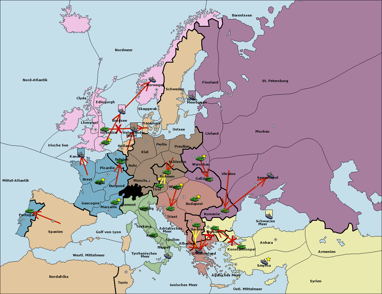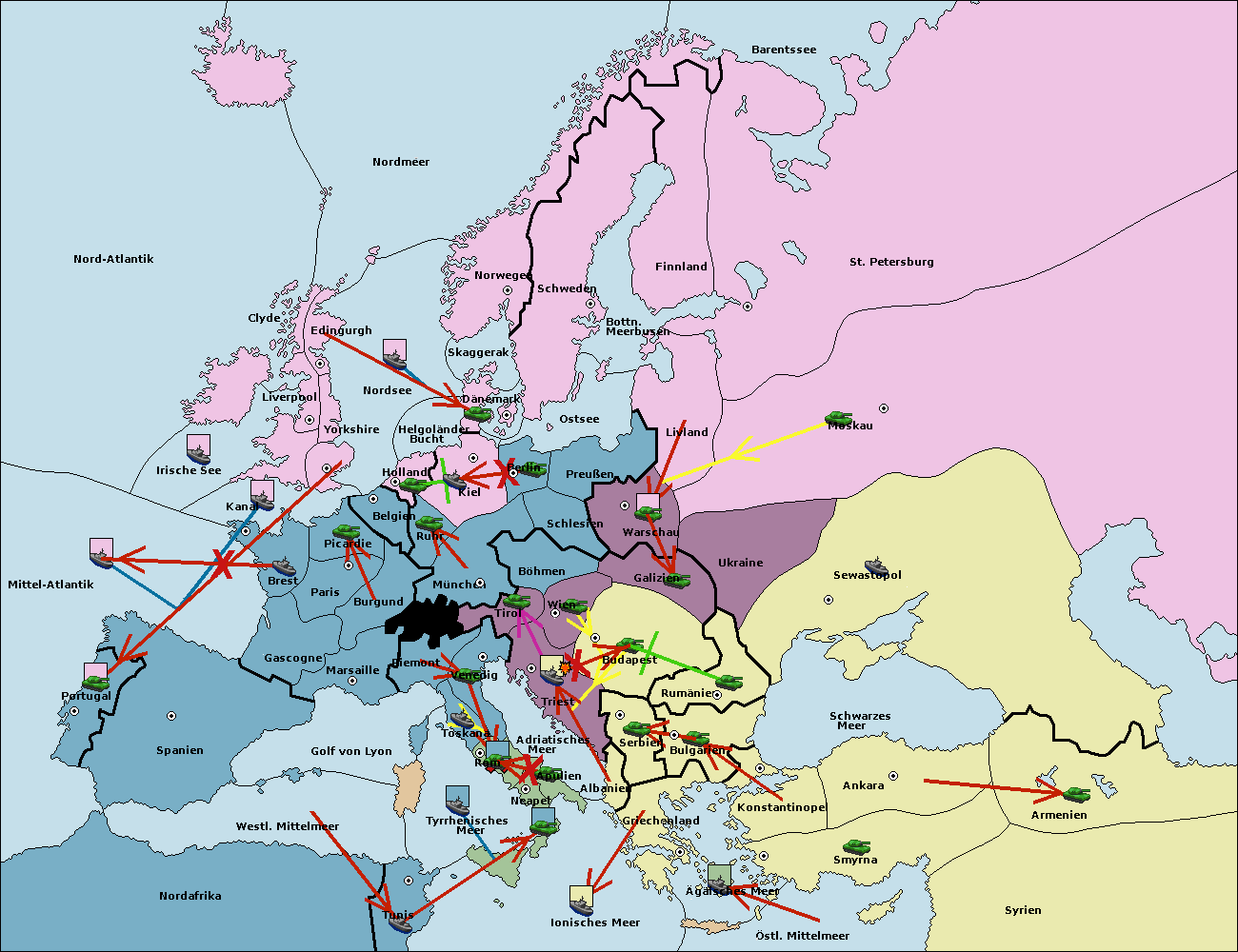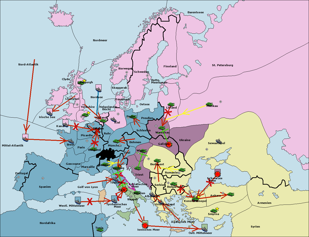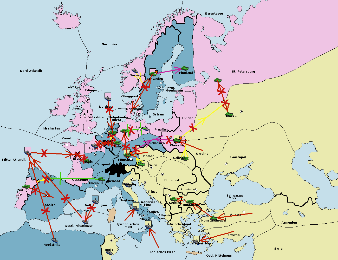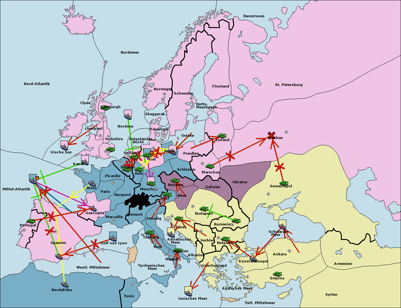 • Die Armee in Warschau support move nach Moskau von St. Petersburg. (gescheitert)