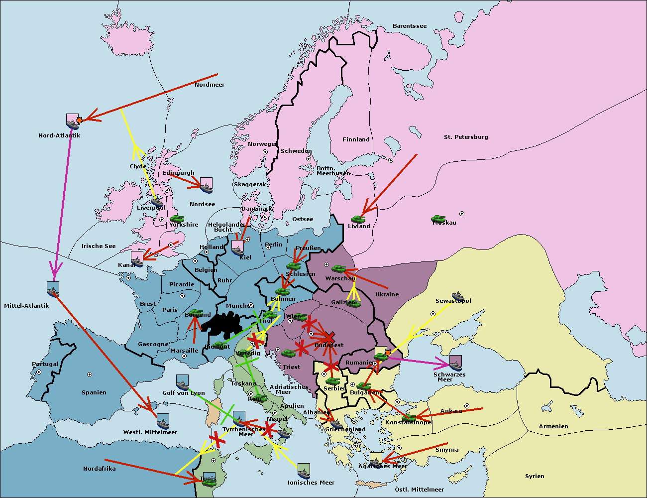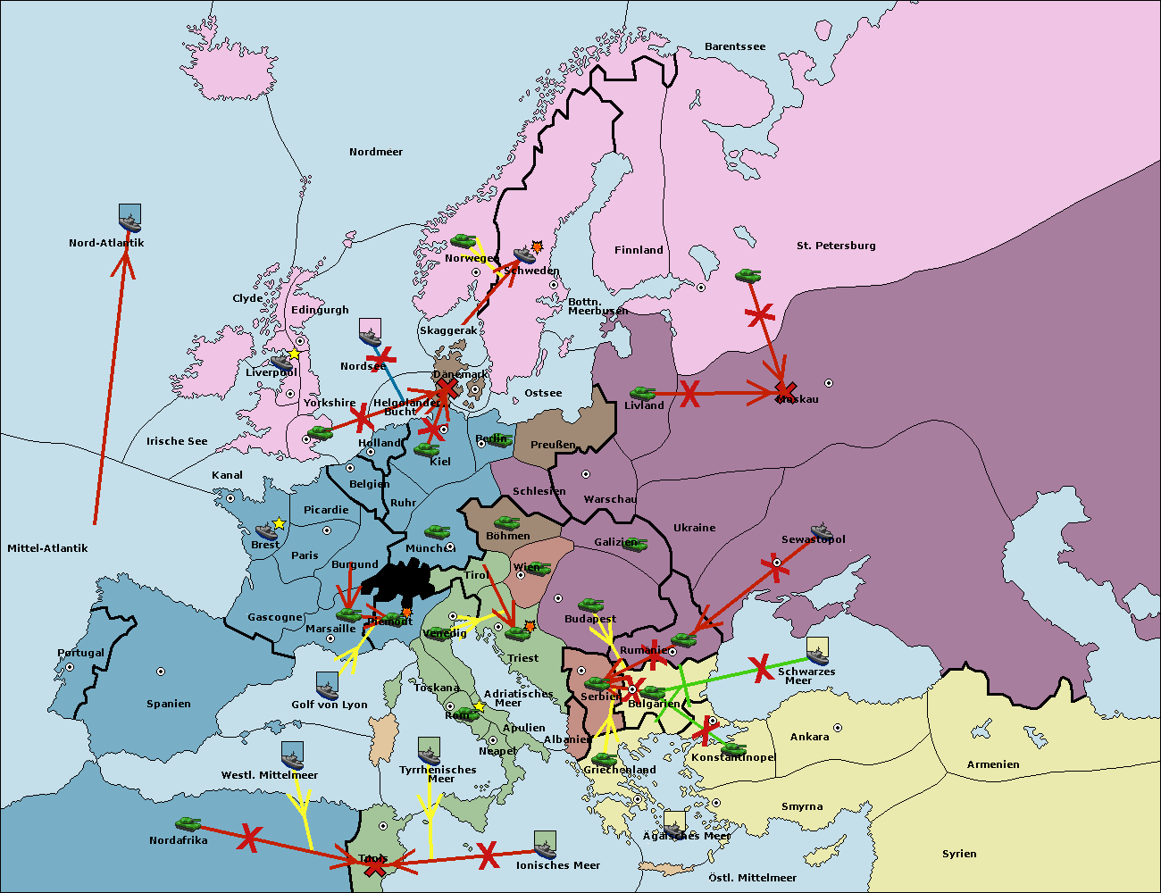 • Die Flotte in Nord Afrika move nach Tunis. (gescheitert)