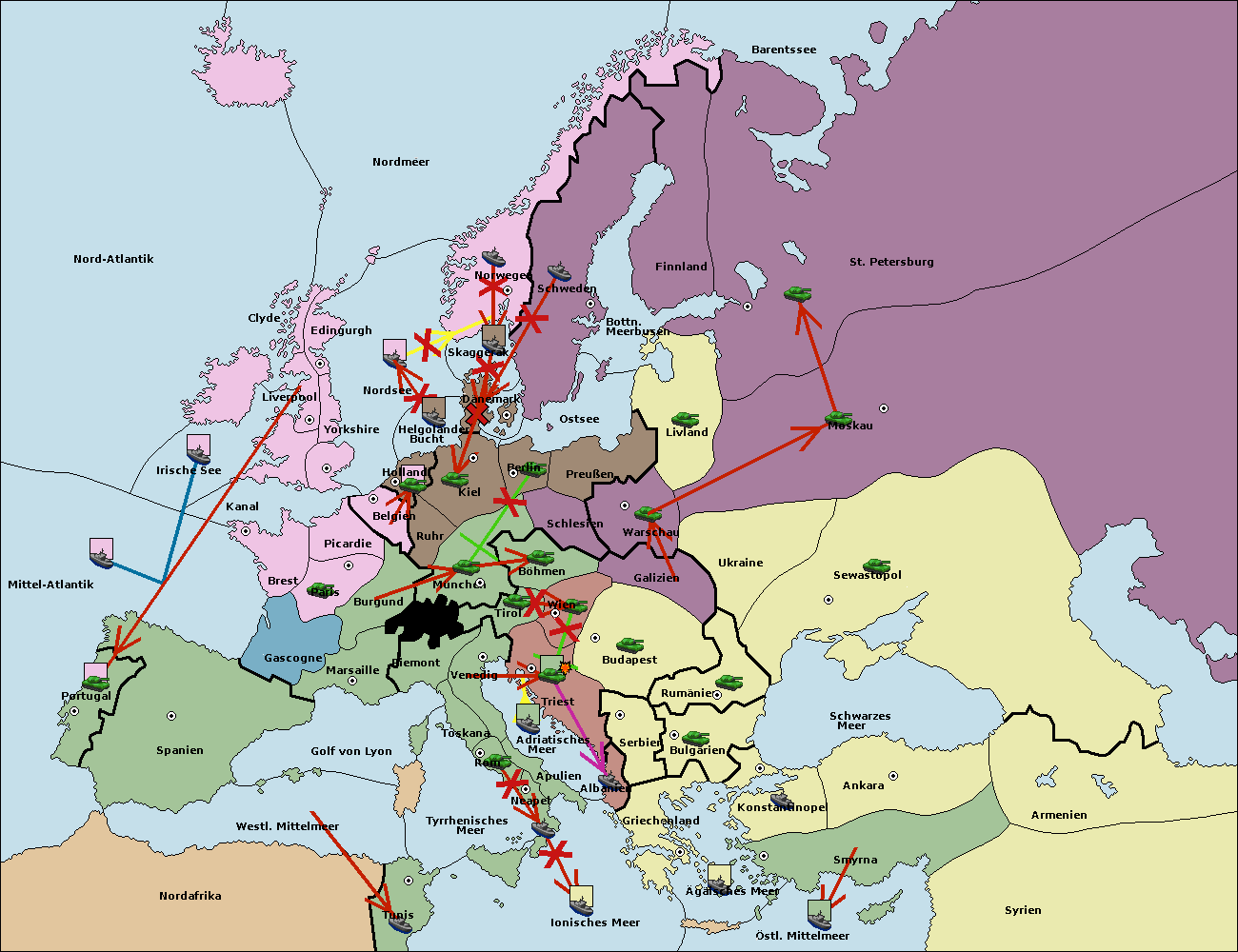 • Die Flotte in Spanien (Südküste) move nach Portugal.