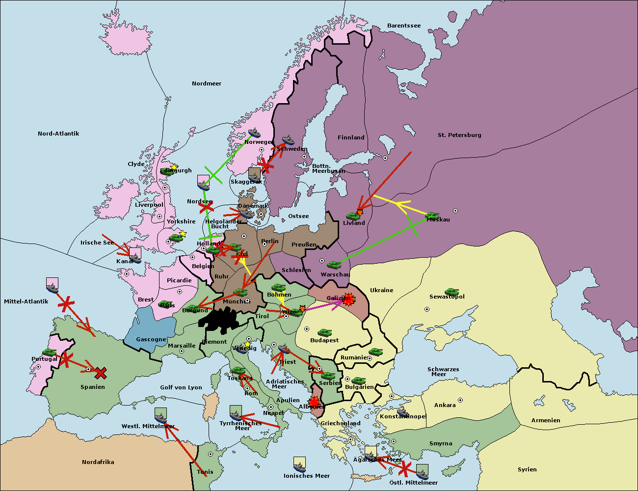 • Die Armee in Wien support move nach Galizien von Budapest.