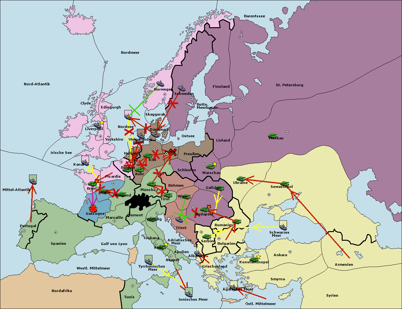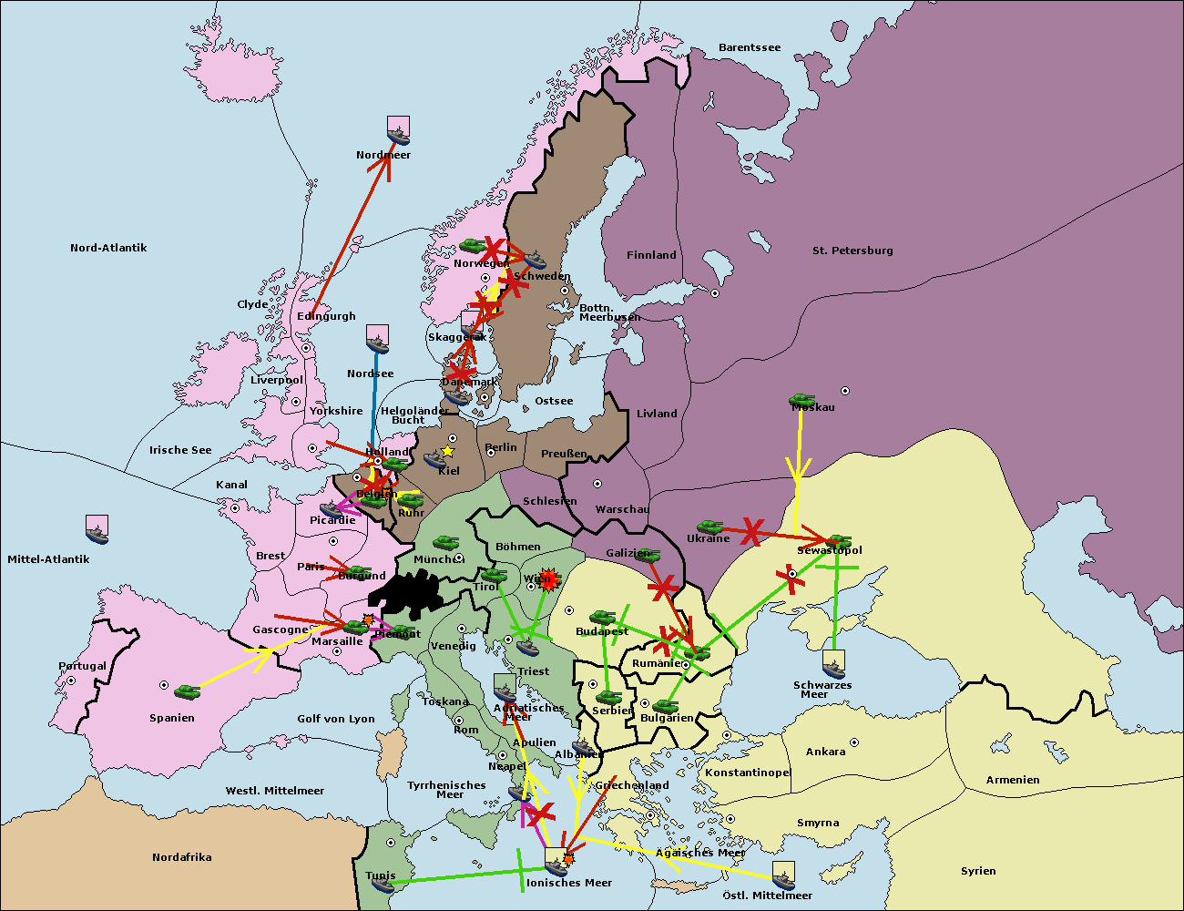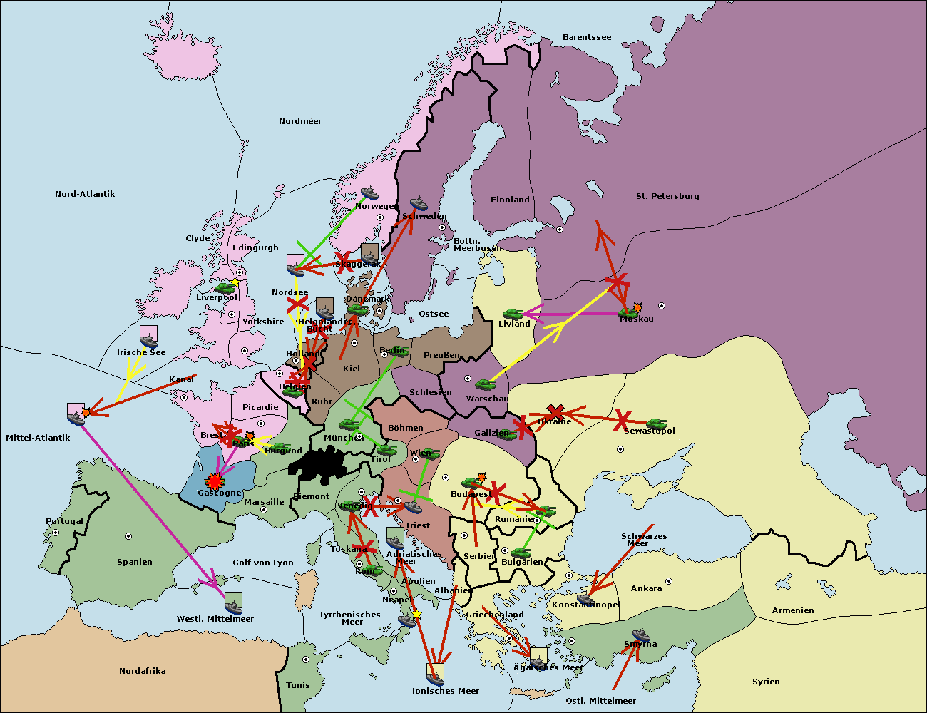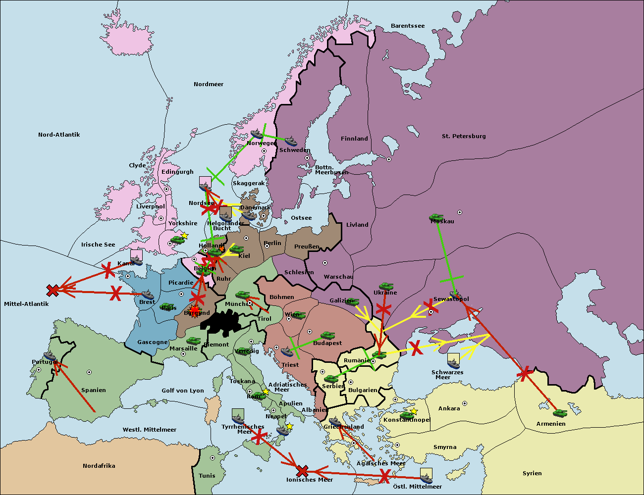 • Die Flotte in Spanien (Südküste) support move nach Marseille von Piemont.