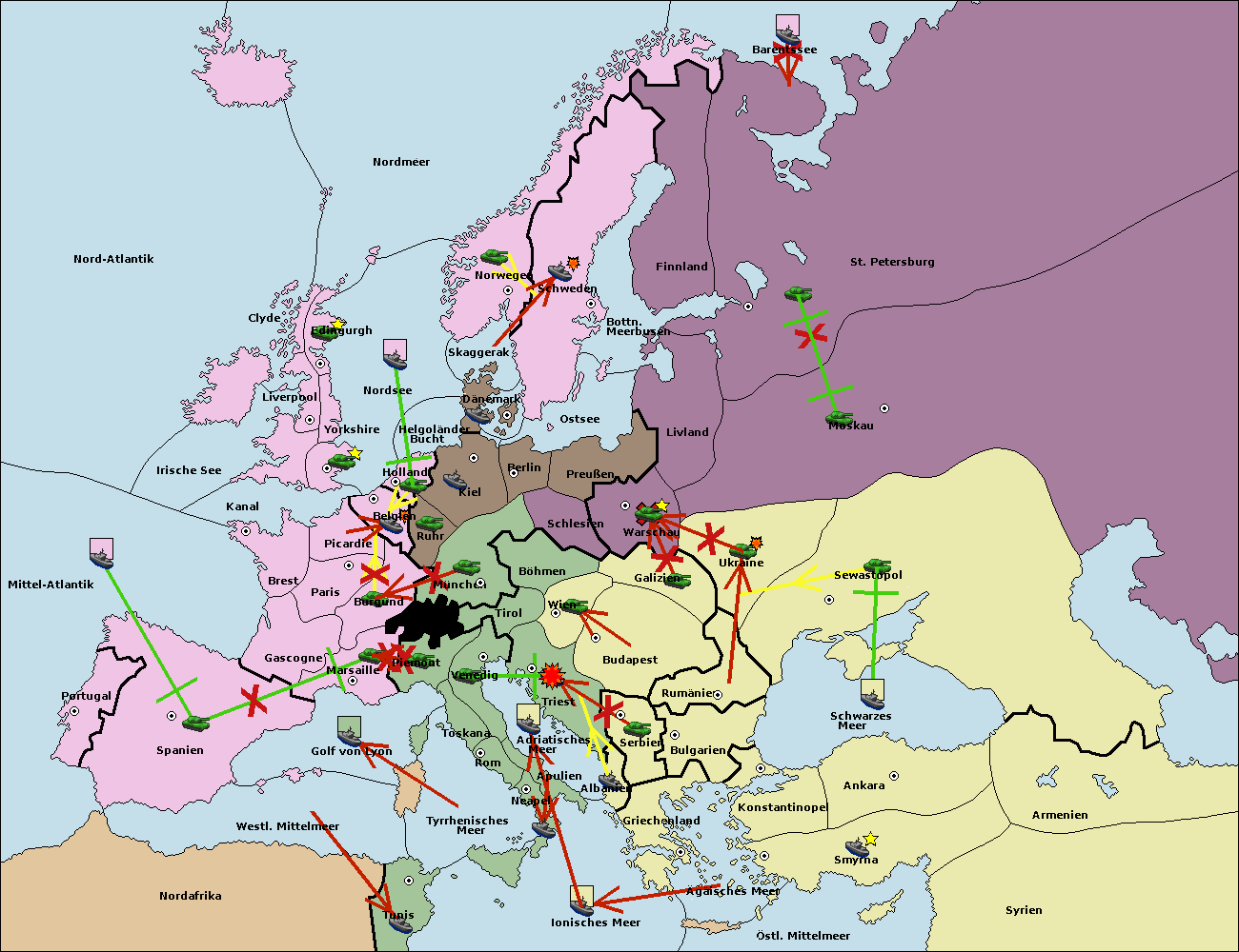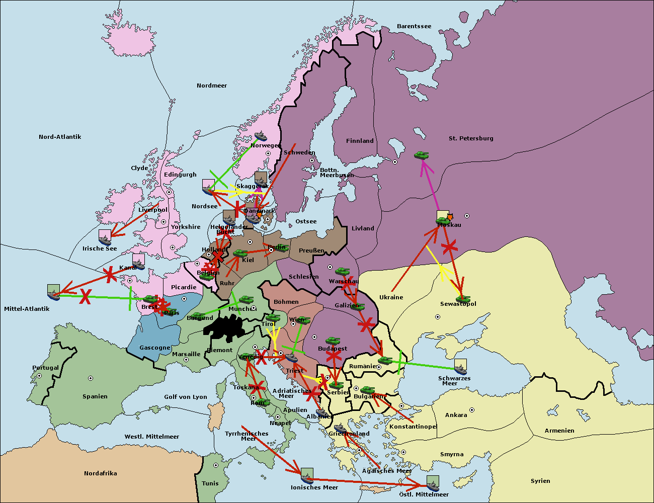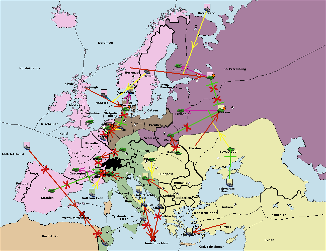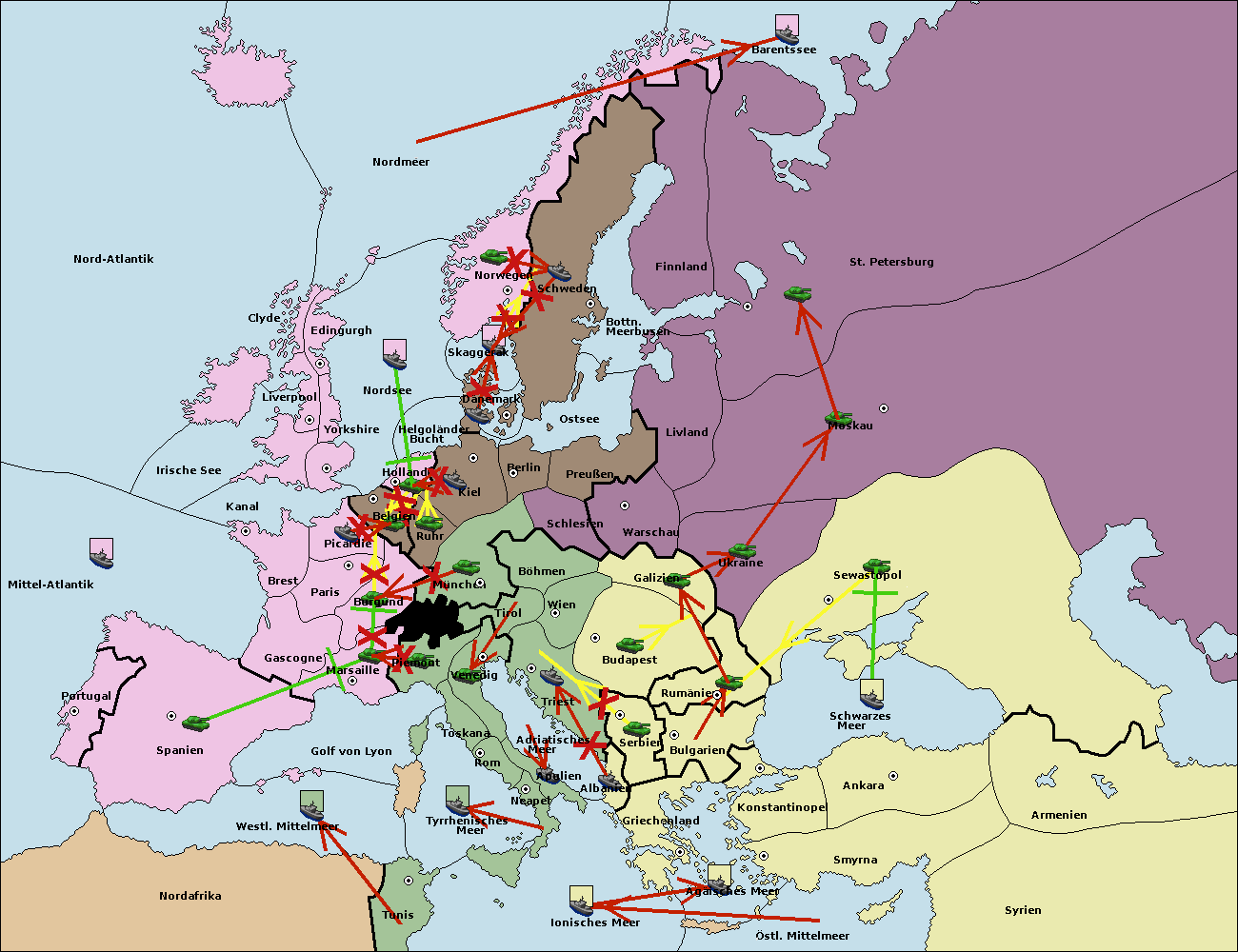 • Die Flotte in St. Petersburg (Nordküste) move nach Barentssee.