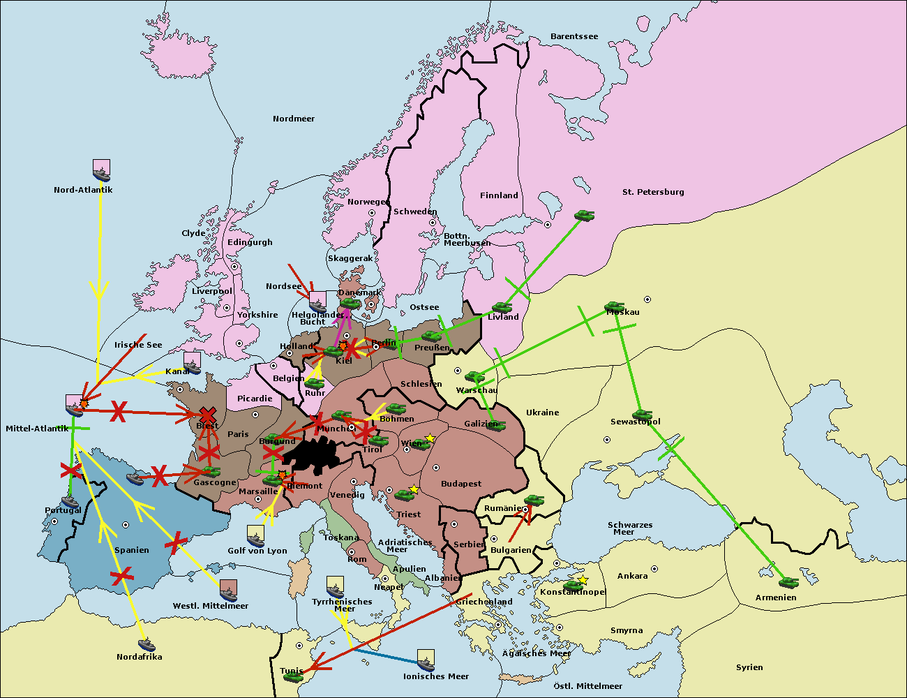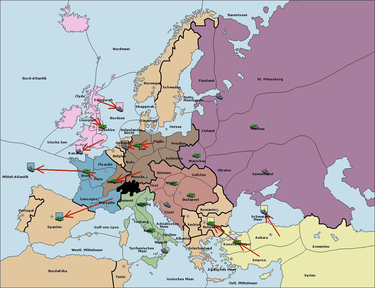 • Die Armee in Konstantinopel support hold nach Bulgarien.