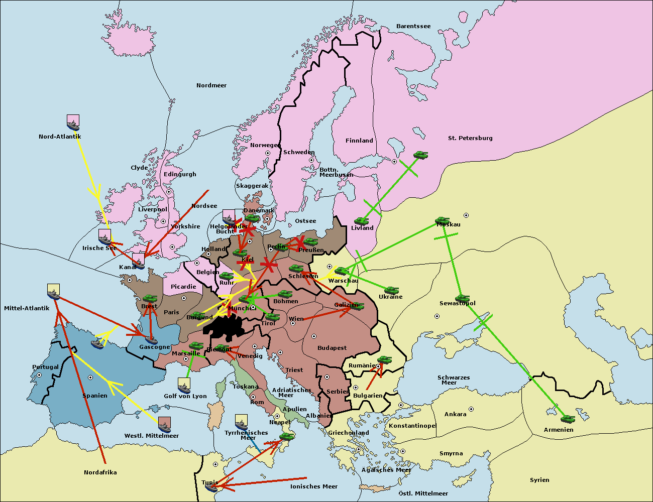 • Die Armee in München support hold nach Burgund.