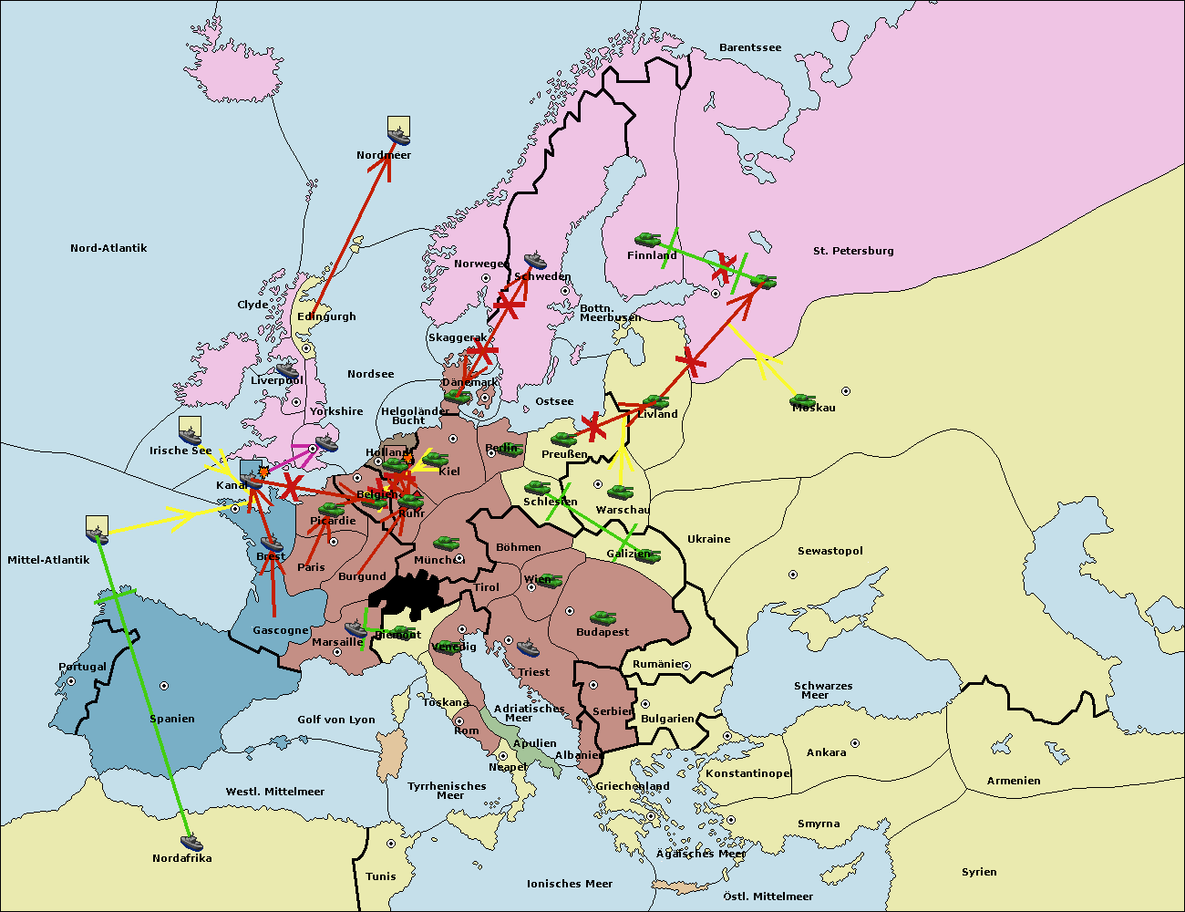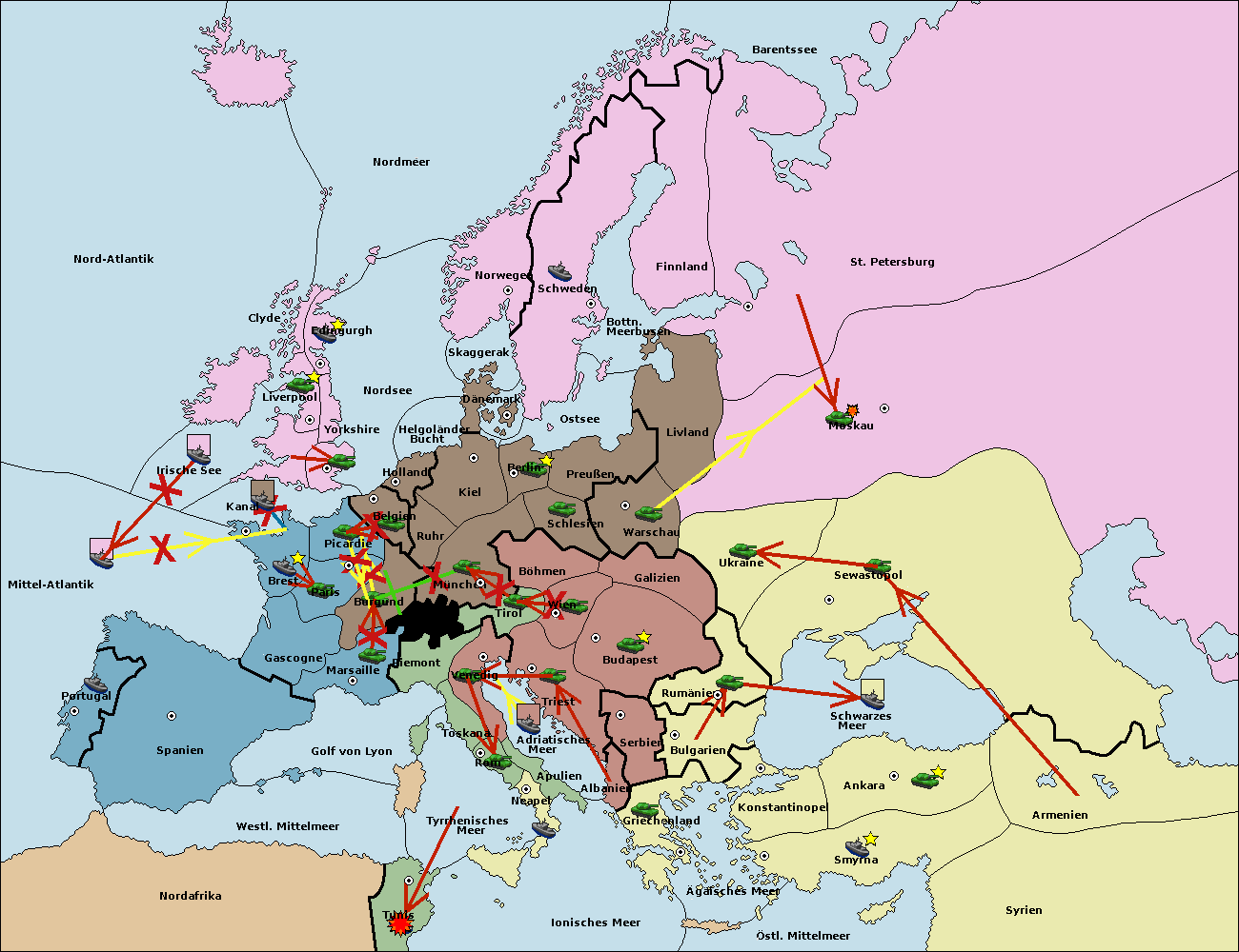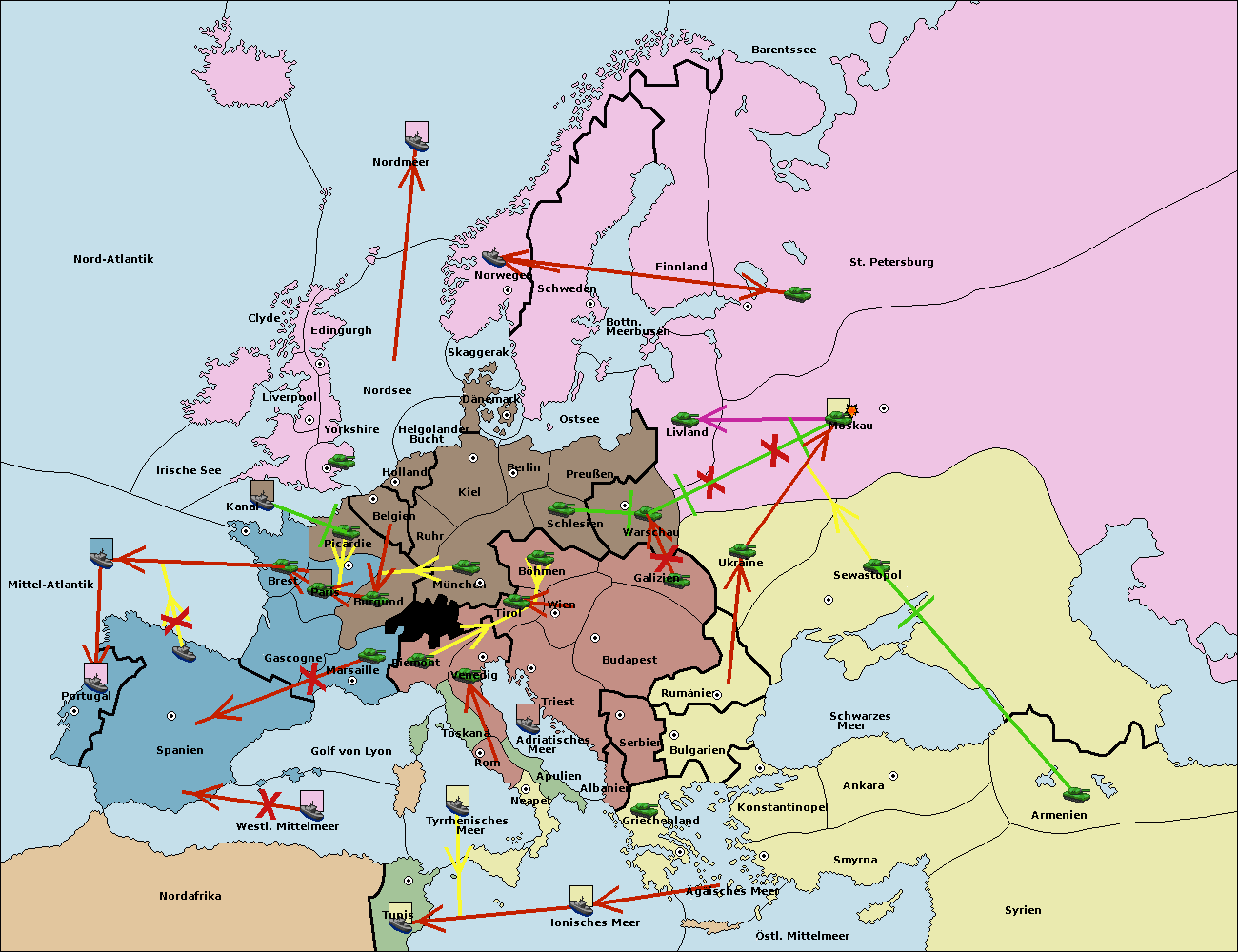 • Die Armee in Warschau support move nach Moskau von St. Petersburg.