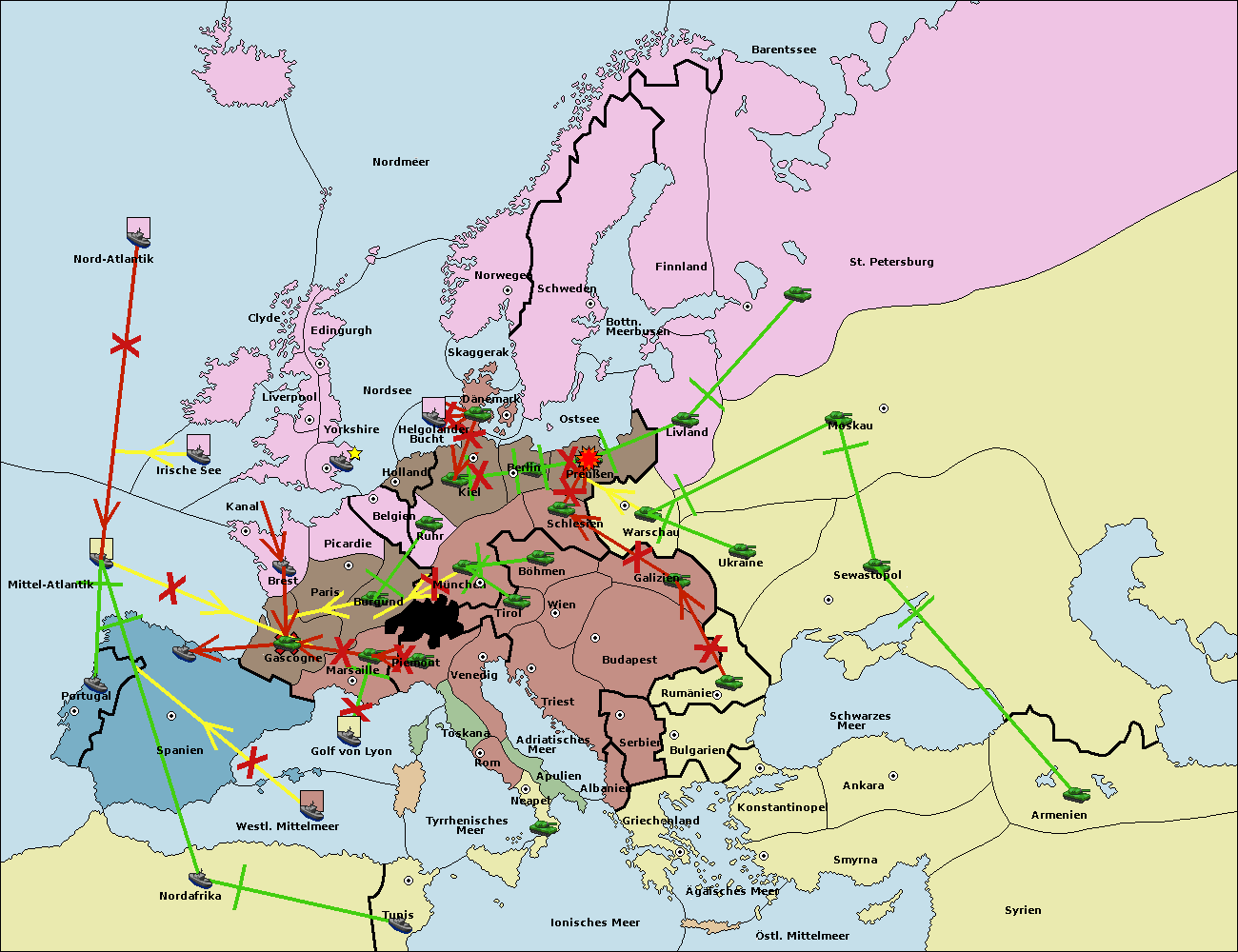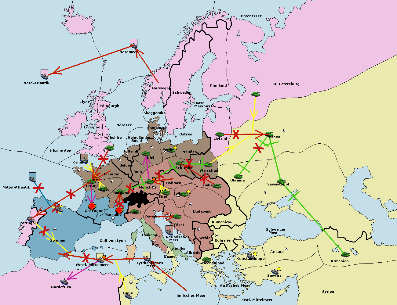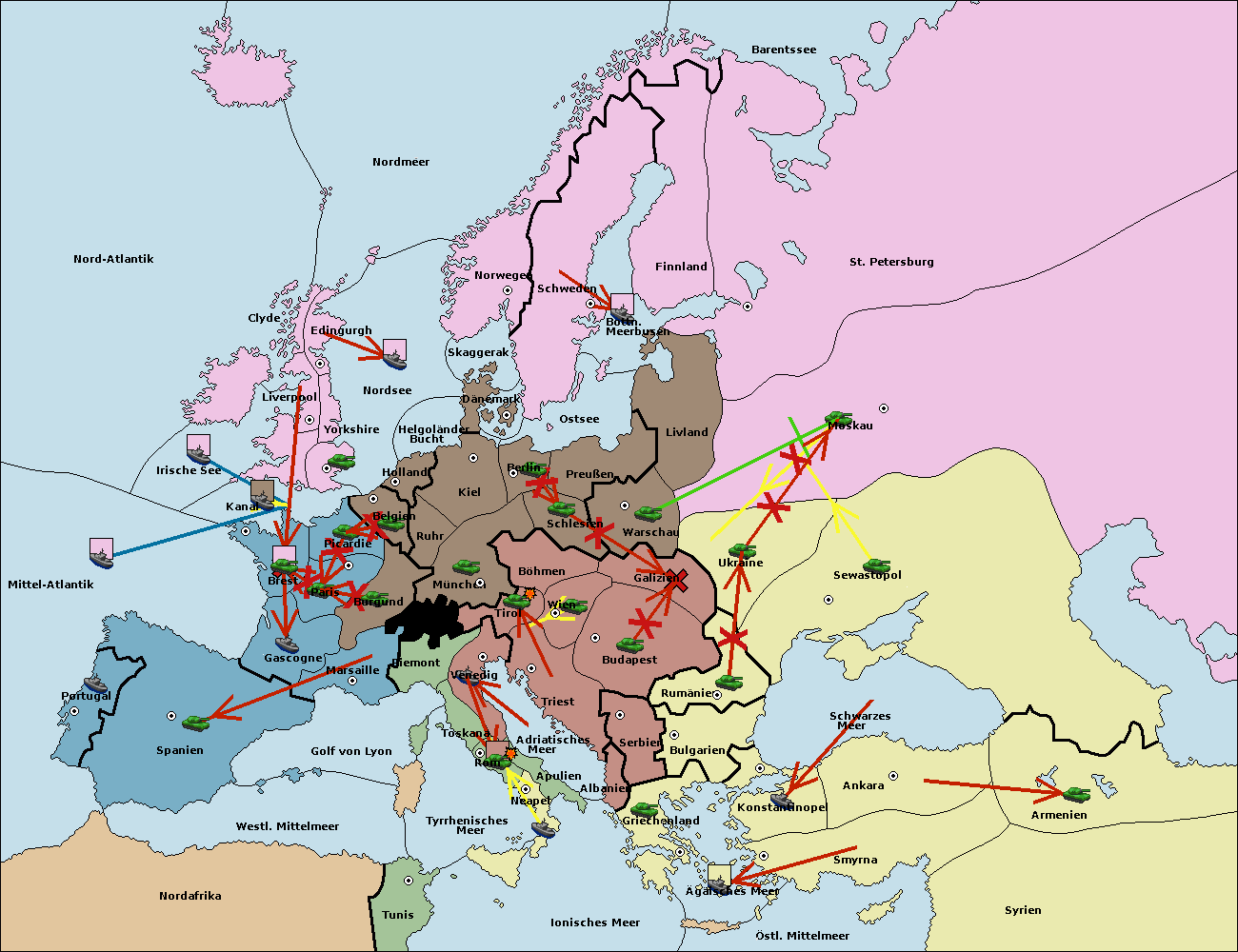 • Die Armee in Warschau support move nach Moskau von St. Petersburg.
