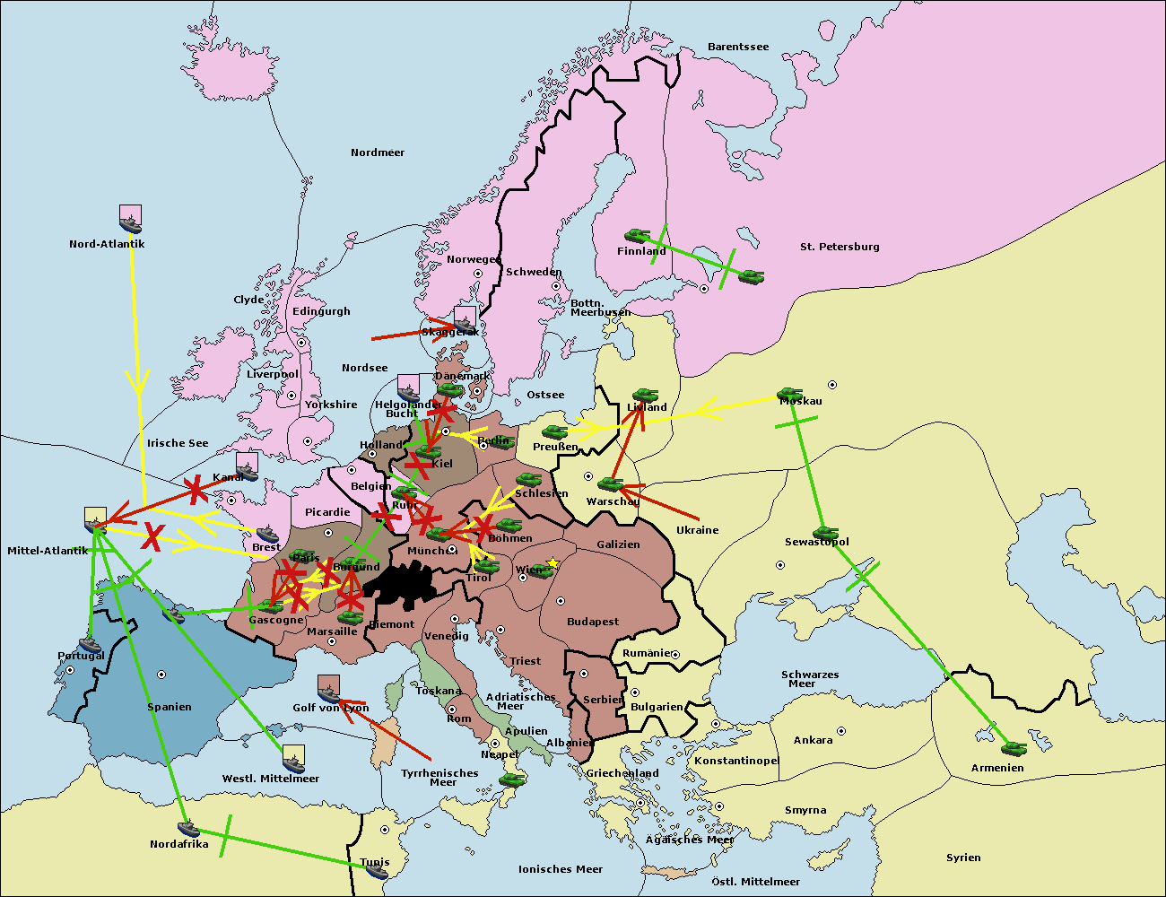 • Die Flotte in Tyrrhenisches Meer support hold nach Golf von Lyon.