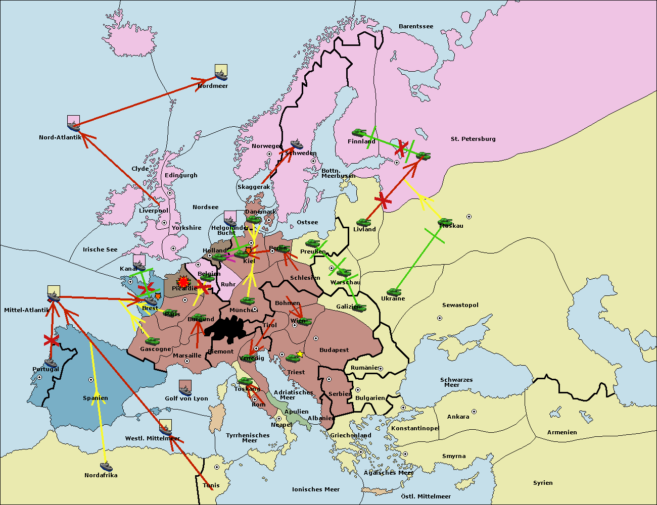 • Die Armee in Warschau wird zerstörtFlotte in Warschau gebaut.
