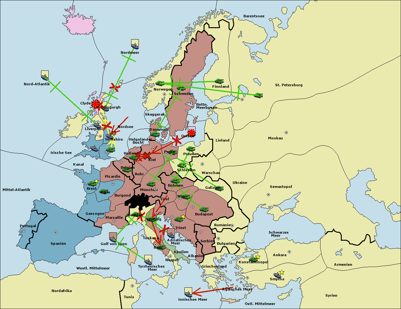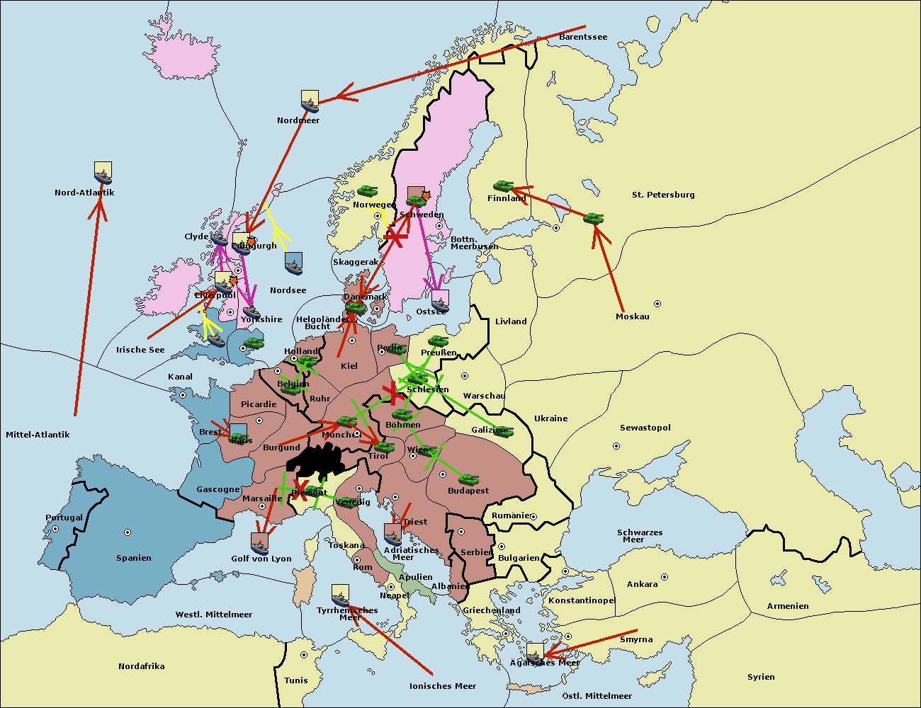 • Die Flotte in Edinburgh support hold nach Nordmeer. (gescheitert)