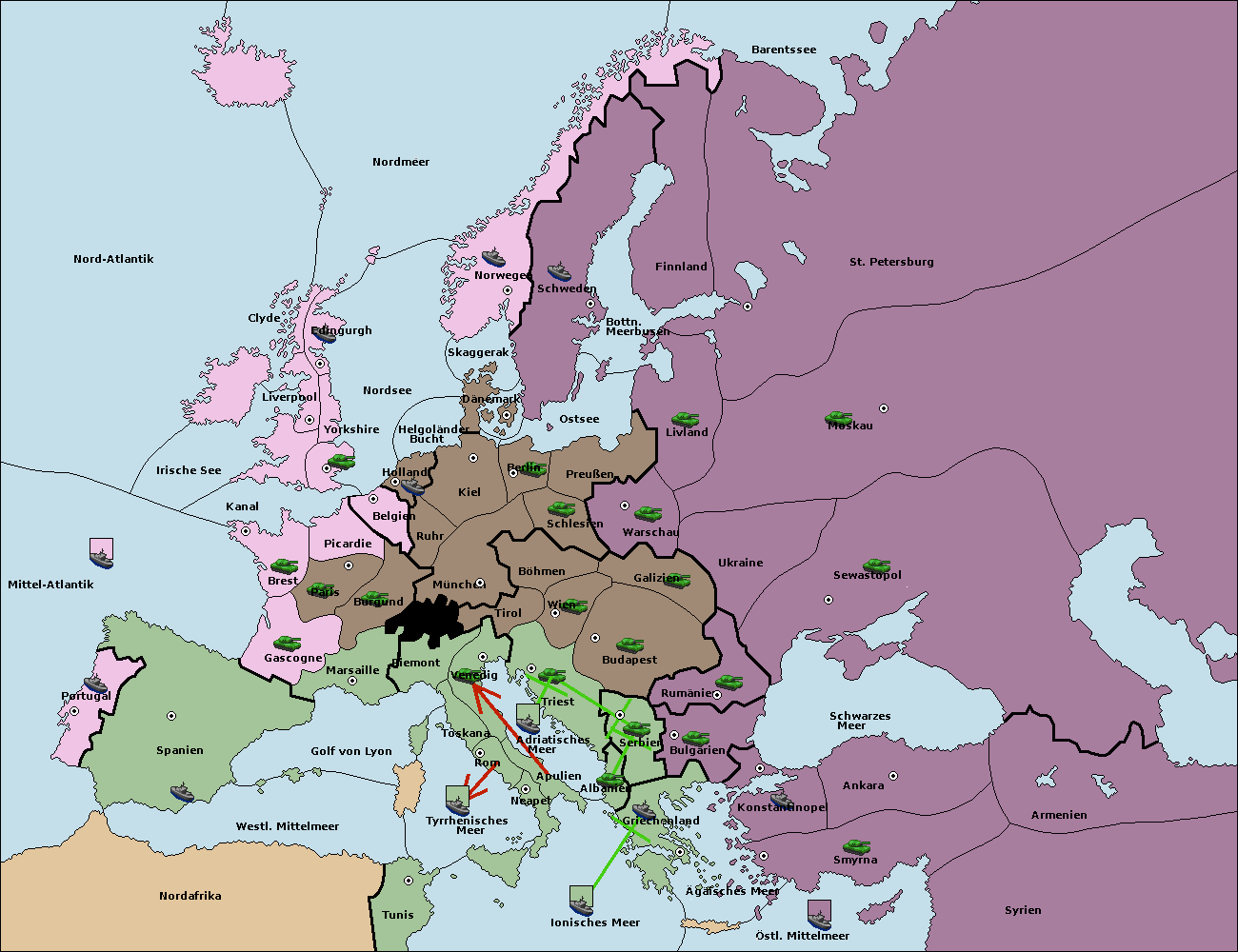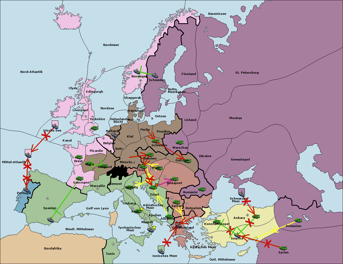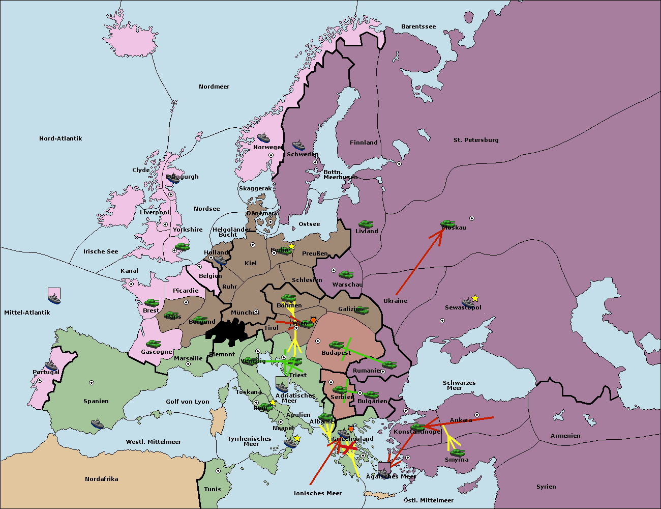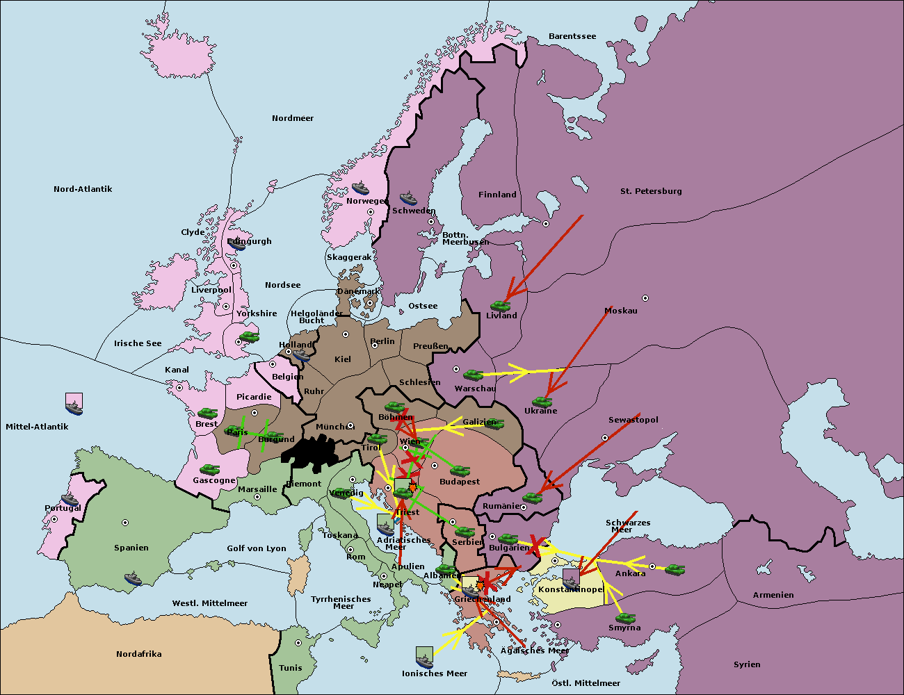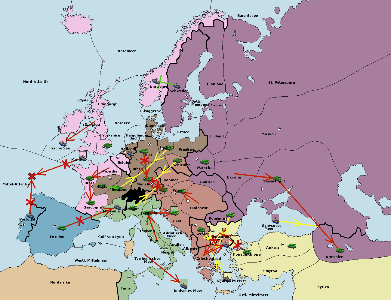 • Die Flotte in Griechenland move nach Bulgarien (Südküste). (gescheitert)