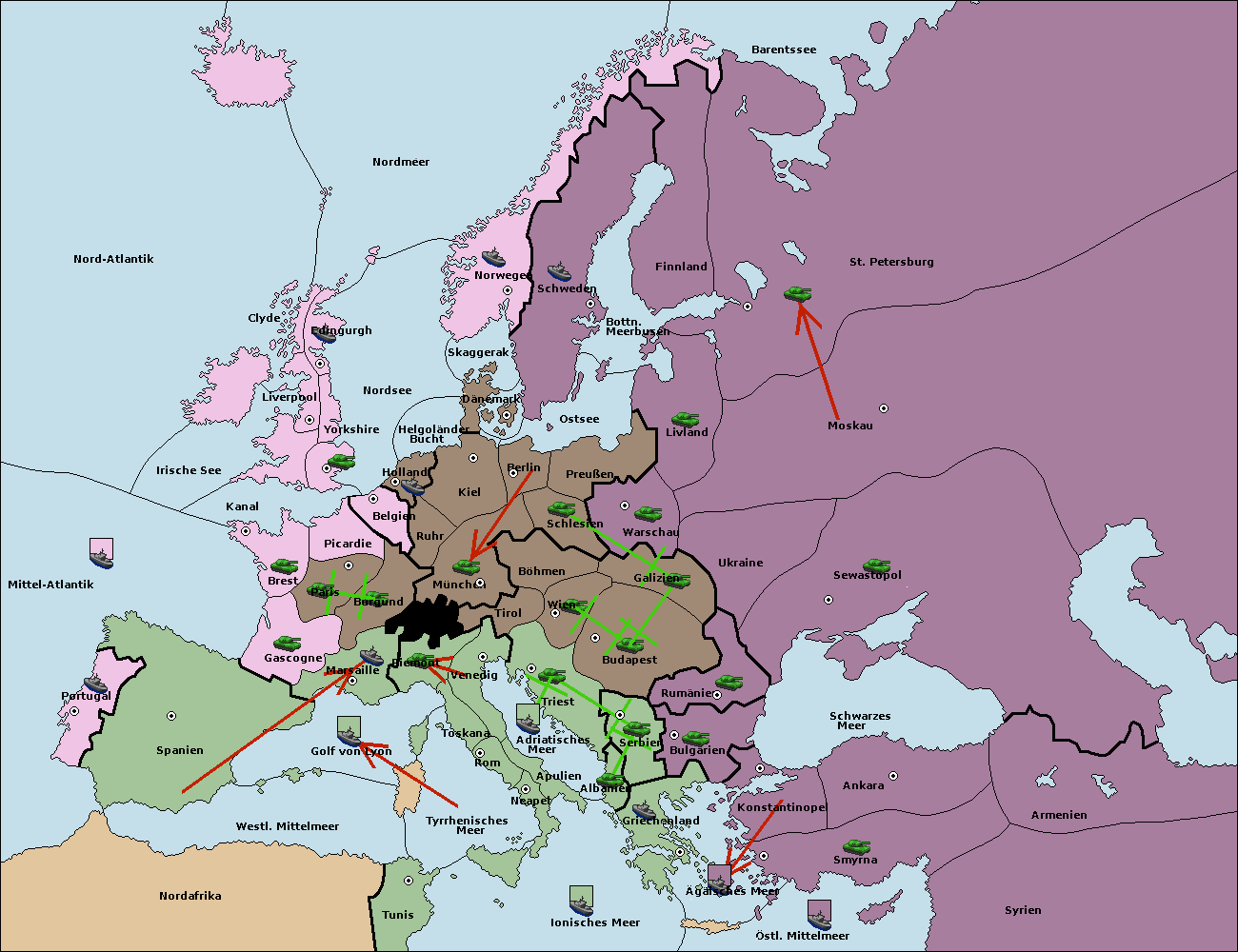• Die Armee in Kiel support move nach München von Ruhr.
