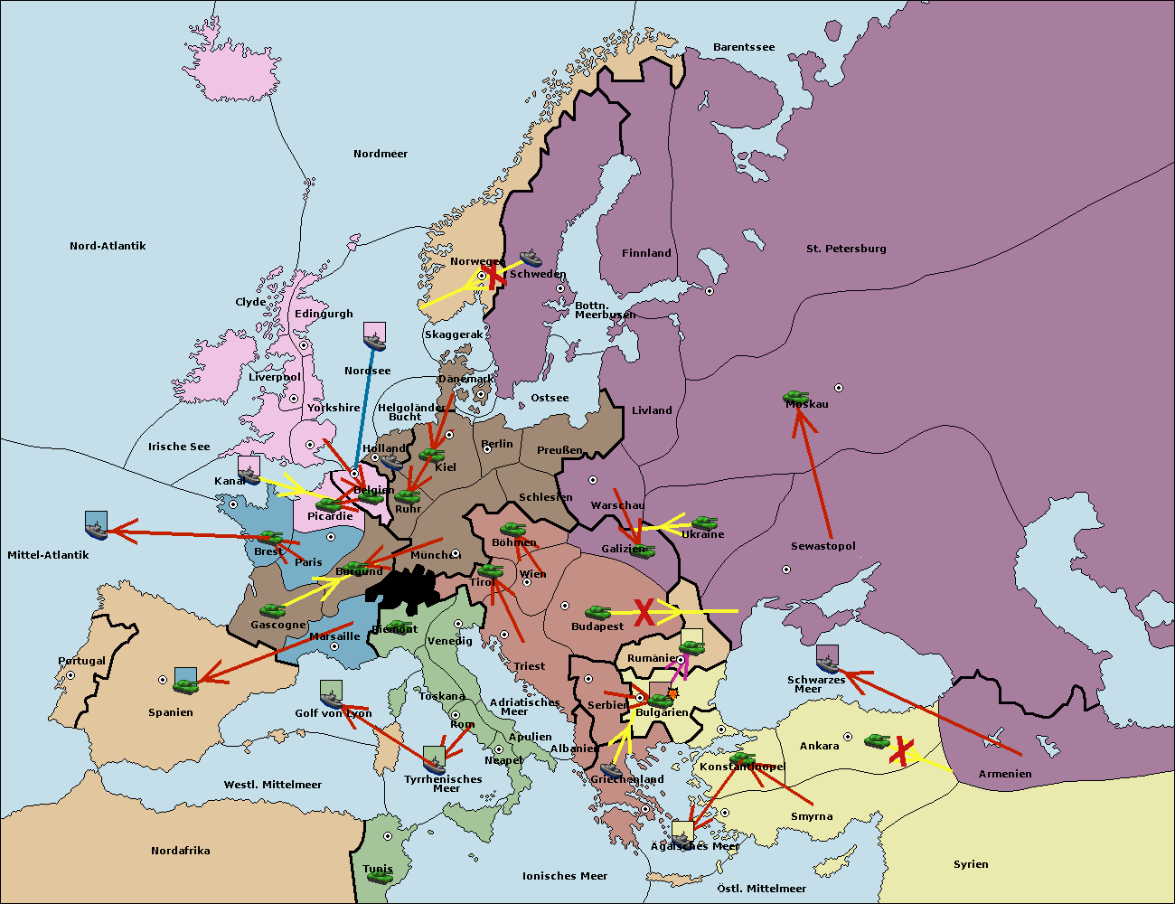 • Die Armee in Budapest support move nach Rumänien von Sewastopol. (gescheitert)