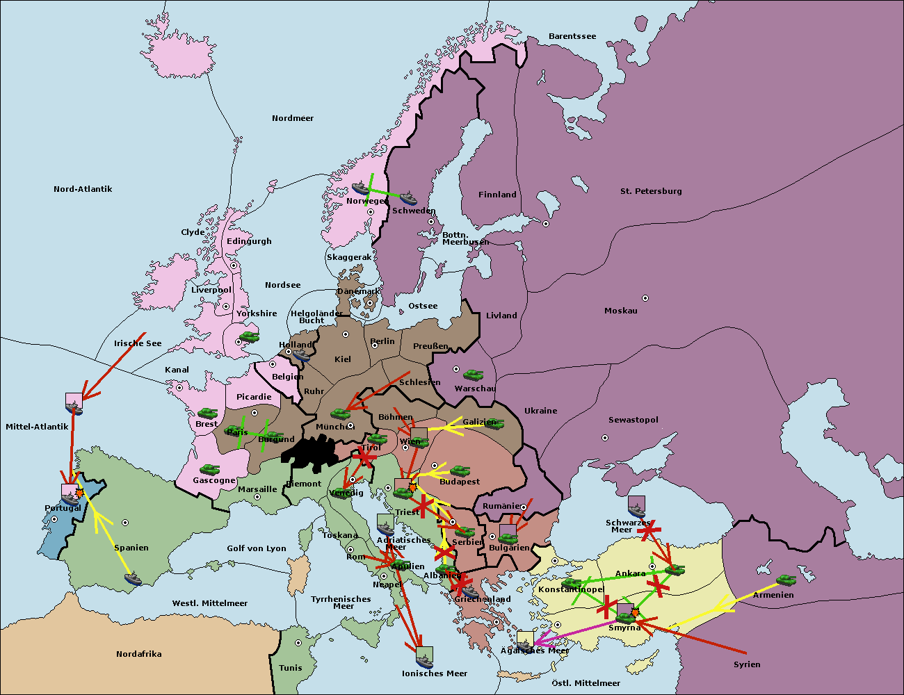 • Die Armee in Ankara support hold nach Konstantinopel.