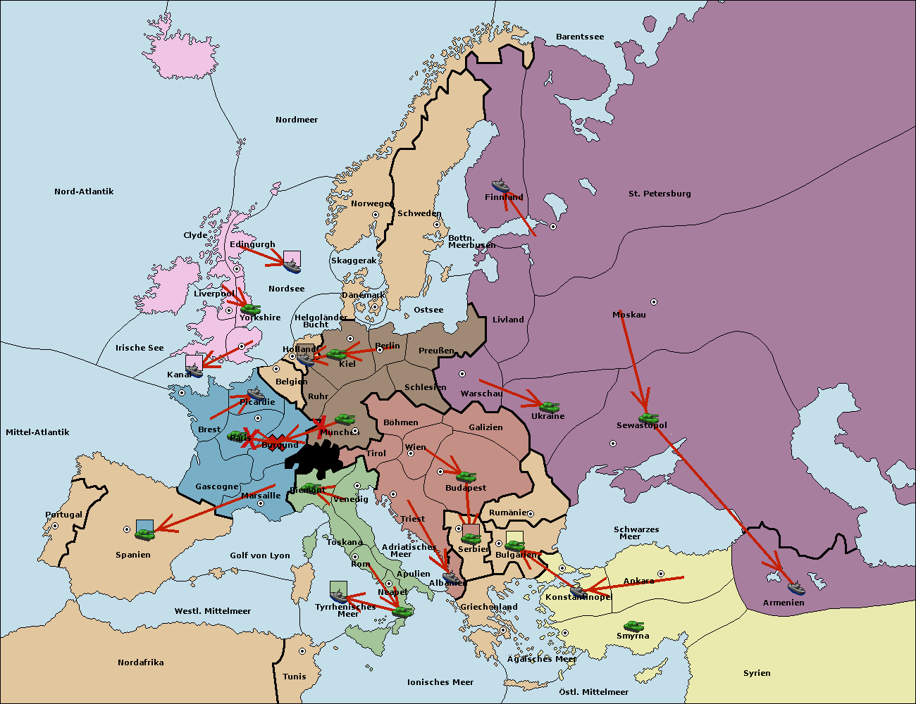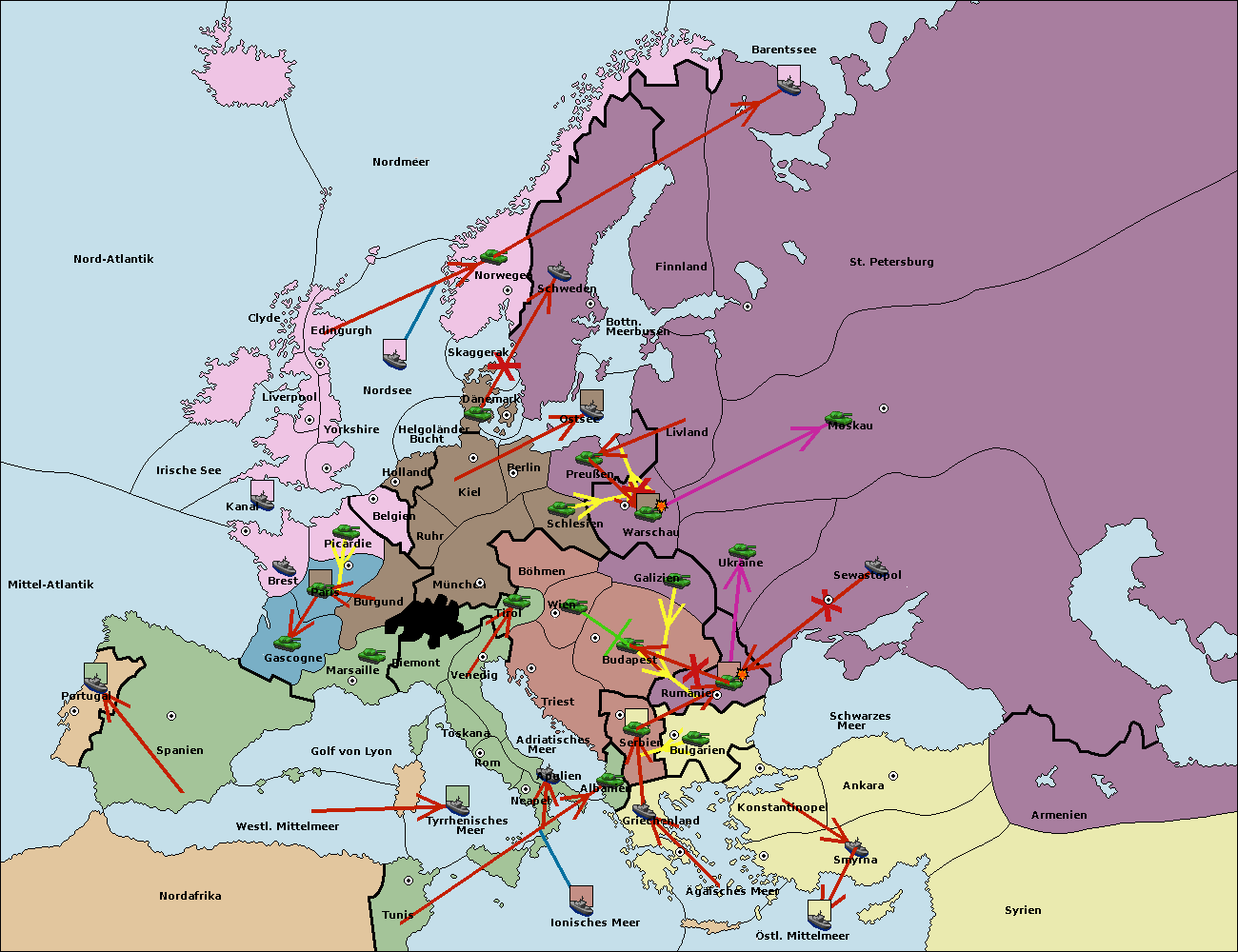 • Die Armee in Budapest support move nach Galizien von Wien.