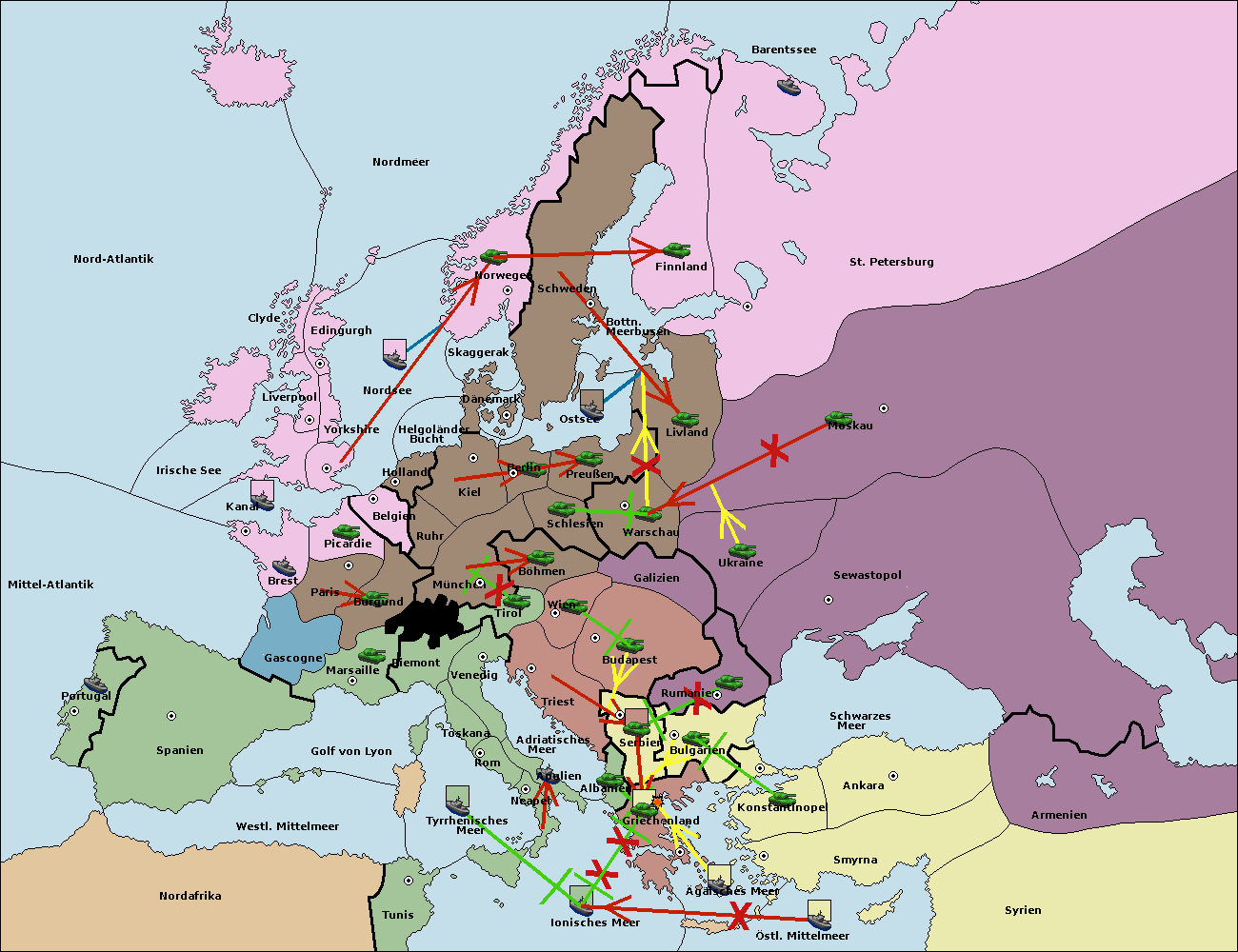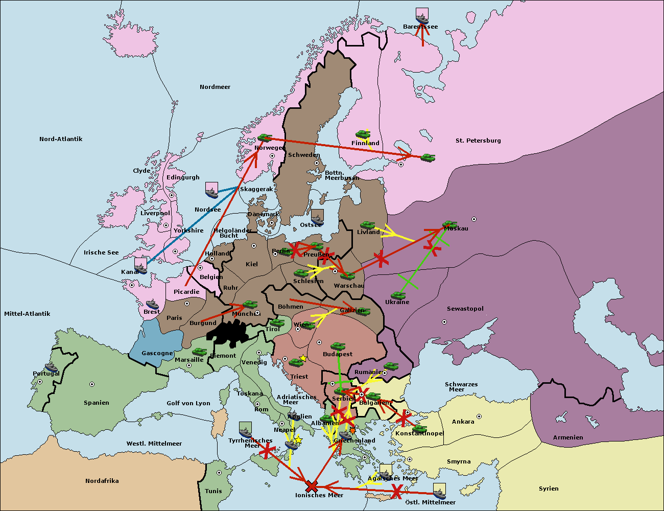• Die Flotte in St. Petersburg (Südküste) move nach Finnland.