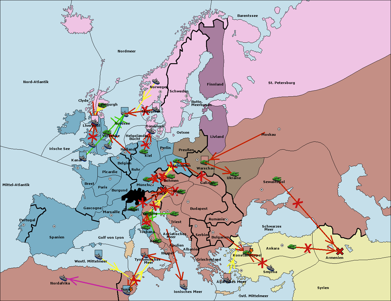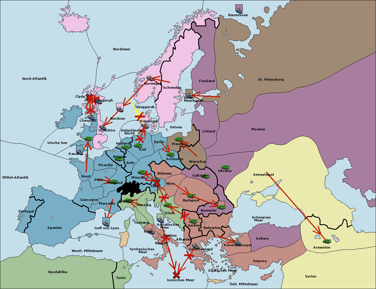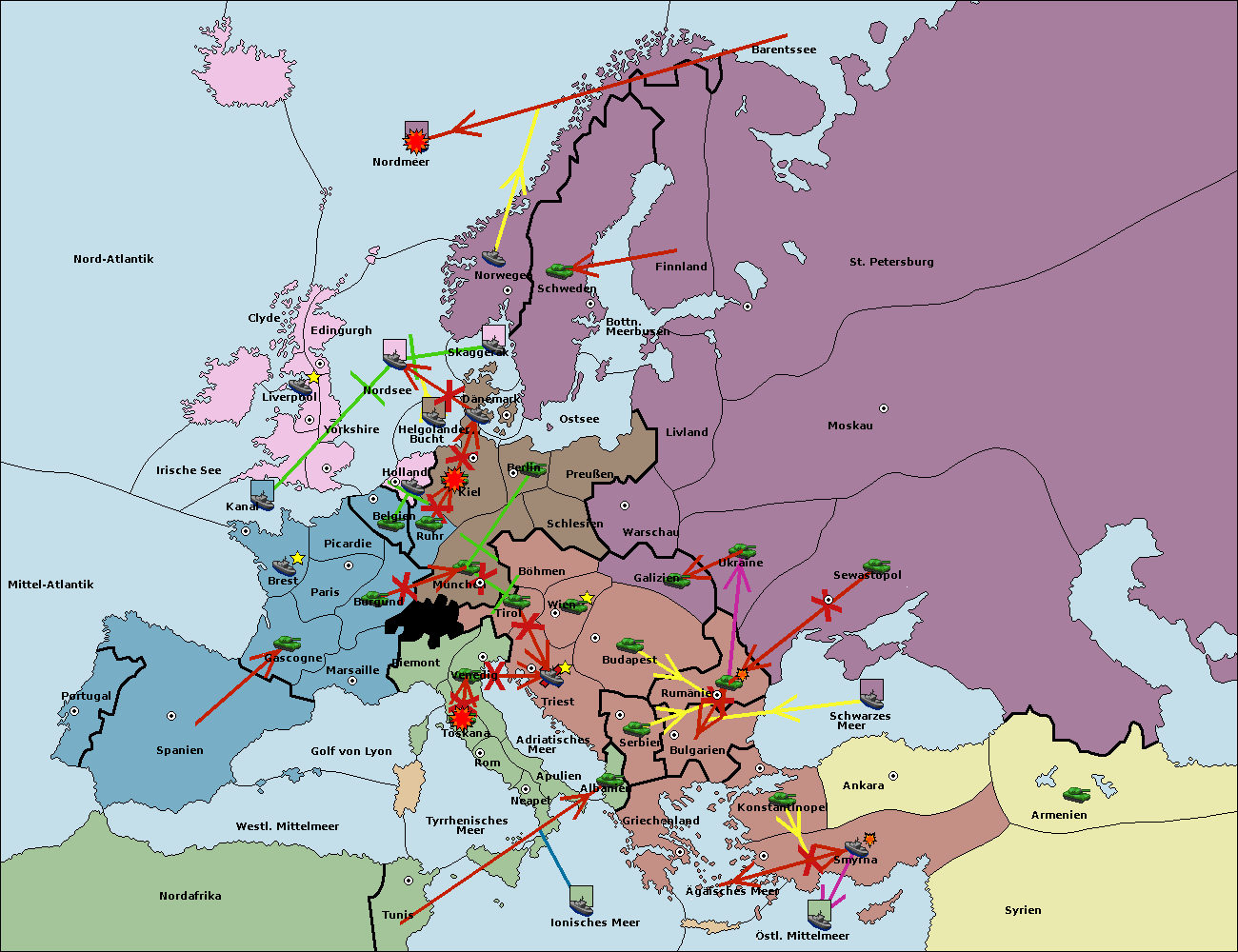 • Die Armee in Konstantinopel support hold nach Bulgarien.