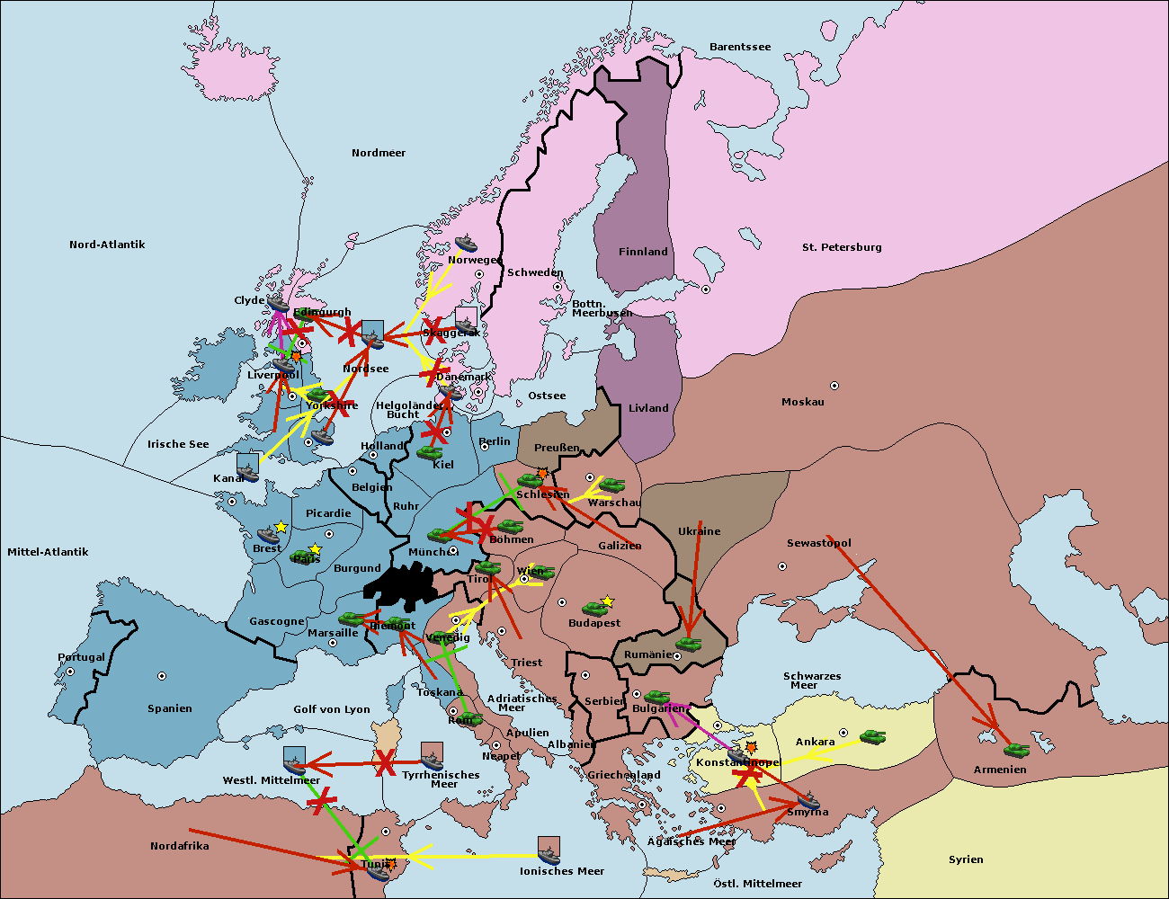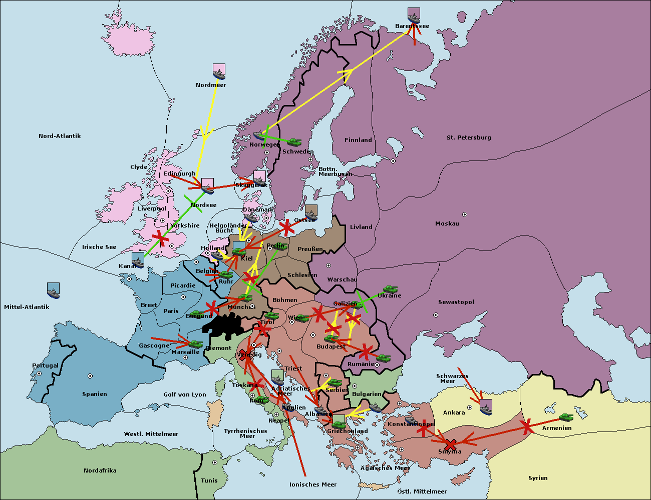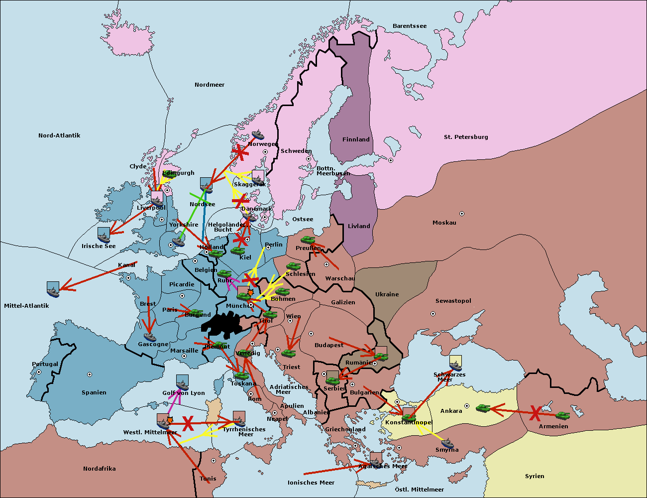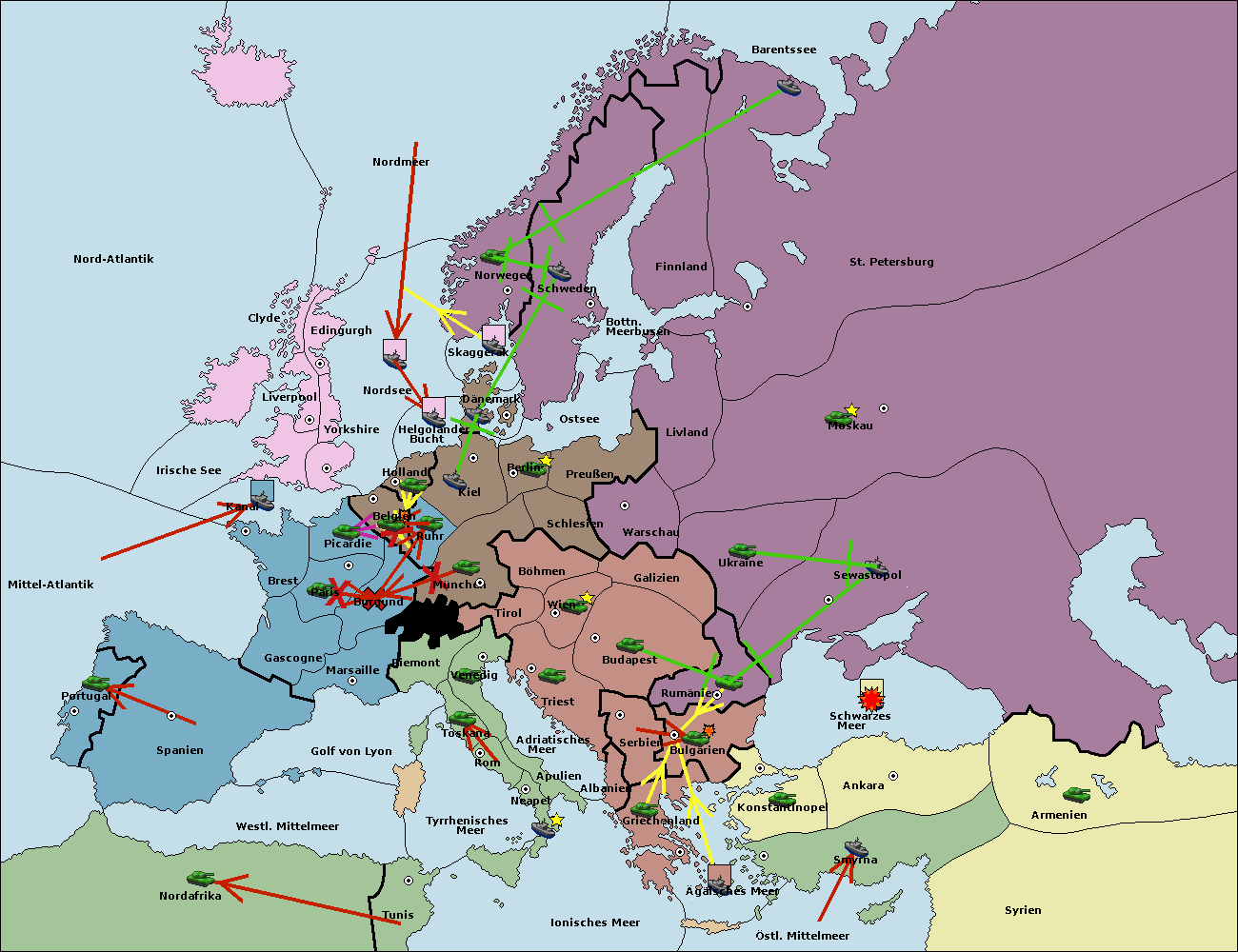• Die Armee in Konstantinopel support hold nach Bulgarien.