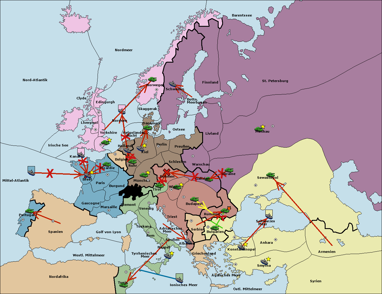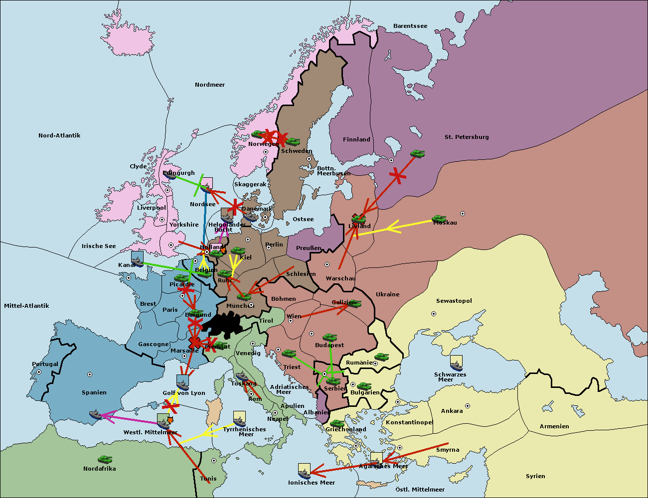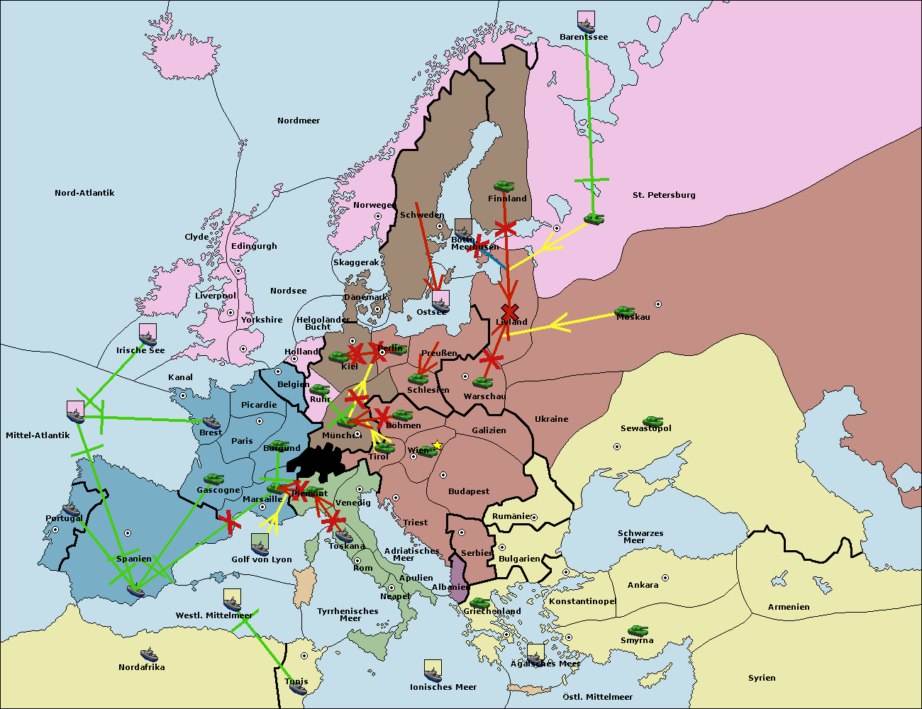 • Die Flotte in Spanien (Südküste) support move nach westl. Mittelmeer von Mittel-Atlantik.