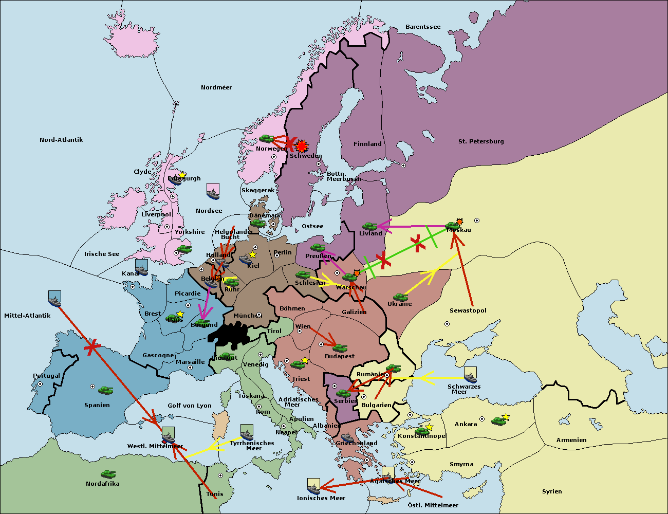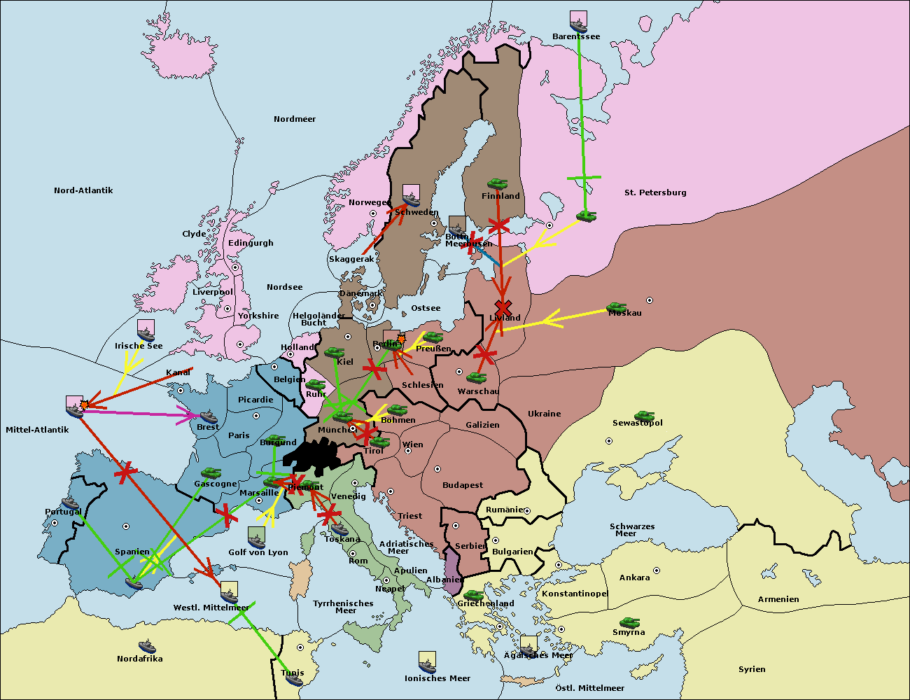 • Die Flotte in Spanien (Südküste) support move nach Marseille von Burgund. (gescheitert)