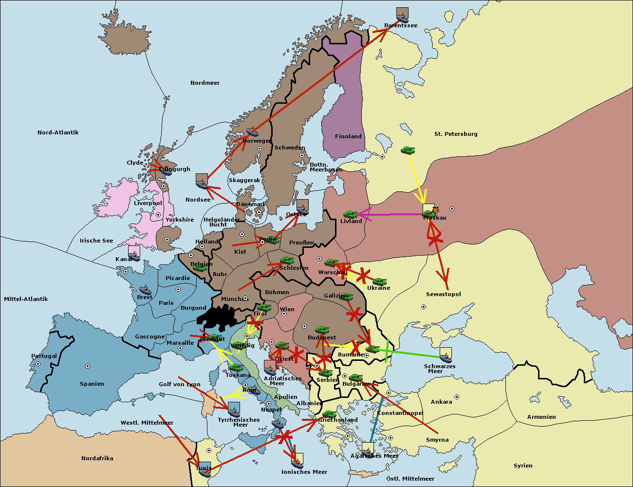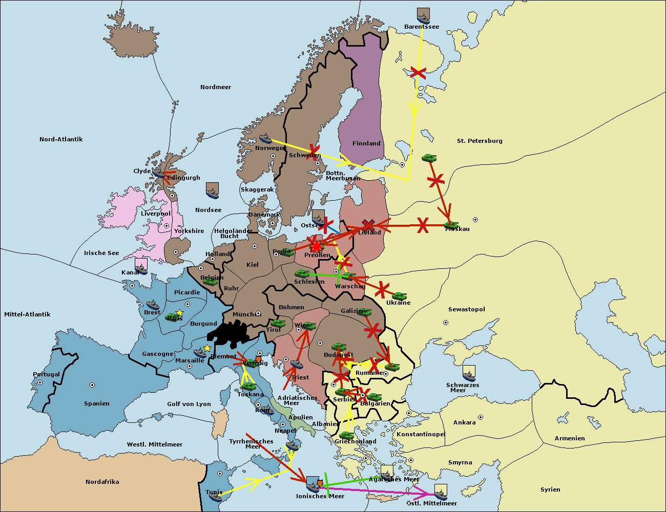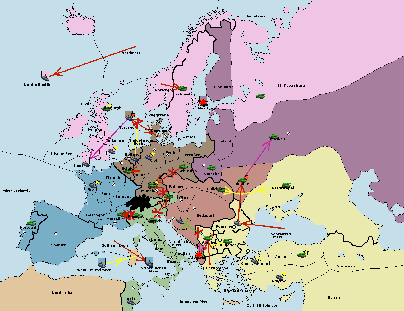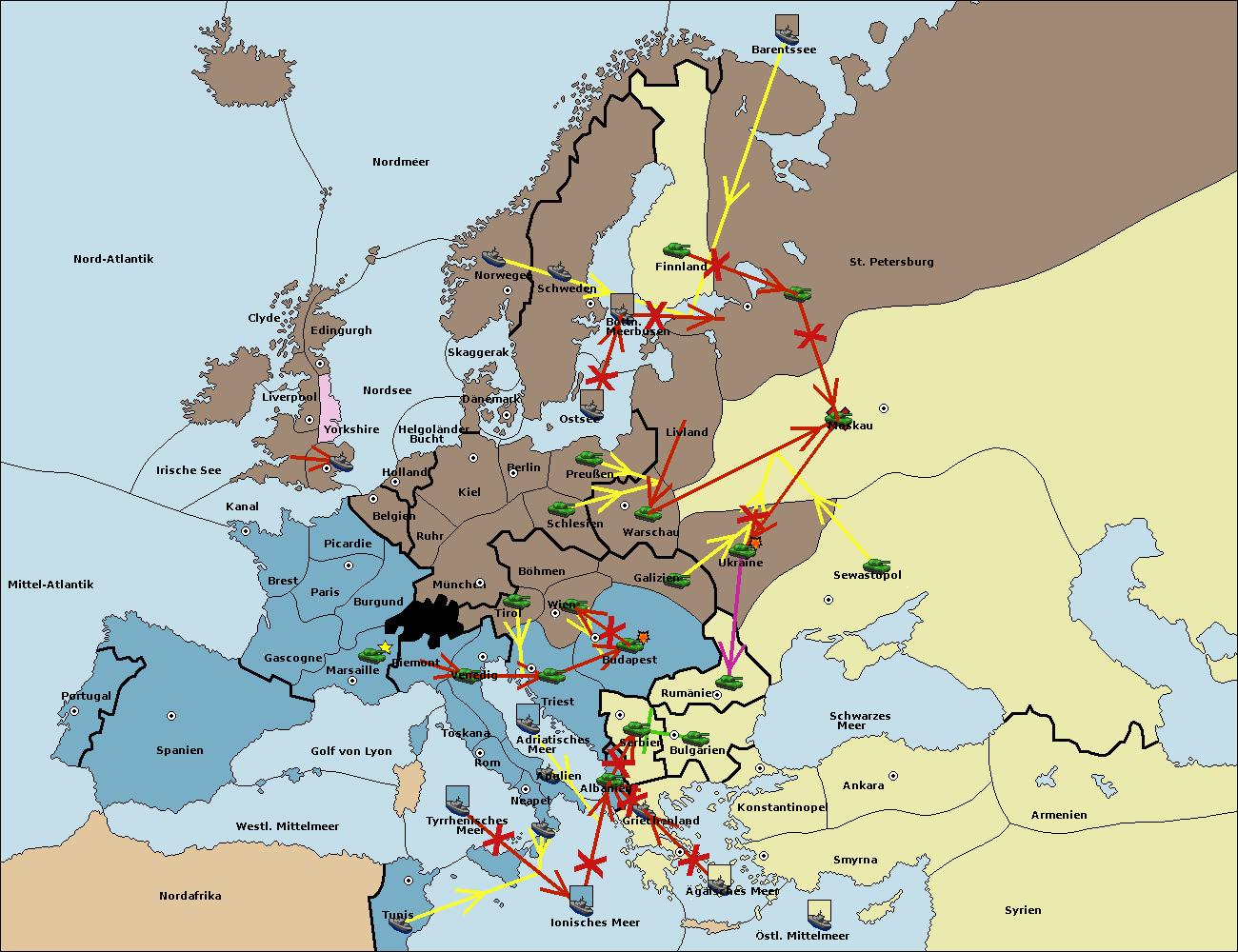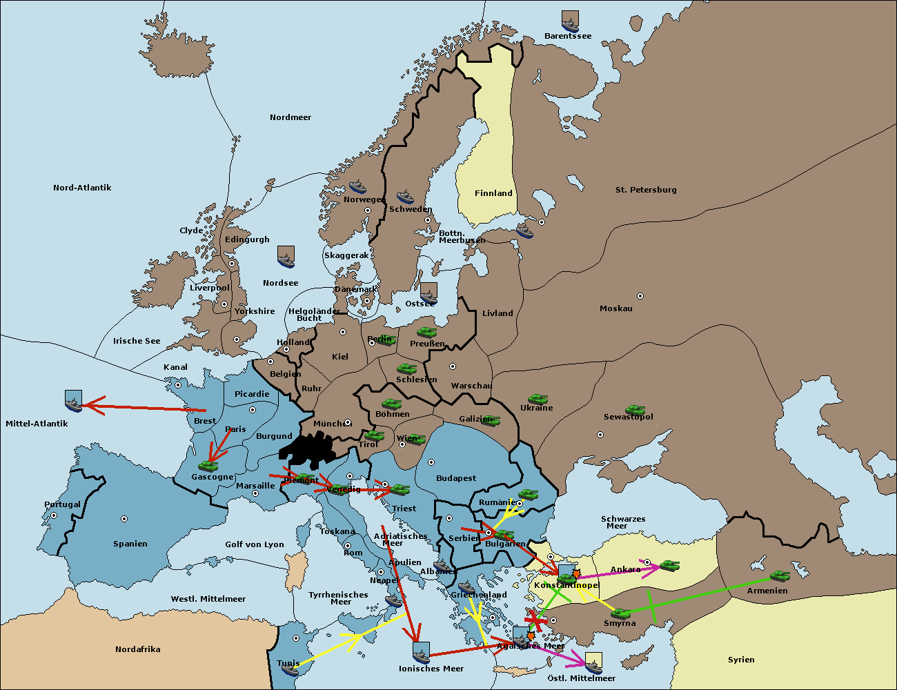 • Die Armee in Bulgarien wird zerstörtFlotte in Bulgarien gebaut.