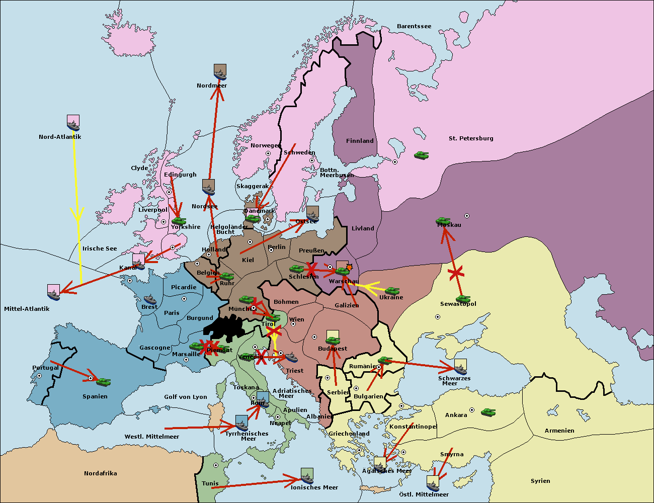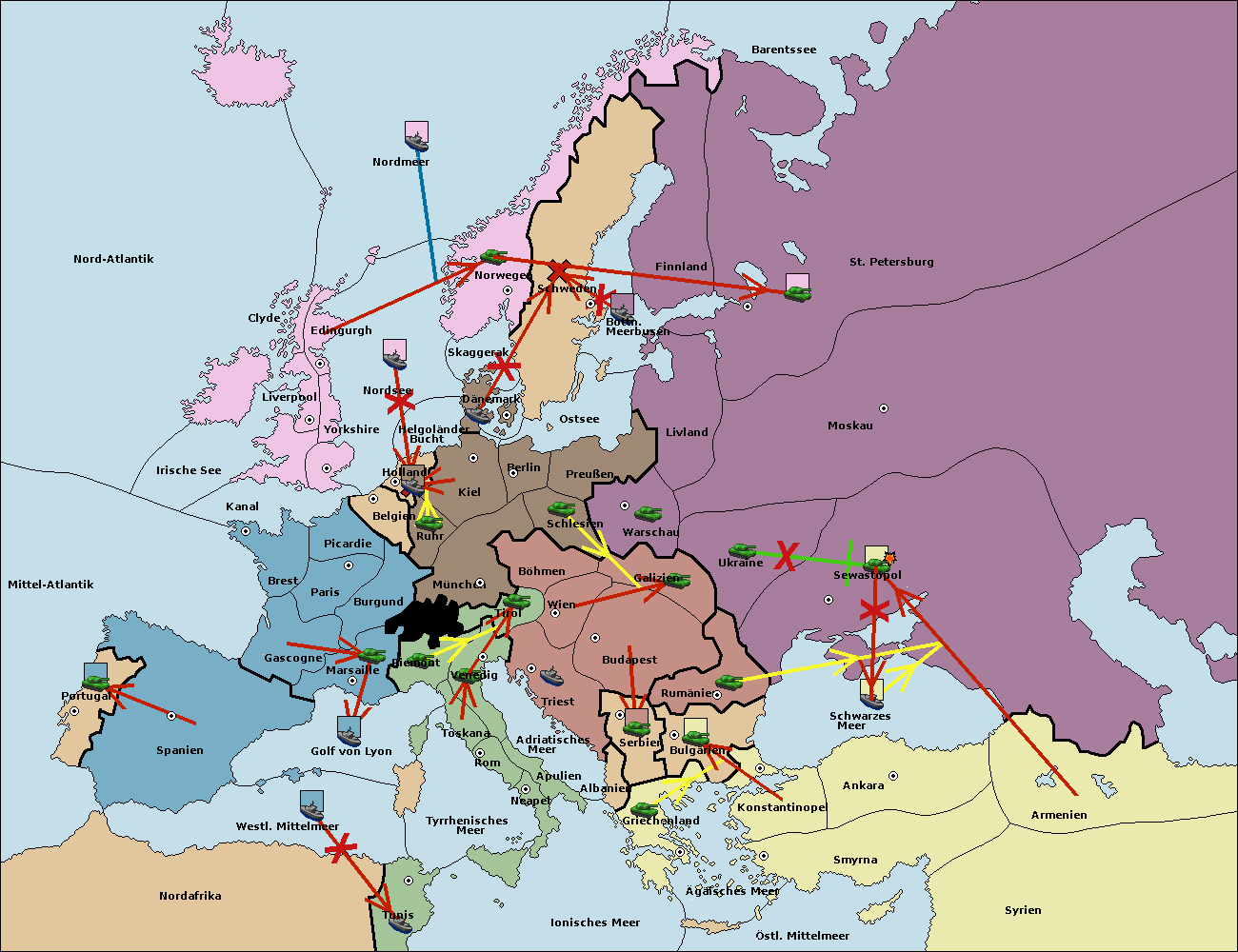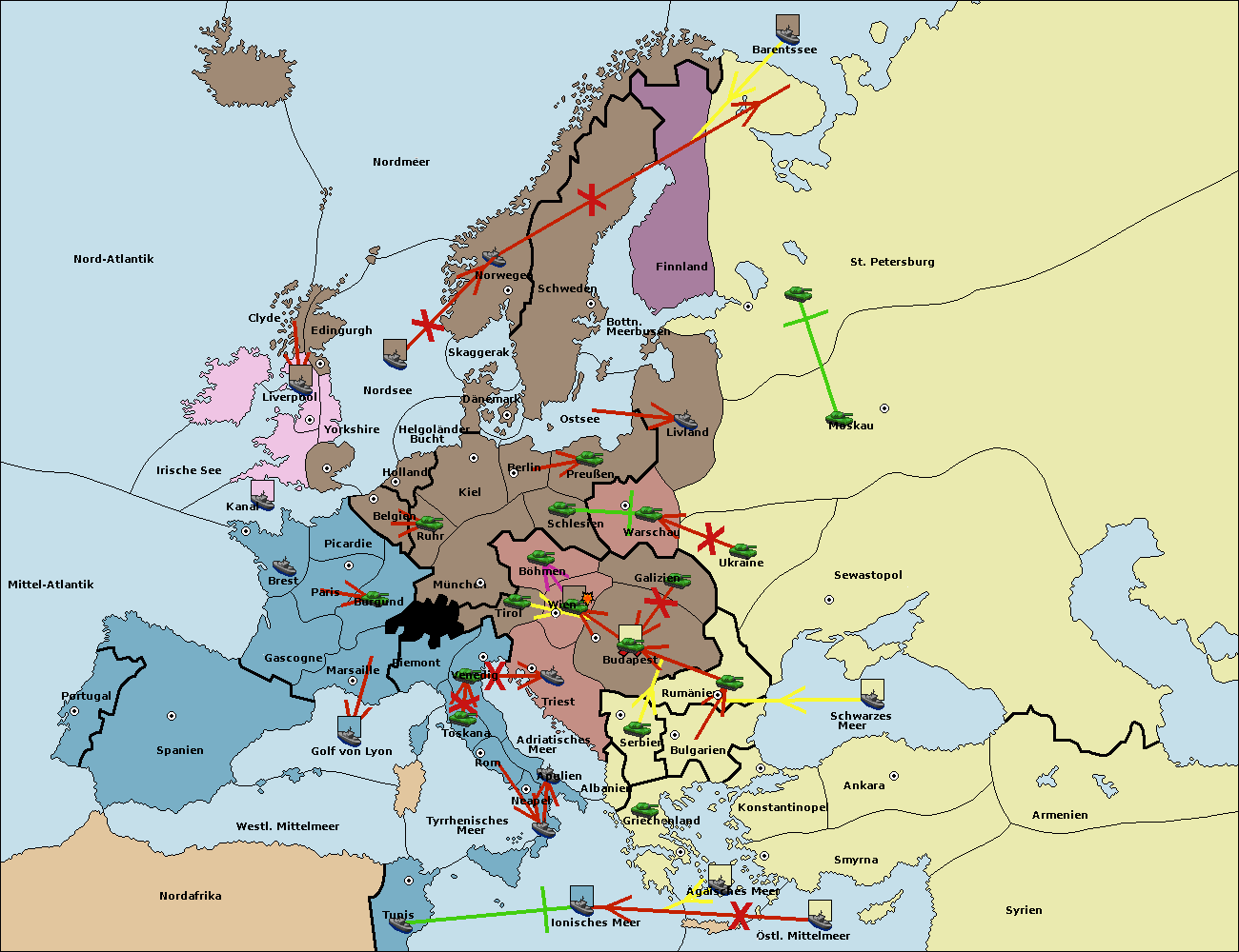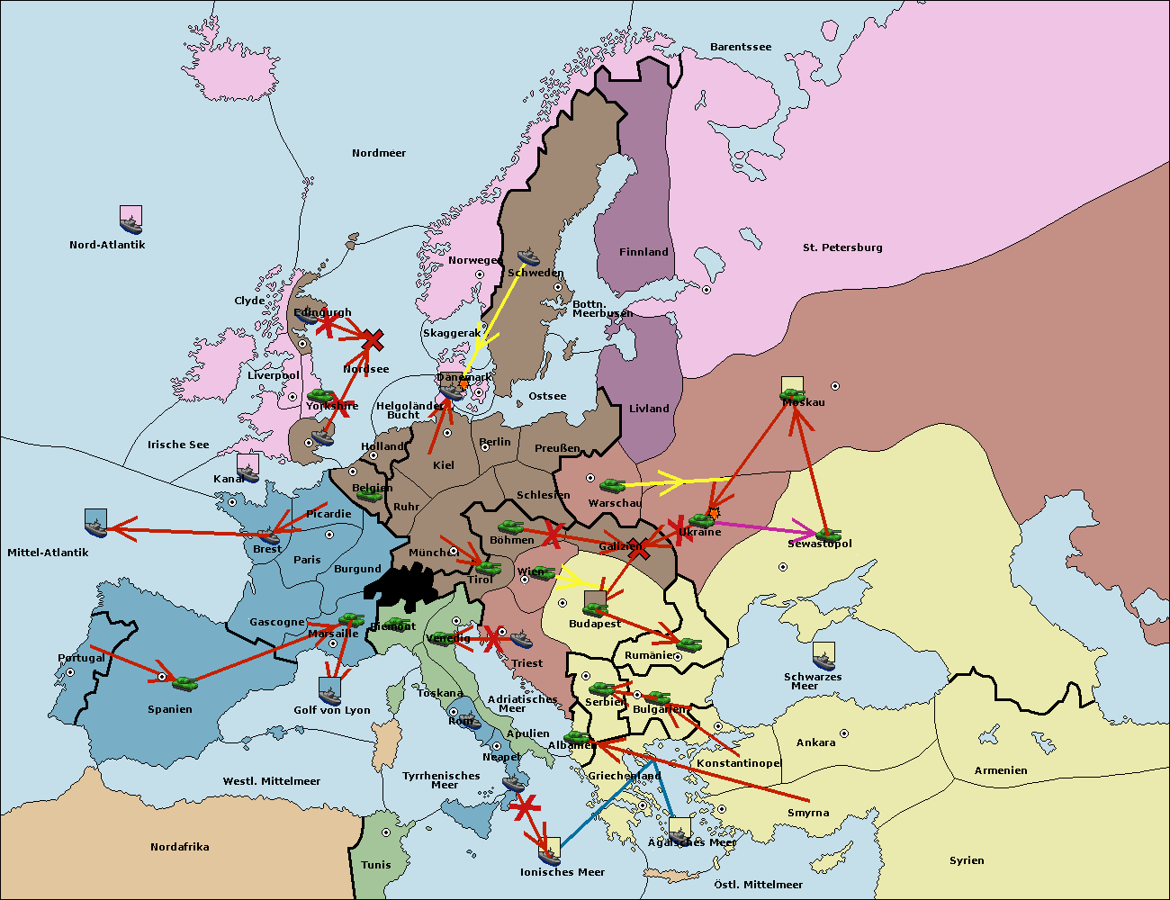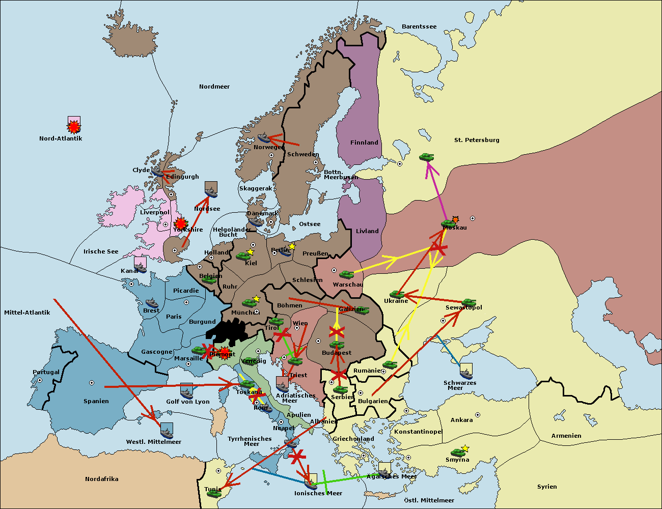 • Die Armee in Bulgarien wird zerstörtFlotte in Bulgarien gebaut.
