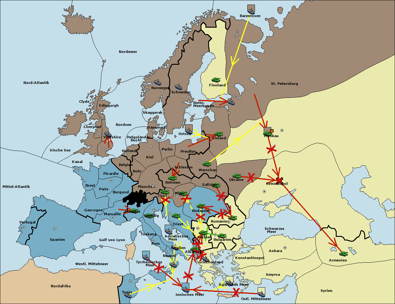 • Die Flotte in Ionisches Meer move nach östl. Mittelmeer. (gescheitert)