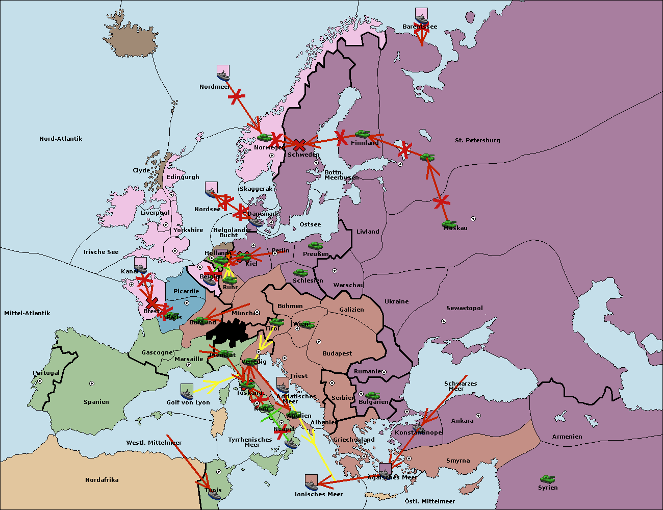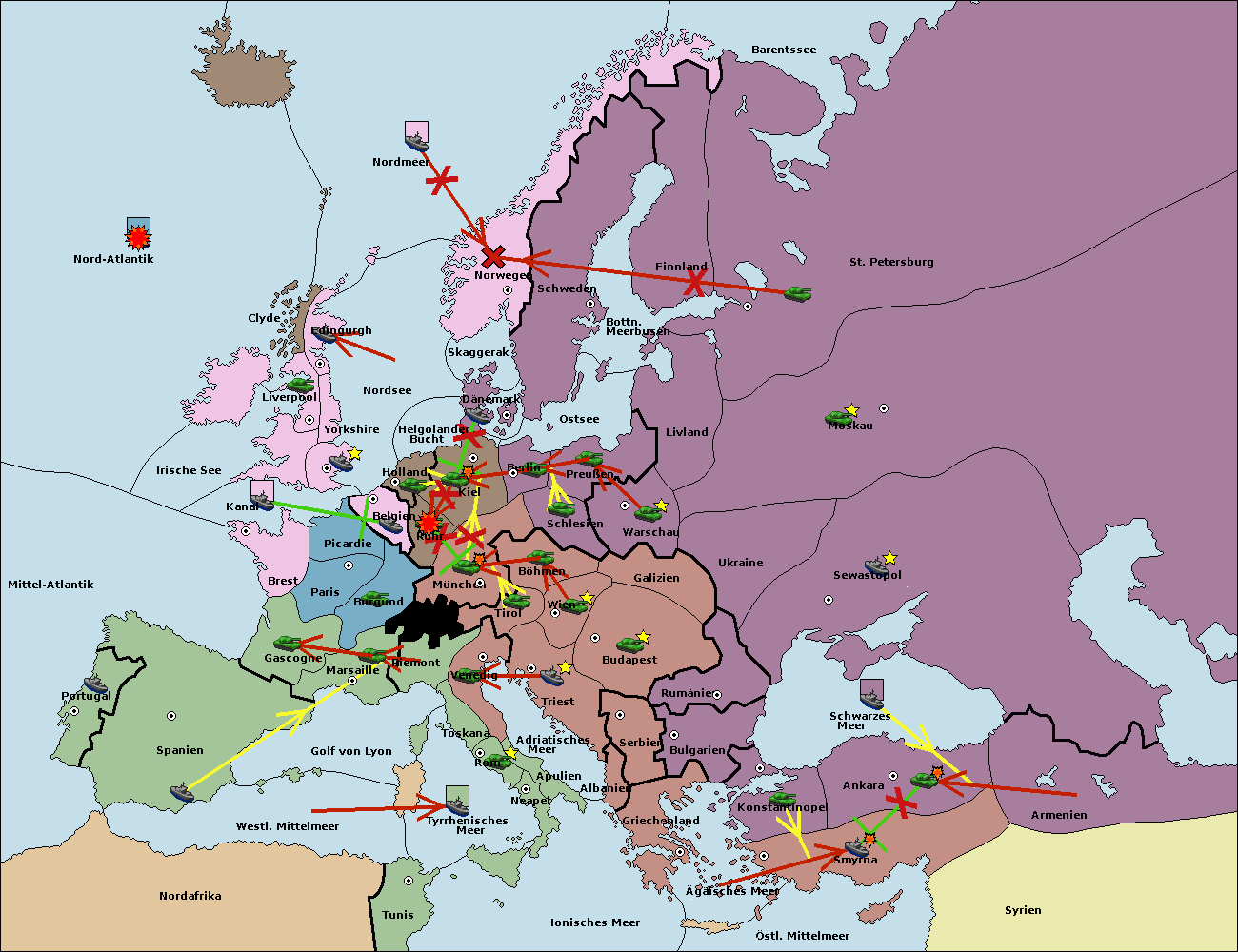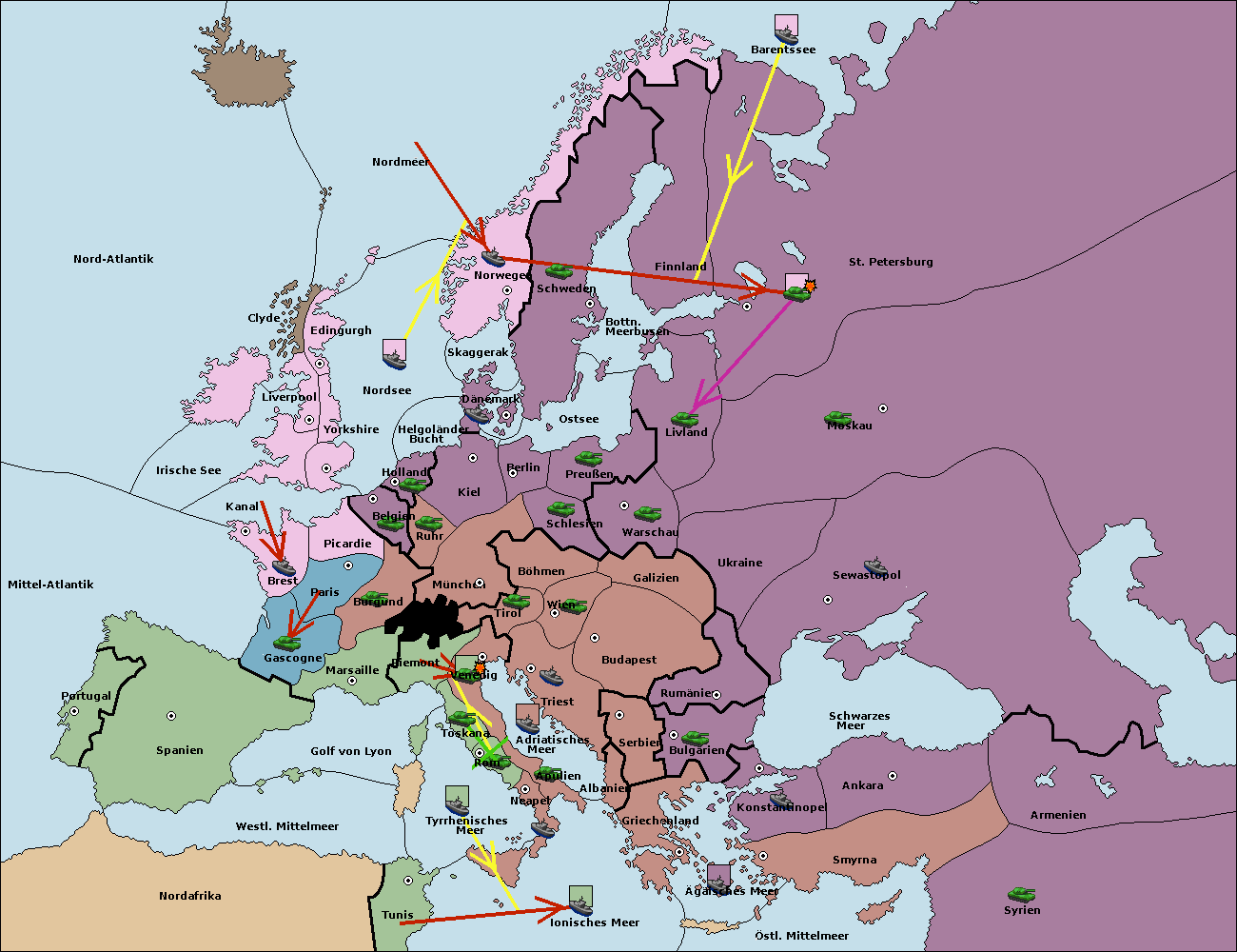 • Die Flotte in St. Petersburg (Nordküste) move nach Norwegen.