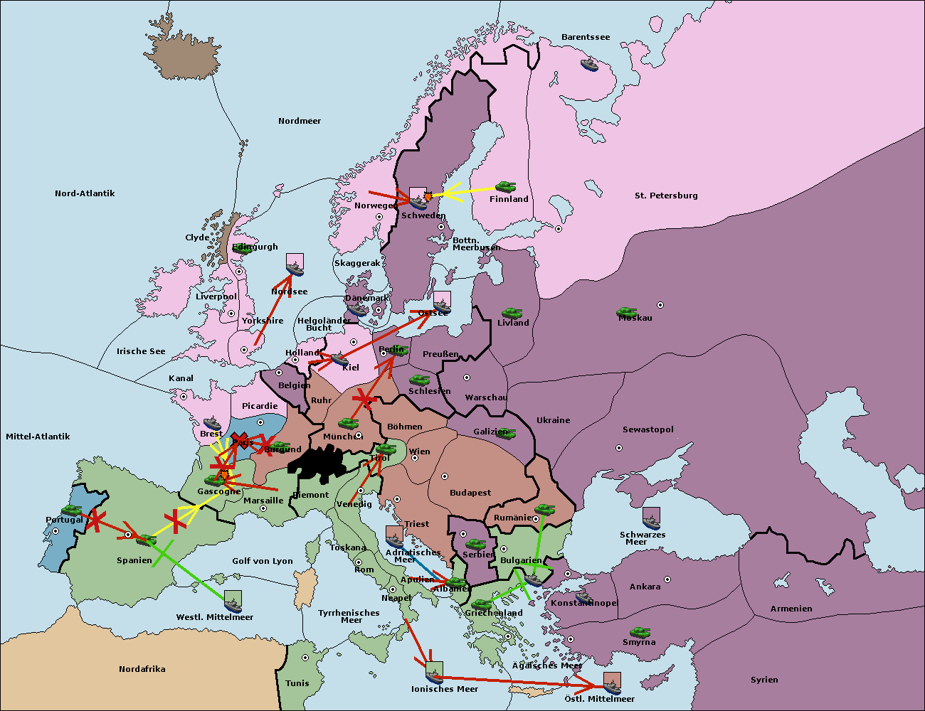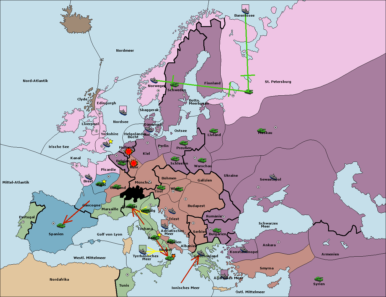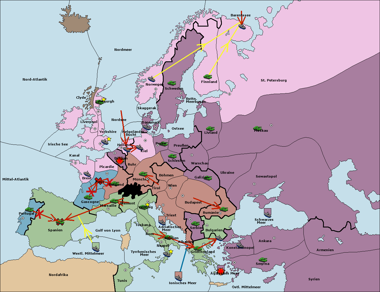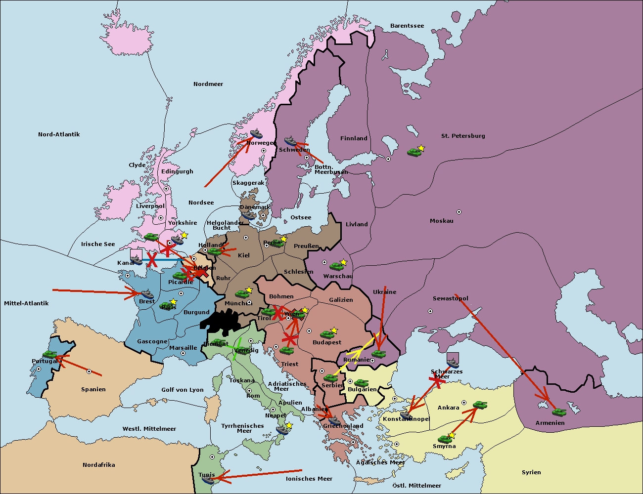 • Die Flotte in St. Petersburg (Nordküste) move nach Norwegen.