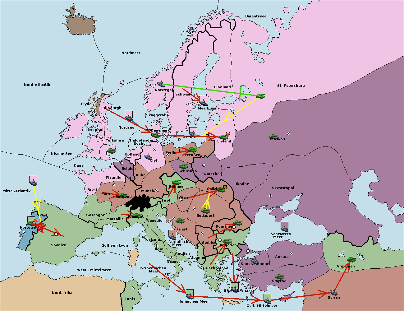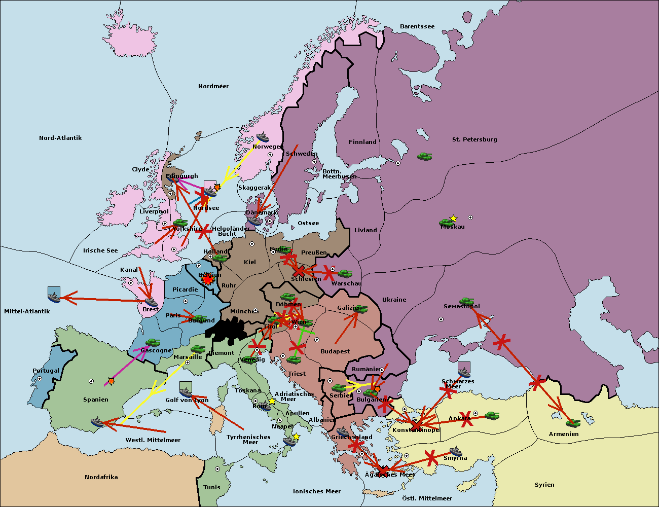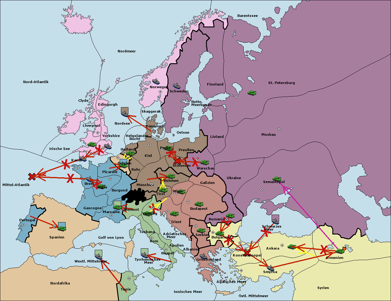• Die Armee in Bulgarien wird zerstörtFlotte in Bulgarien gebaut.