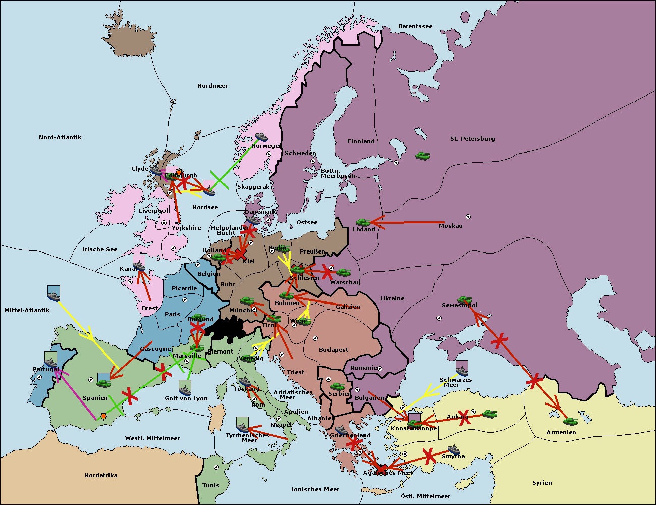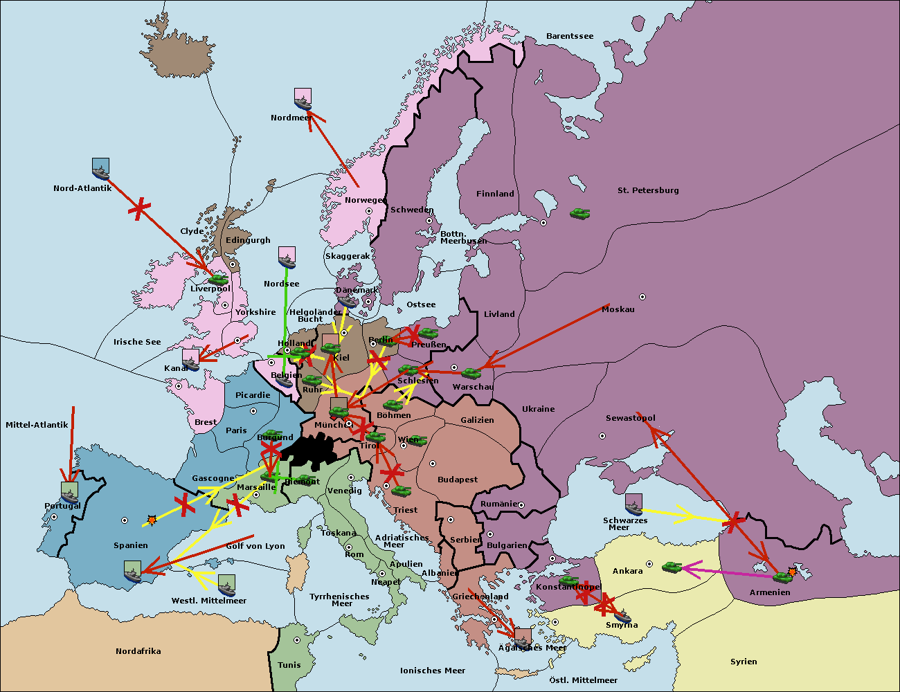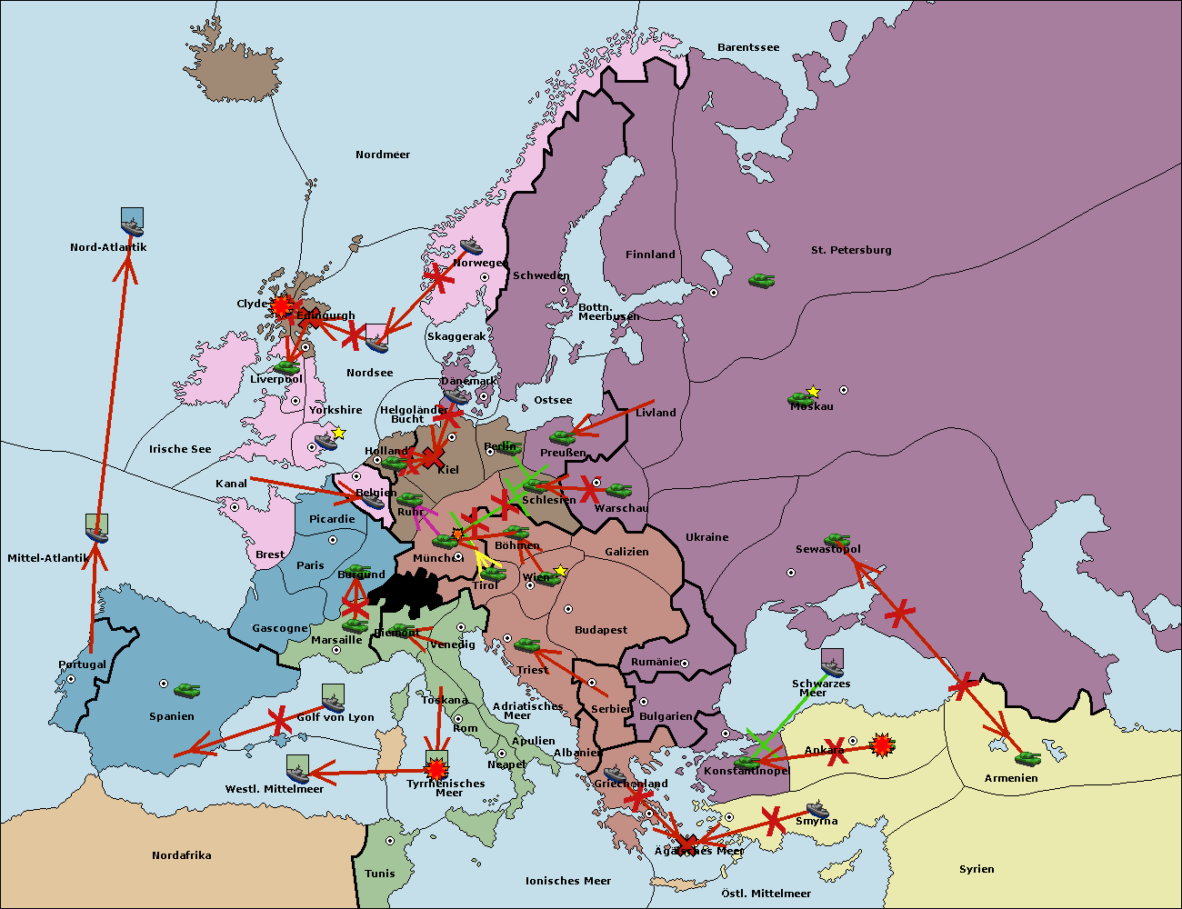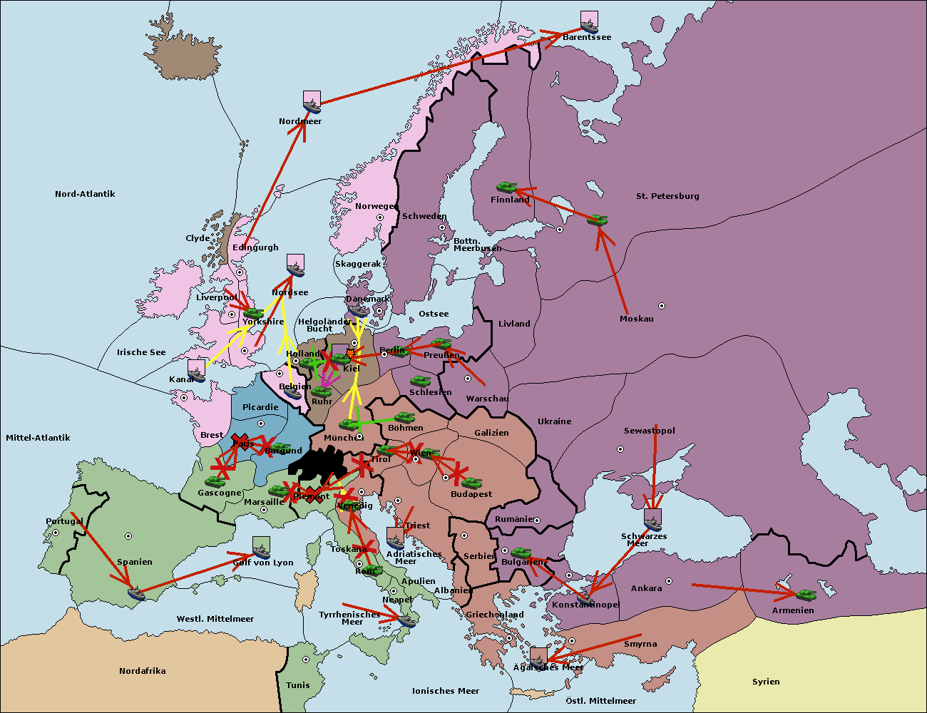 • Die Armee in Bulgarien wird zerstörtFlotte in Bulgarien gebaut.