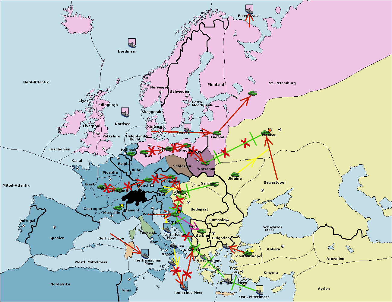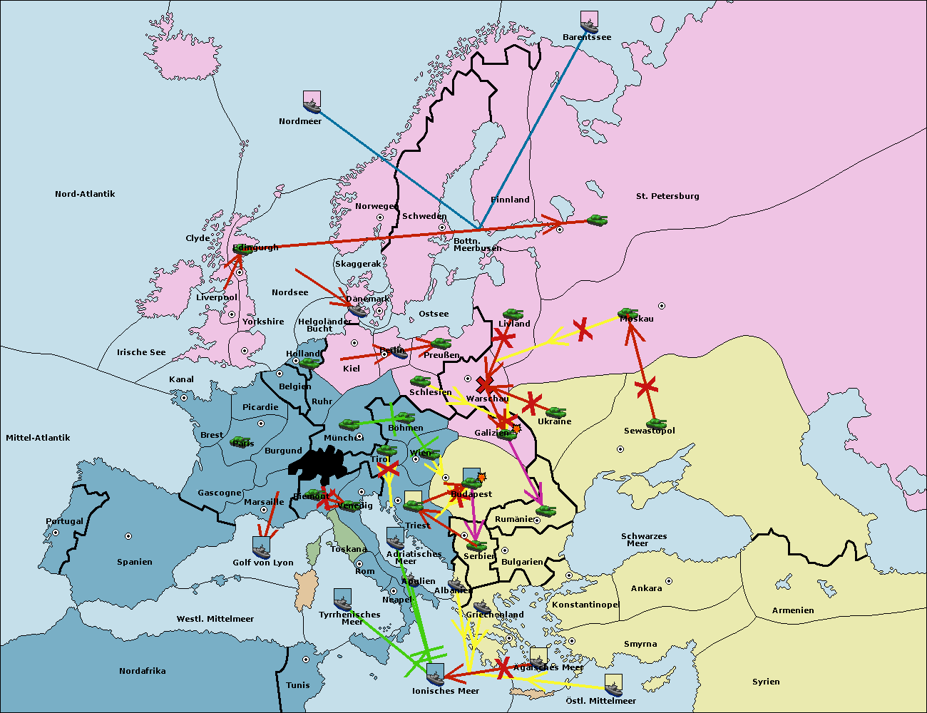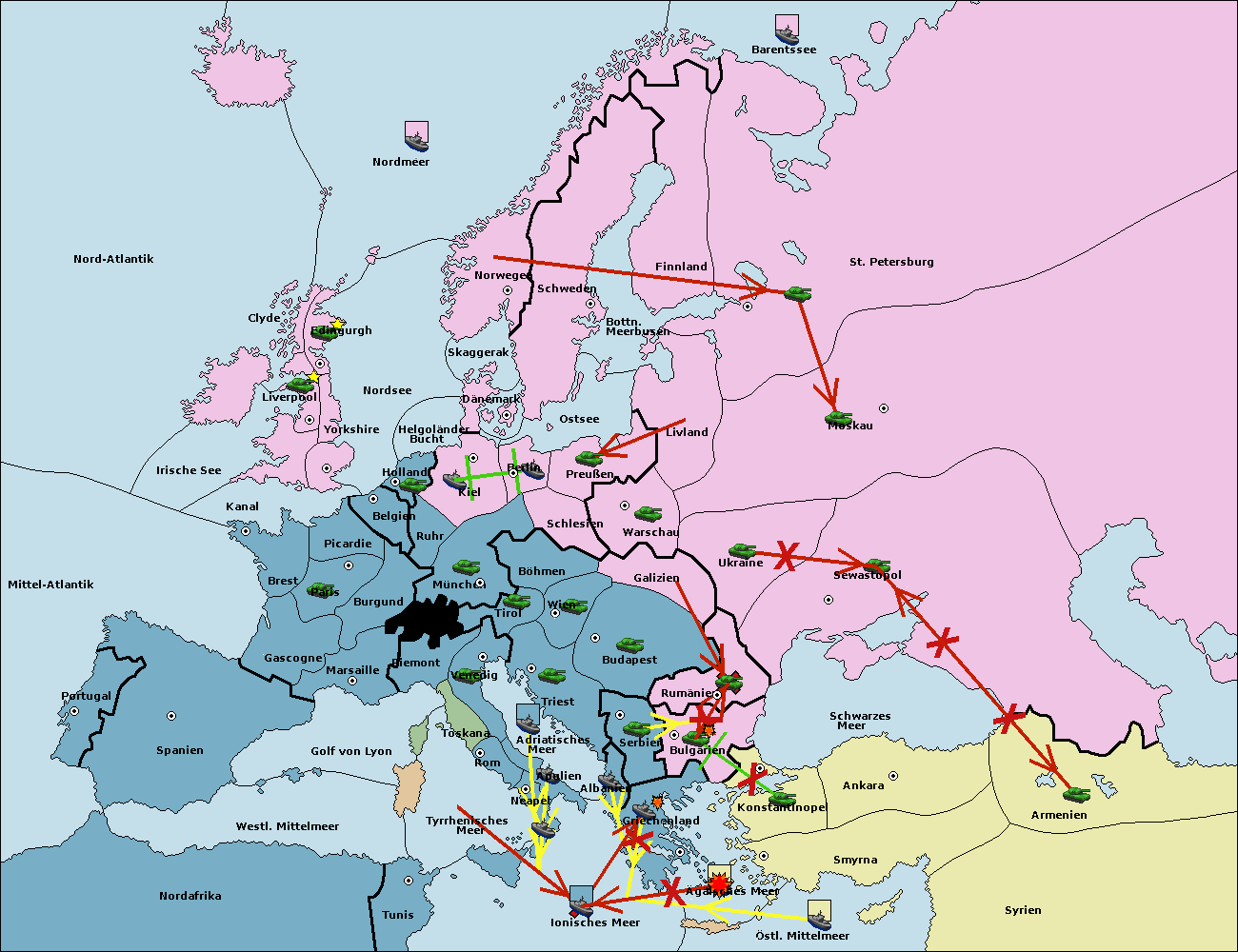 • Die Flotte in Konstantinopel move nach Bulgarien (Südküste). (gescheitert)
