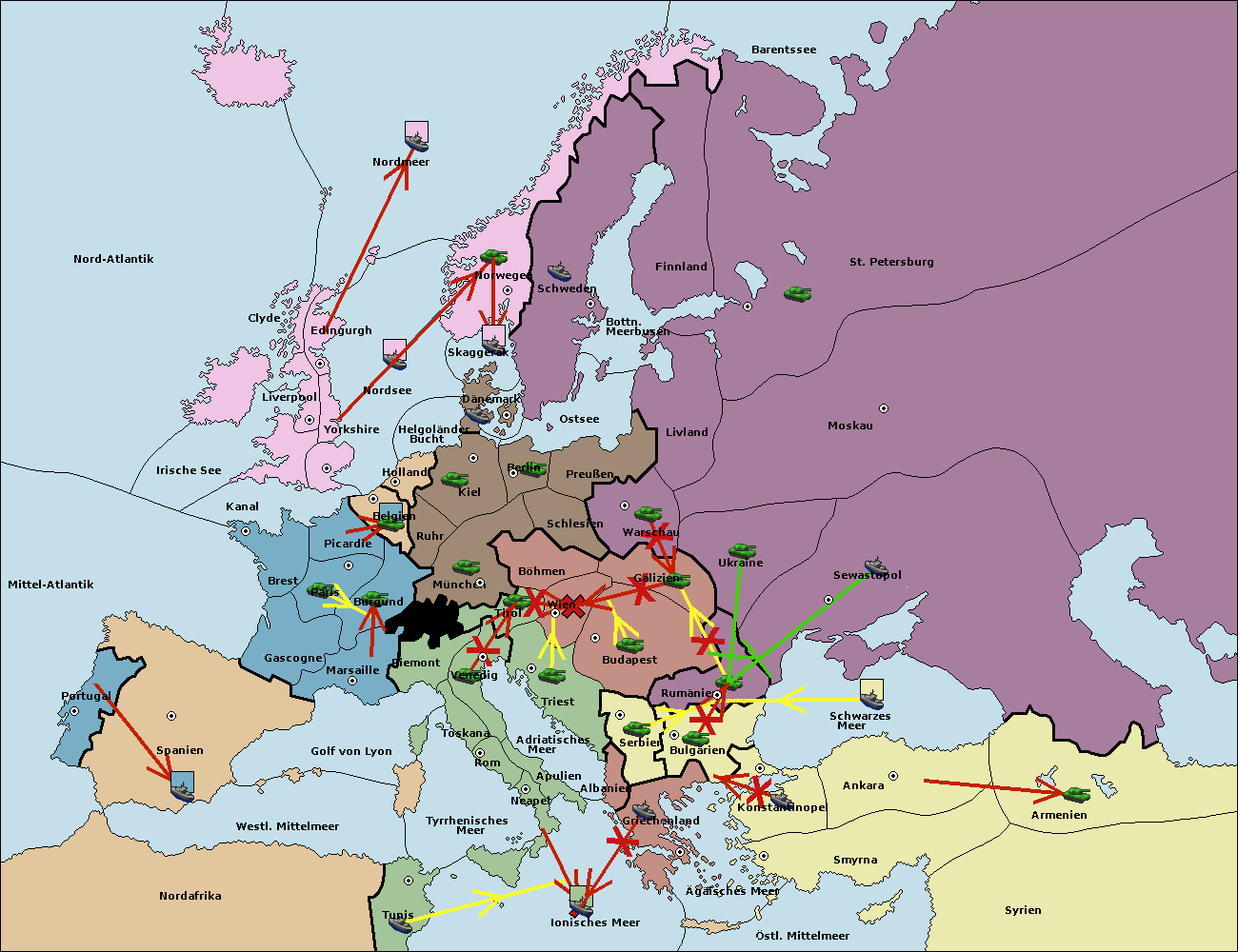 • Die Armee in Triest support move nach Wien von Tirol.