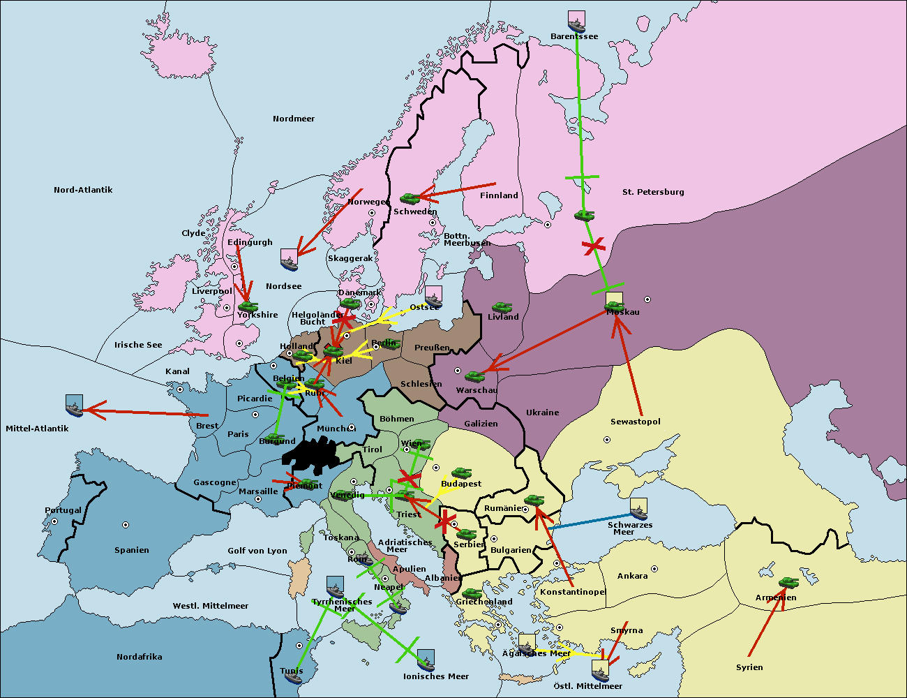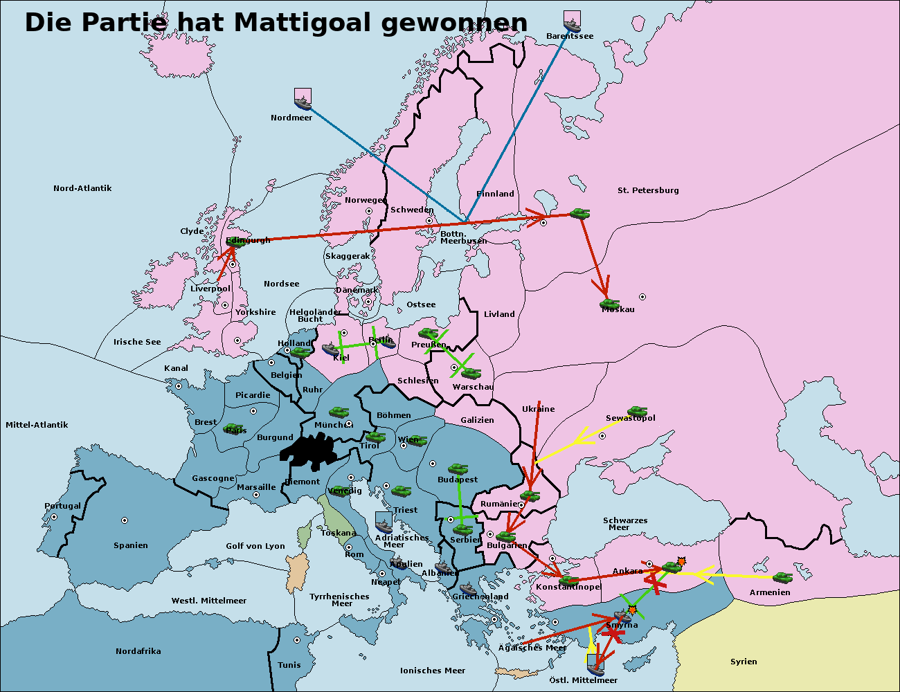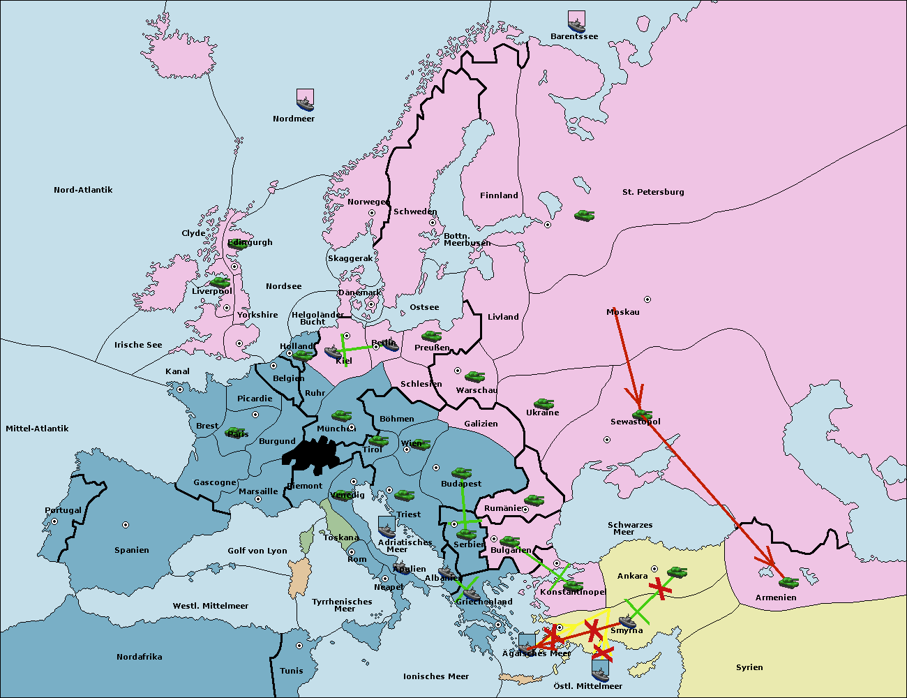 • Die Flotte in Smyrna support hold nach Konstantinopel. (gescheitert)